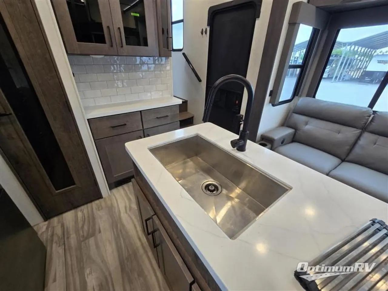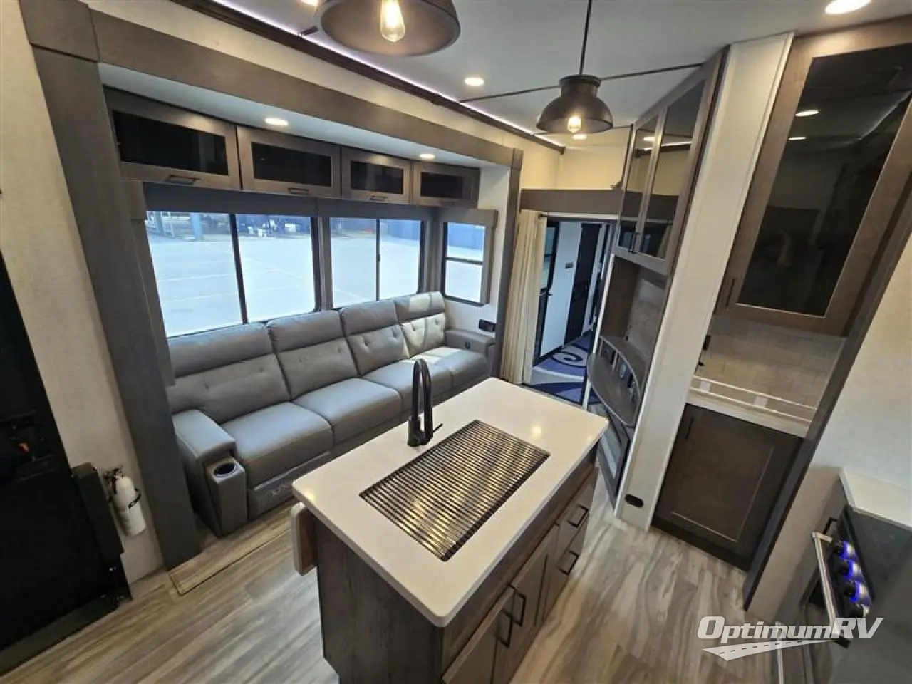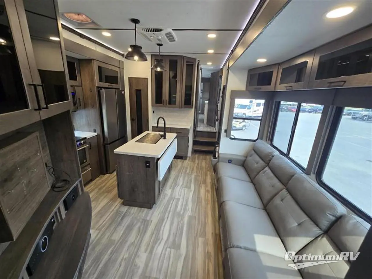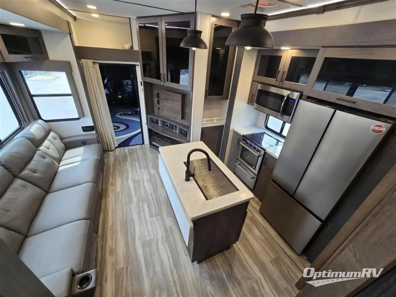 You can easily load up your toys into the 15' garage area of this toy hauler with the 8' weather resistant ramp door and keep them filled with the dual 30 gallon fuel tanks! Once you unload your toys from the garage area, you can set up the opposing HappiJac sofas with a queen mattress above them, the loft that open to the living room, and the half bathroom. The kitchen has everything you need to prepare your best meals including two hutches, three pantries, and a kitchen island with two bar stools to enjoy your morning coffee and eggs. The dual entry bathroom has a 48" x 30" shower and leads directly into the front private bedroom. Inside the bedroom is a king bed slide for more walking around space, a flip top dresser, and a front wardrobe that has an area prepped to add the optional washer and dryer.