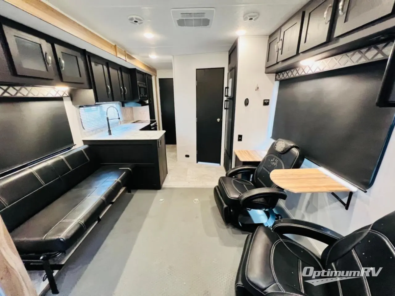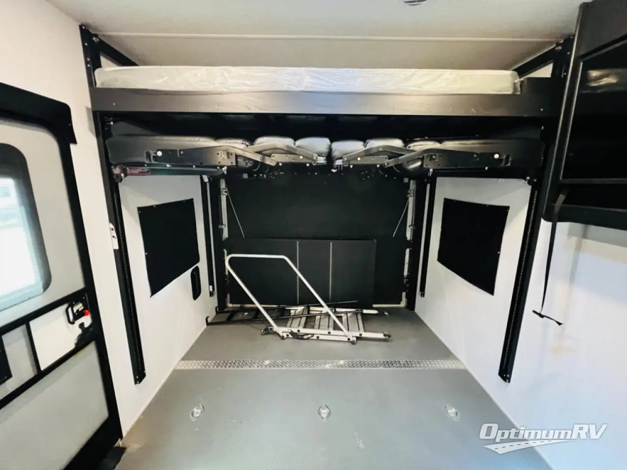 Looking for a spacious travel trailer that you can carry your toys to and from the off-road park and stay overnight in comfort? Well this might just fit the bill! You will appreciate the 15' 7" cargo space for all your toys, and the large slide out with a flip-up slide floor door will provide extra interior space. The chef of the family or group can prepare dinner on the three burner cooktop or use the microwave, and the double entry bath includes plenty of counter space that will come in handy when you're getting ready each day. This trailer also includes dual entry doors: one into the garage area and one into the front master bedroom with a king bed for your convenience. You will also find a rear pull down screen, pull-down roller night shades to be able to sleep in late, and a solar package to help you stay off-grid.