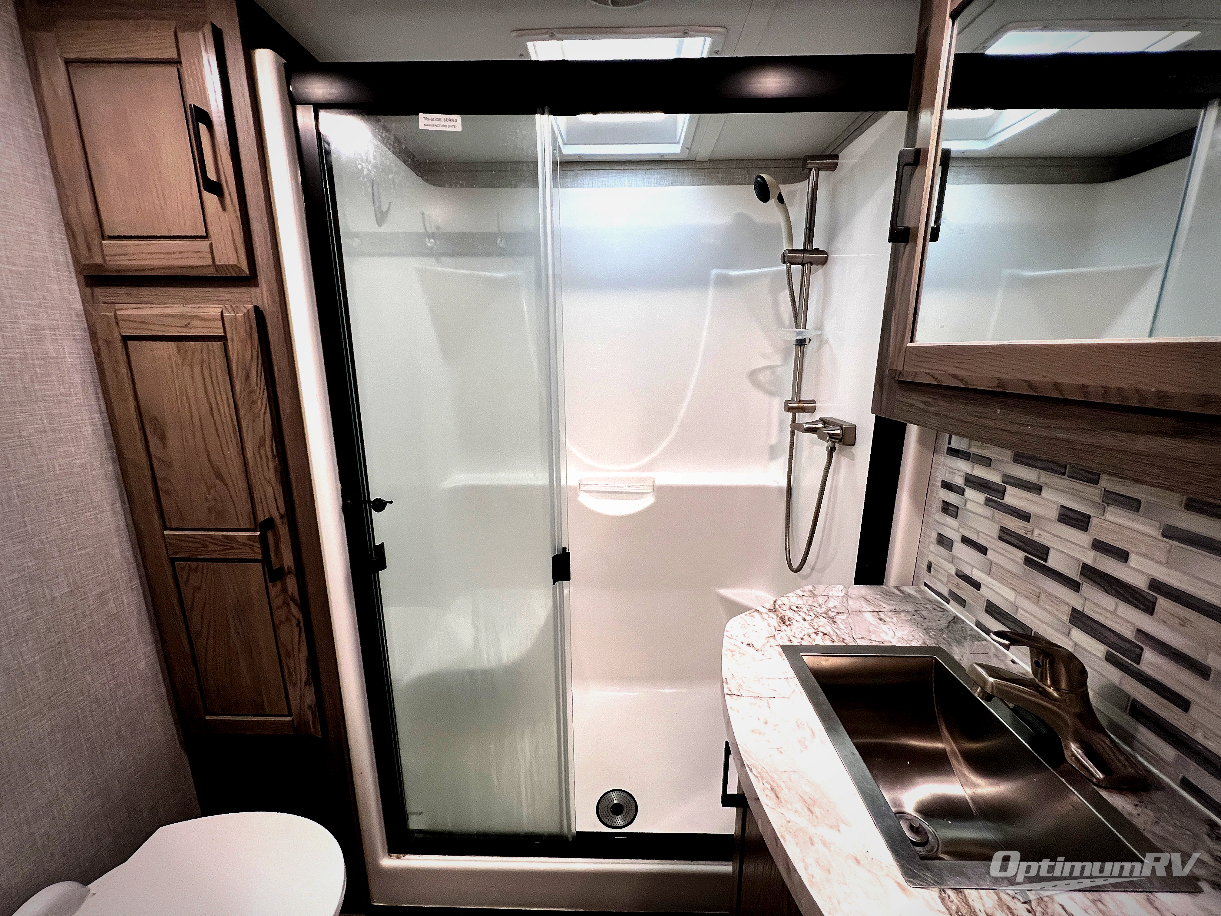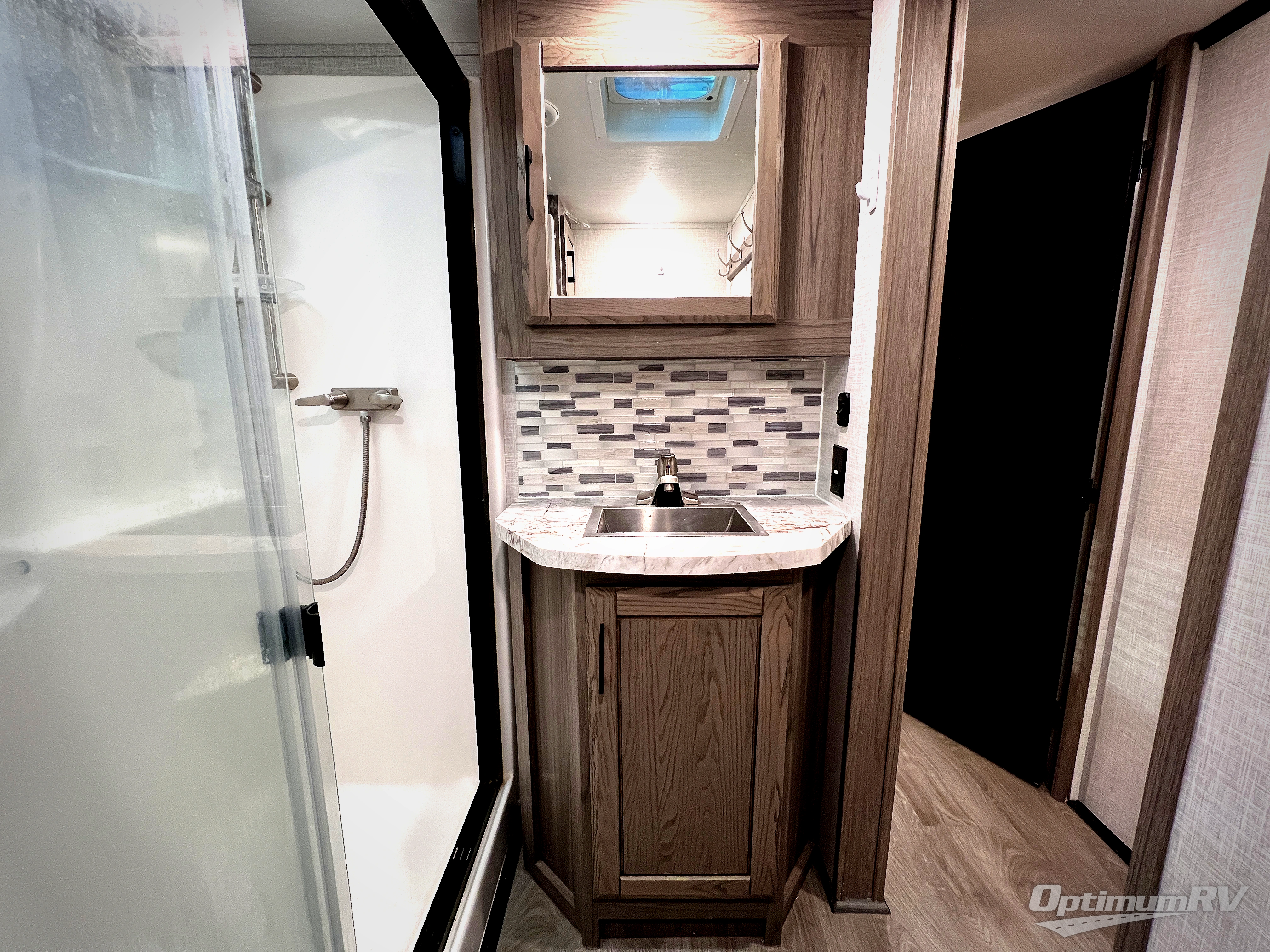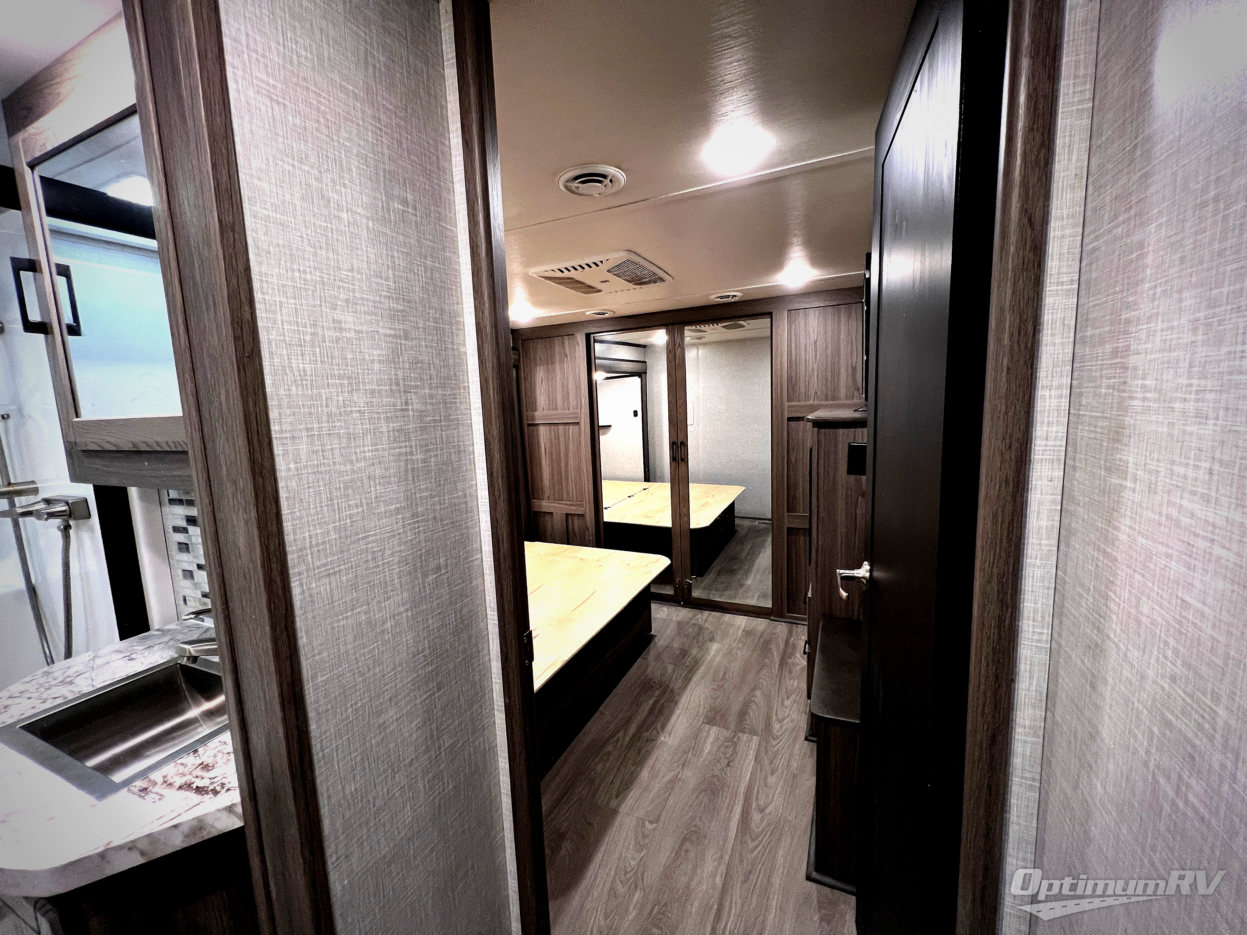 Every element of your home has been considered when creating these CrossRoads RV Cameo fifth wheels! From the oversized pantries, master suites, and full size theater seats with heat and massage to durable construction with the largest I-beam chassis in the industry. They also have the industry's first front windshield, an aerodynamic profile, and a full walk-on roof with an Alpha Ply II roof material. These modern fifth wheels were created with the customer in mind which is why they have convenient features like pass-through heated storage, spacious walk-in closets, an AM/FM/Bluetooth sound bar, a 6-point hydraulic auto level, and a 2" receiving hitch with 4-way plug. The Twice Is Nice package adds even more comforts like dual fireplaces for cozy evenings inside, dual awnings to protect you rain or shine, dual A/C units to keep you cool on those hot summer days, and dual wireless charging stations so your electronics can be at 100%. Come find the right model for you!