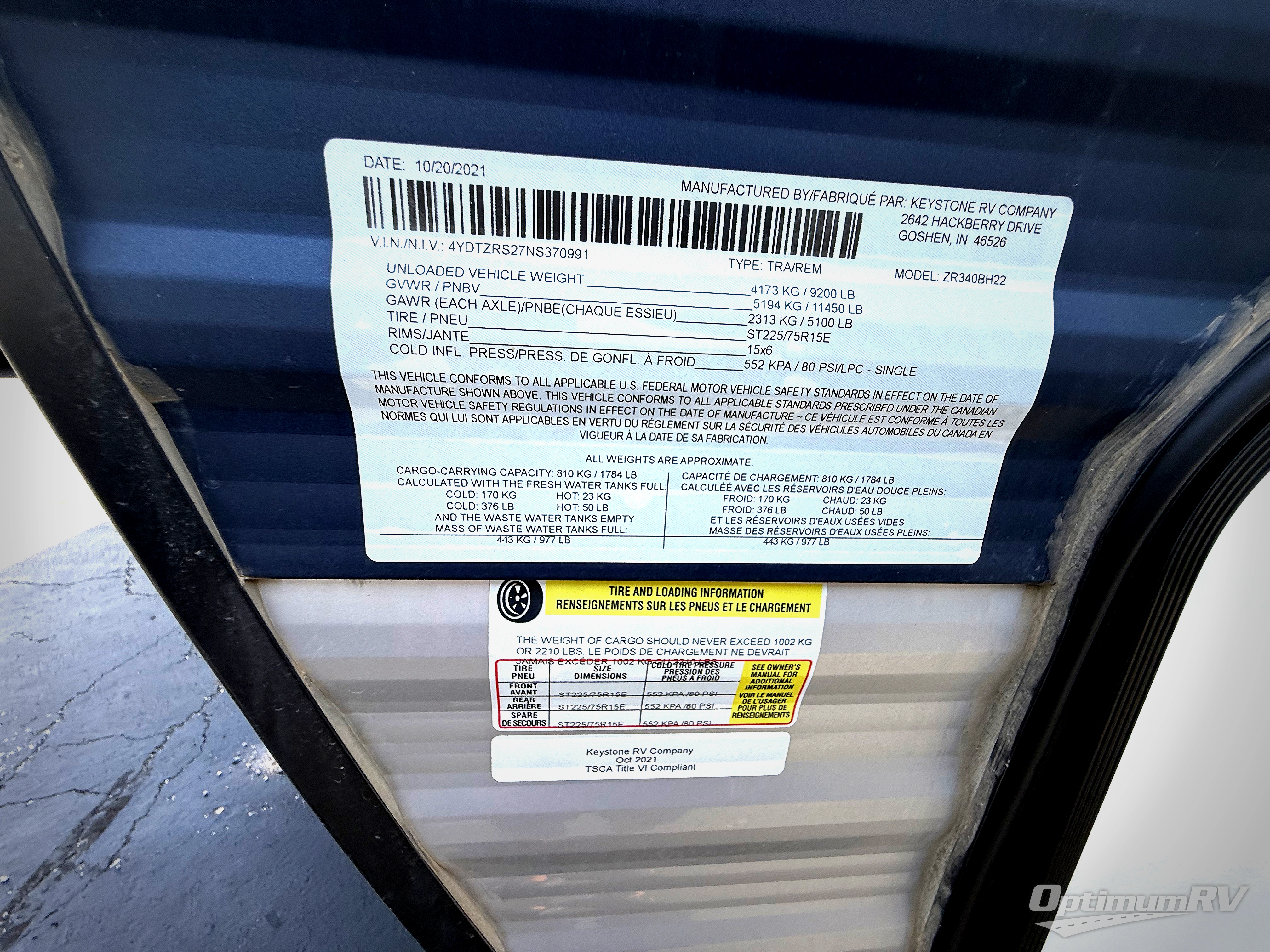- VIN 4YDTZRS27NS370991