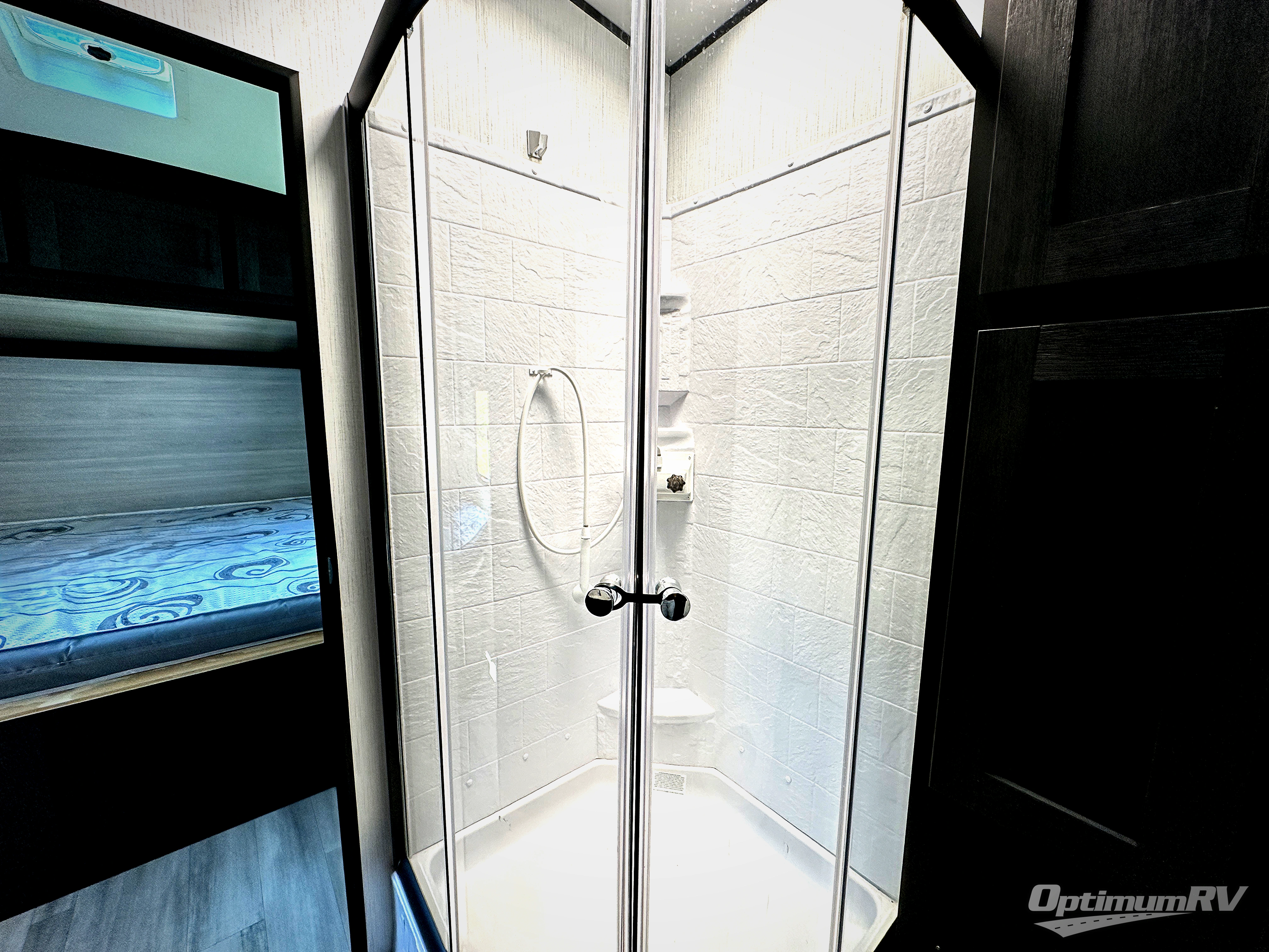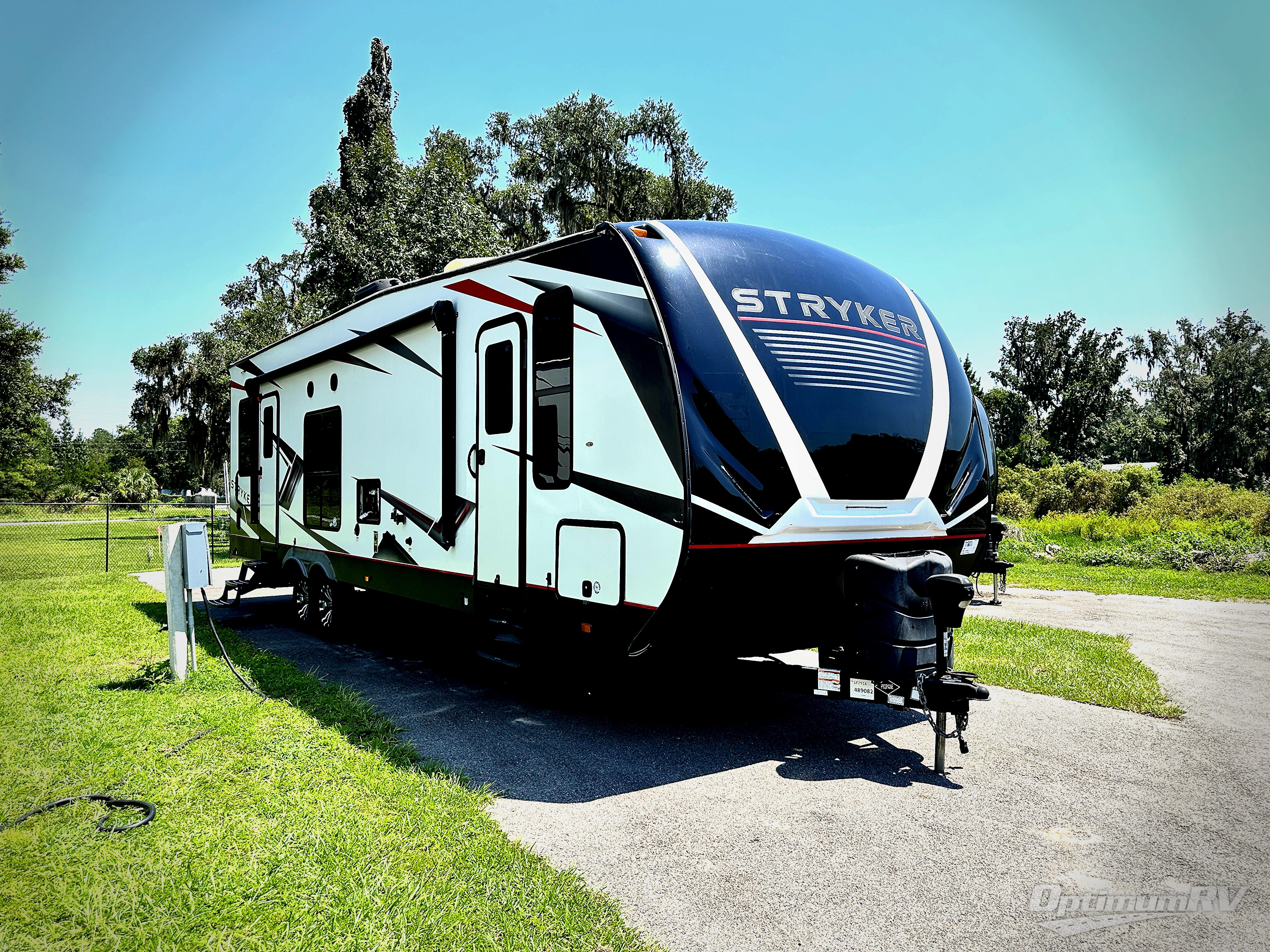 Each Stryker toy hauler travel trailer by Cruiser starts with a powder coated structural steel I-beam frame, Azdel composite laminated sidewalls, and a 102" wide body, perfect for your side-by-side, dirt bikes, or kayaks! The EZ flex rubberized suspension provides smooth towing on tougher roads, and the painted molded fiberglass front cap not only looks sleek, but provides better protection. Inside, you'll find barreled ceilings up to 98" in height, hardwood cabinet doors, solid surface kitchen cabinets, and numerous USB ports and 110V outlets. The removable carpet in the garage will create an open concept you are sure to love, and the industry-first pet palace under the bed will allow you to bring your loyal furry friends along. There's so much more to love about the Stryker toy haulers, like the premium sound system, the large windows, tons of storage space, and the list goes on!