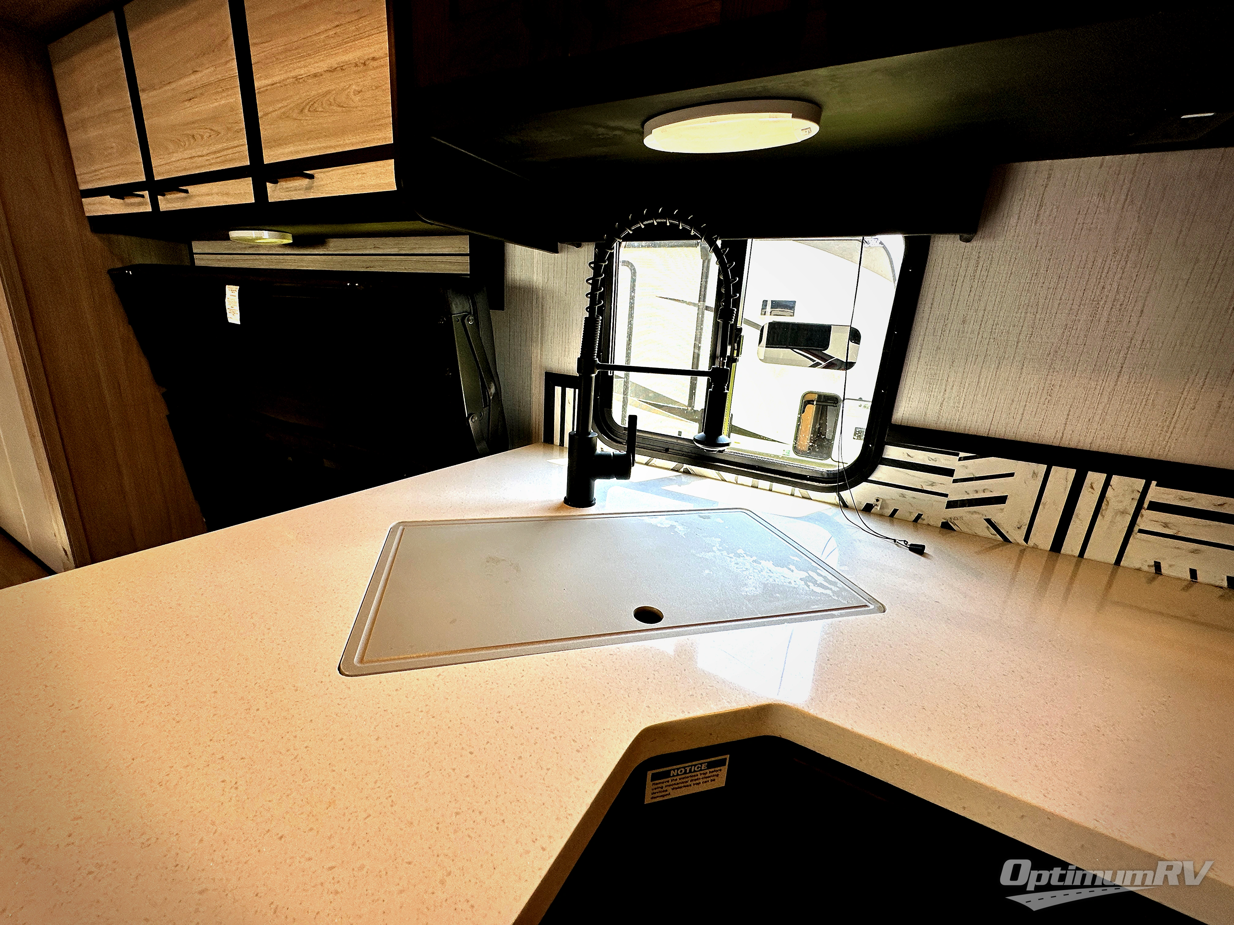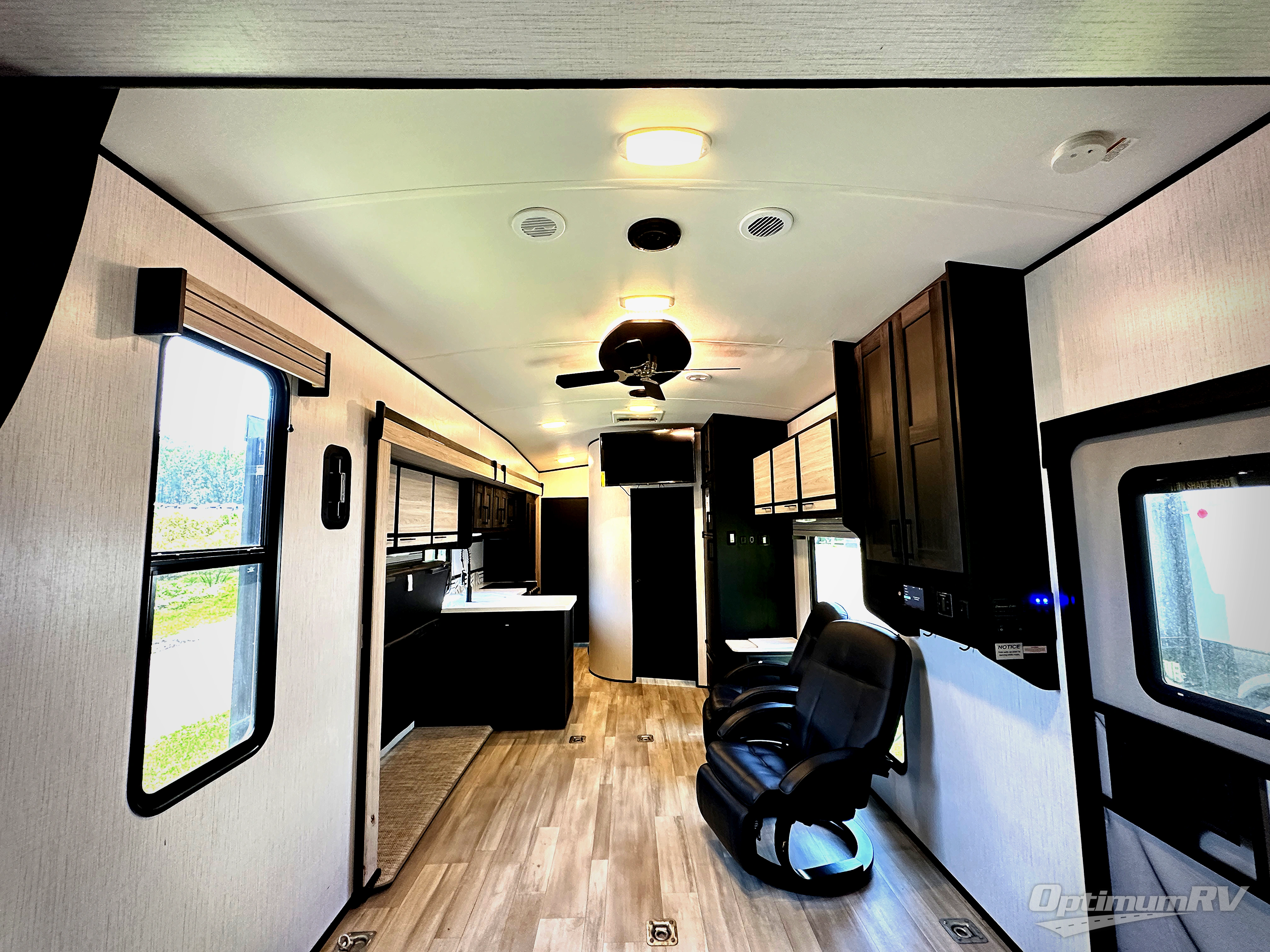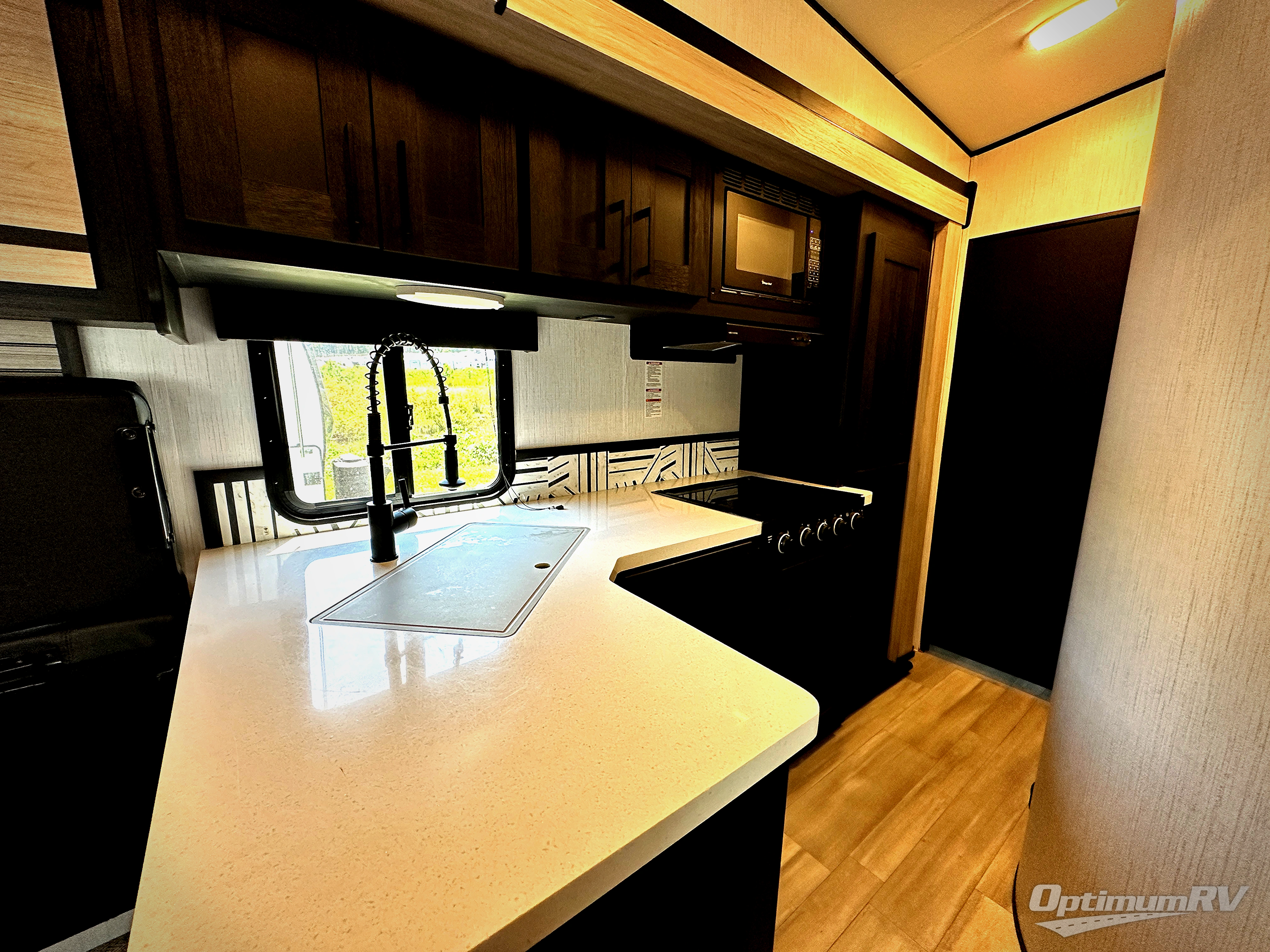 You can't go wrong with this dual entry toy hauler in tow! Once you arrive at the campground, fill up the bikes using the convenient 30 gallon fuel station, then head out on a trail or two! There is a dual entry bath on board that will allow you to clean up before heading to the kitchen to start dinner. You will love the large slide out that will provide more space when cooking, and there is a sofa with a table to dine at. You may just want to kick back on the dual lounge chairs before starting the dishes. Sleeping space can be found on the king bed in the front master, or on the opposing sofas and power queen bed in the garage!