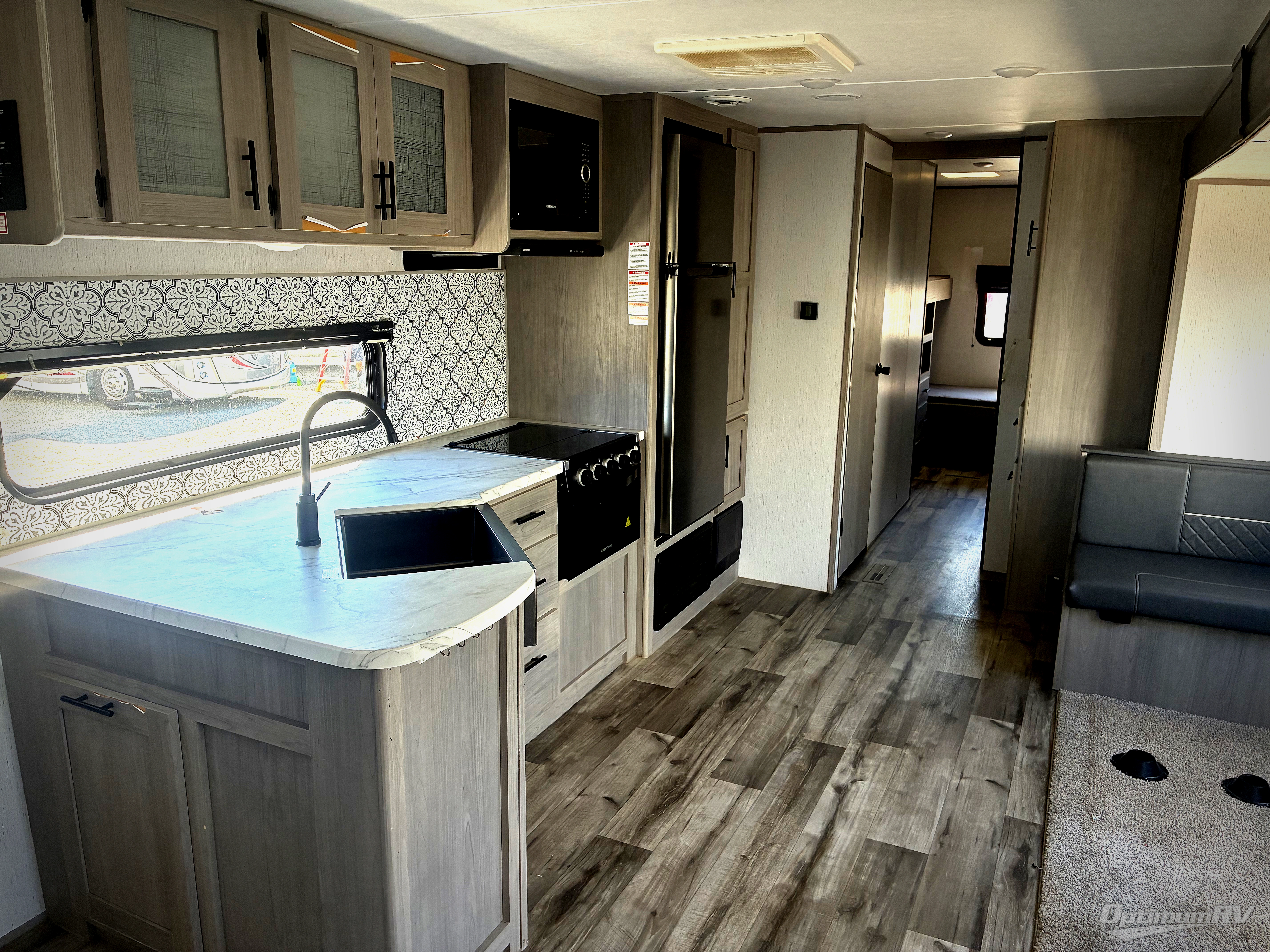 Spacious, inviting and comfortable, this trailer offers it all! You and your group will love the rear bunkhouse with four bunk beds, a slide out giving you more floor space, and privacy when you close the door. And there is a full bathroom just outside the bunkhouse for convenience and easy access when in the main area. You and another can sleep on the opposite side of the trailer in the front bedroom on a queen bed with access from each side and your own clothing storage. The cook will enjoy having a farm style sink with high rise faucet, and full amenities including a 10 cu. ft. refrigerator to store leftovers. There are many more features to enjoy such as the power tongue jack when setting up, the pass-through compartment for your larger outdoor gear, the outside shower to rinse off the dirt from your shoes, and the USB ports for all the electronics.