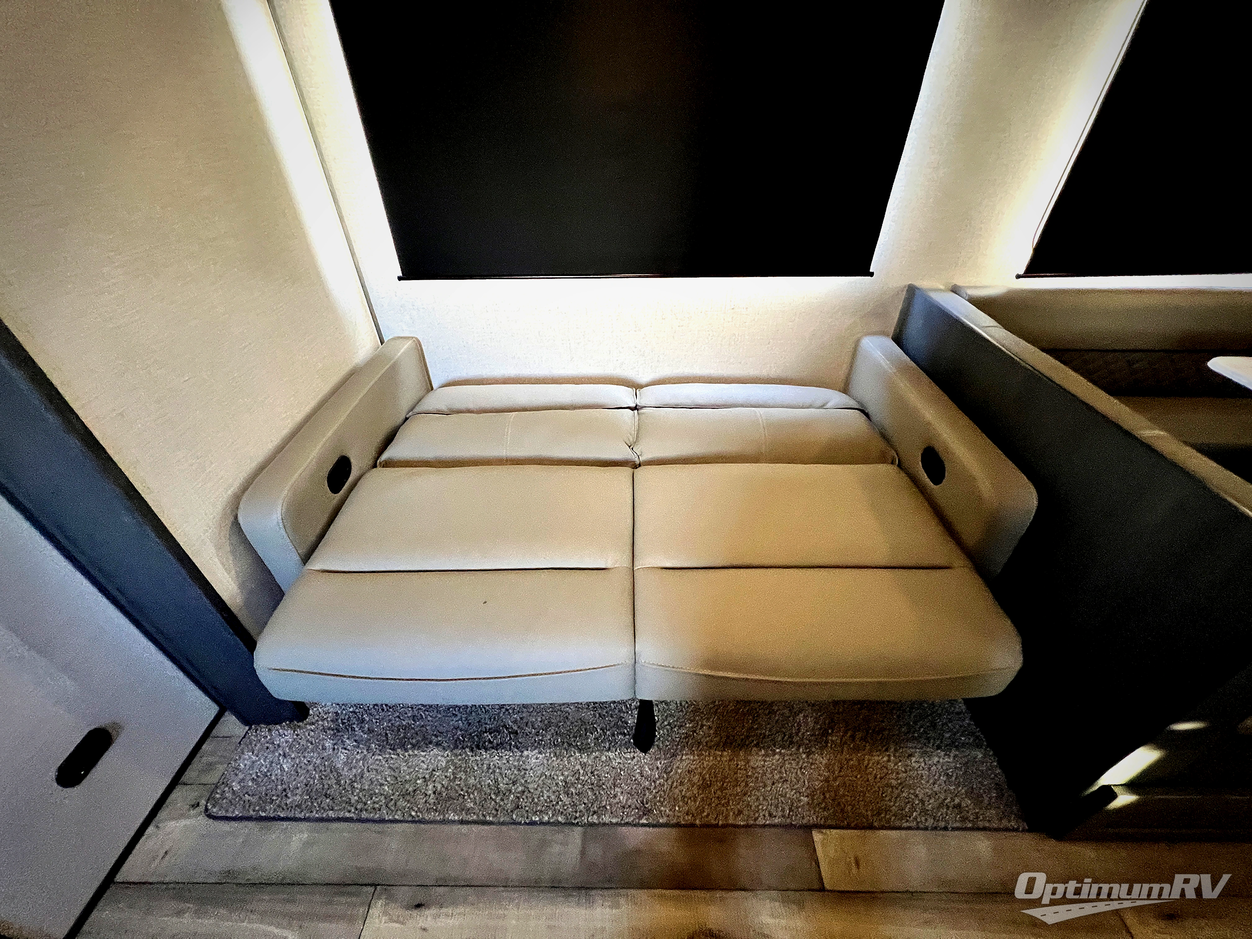 When you camp, you don't have to leave comforts of home behind when you have this travel trailer! You can sleep like a queen in the front master suite while your family and friends sleep on the U-shaped dinette and sofa, plus the double-size bunk beds next to the full bathroom. And there is plenty of bathroom space with a half bathroom included in the master suite, and a full bathroom. You'll have extra interior living space with a large slide, and this allows you to relax comfortably as you enjoy the fireplace and hinged entertainment center. There is even a pantry hidden behind the entertainment center too. Another great convenience that this trailer offers you is the set of two entry doors. One of the doors leads directly into the front bedroom which is super handy for the owners of this trailer.