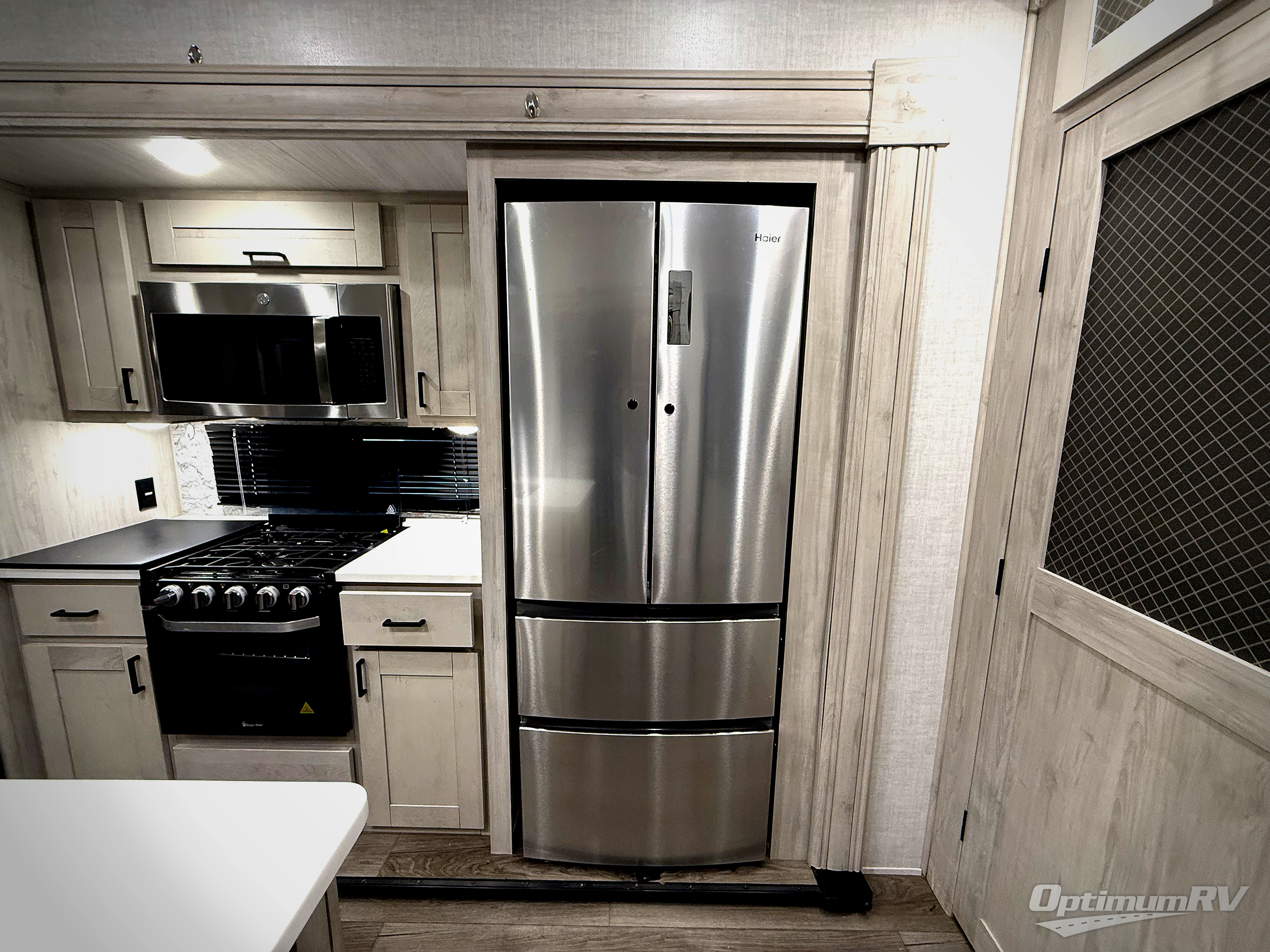 If you're ready to enjoy some luxury at an affordable price, choose this Tandara fifth wheel! The opposing slides will keep the interior feeling open and spacious so that you can enjoy some time in the theater seating. As you relax, you can watch the 50" LED TV across from you, and the fireplace below the TV will provide some extra ambiance. You'll enjoy your own private bedroom to sleep in each night, and the king-size bed is going to be ultra comfortable. There is even under-bed storage where you can keep some extra belongings. The four-burner range in the kitchen is going to be unbelievably helpful when you have a lot of food to prepare for breakfast in the morning.