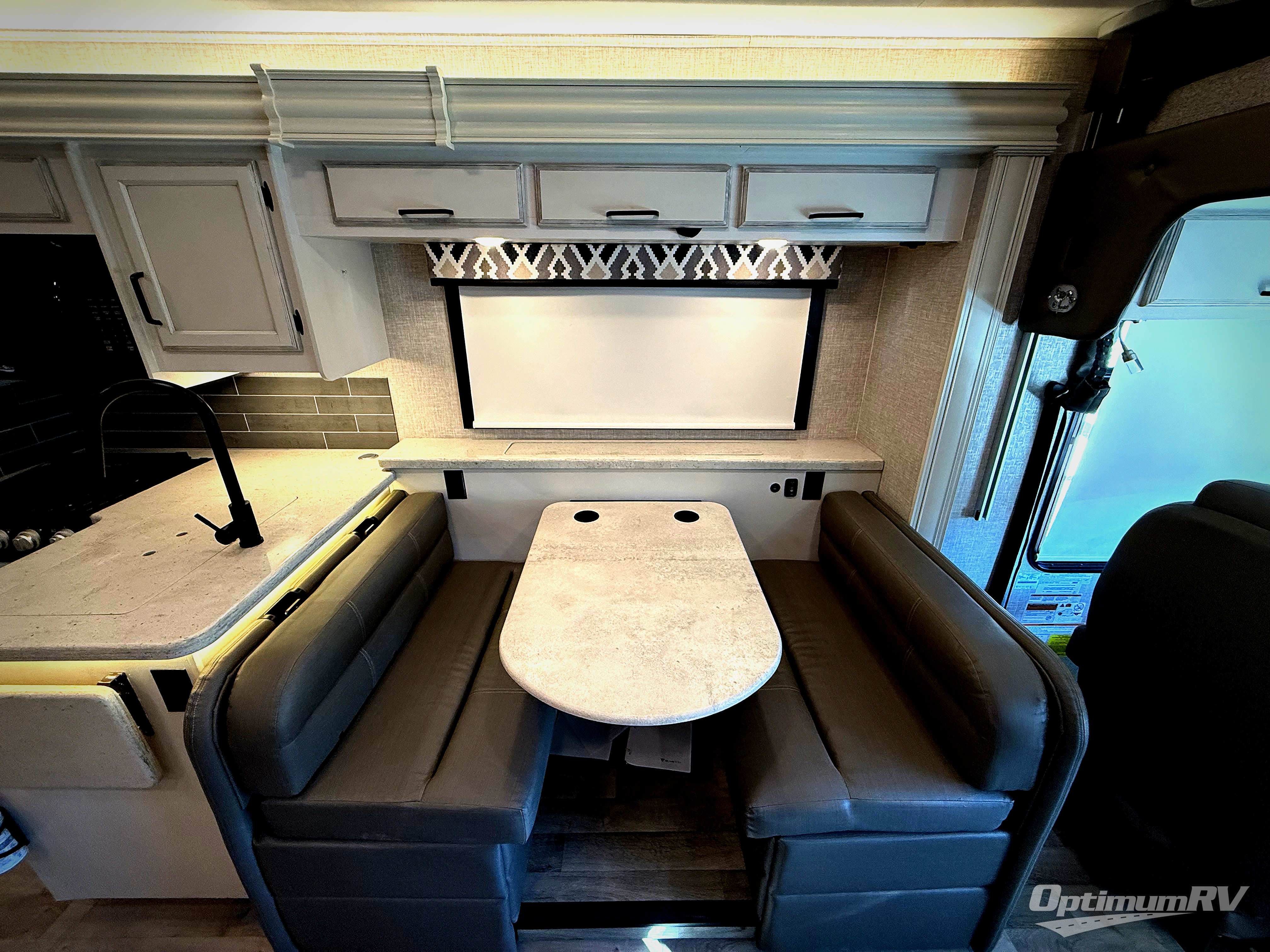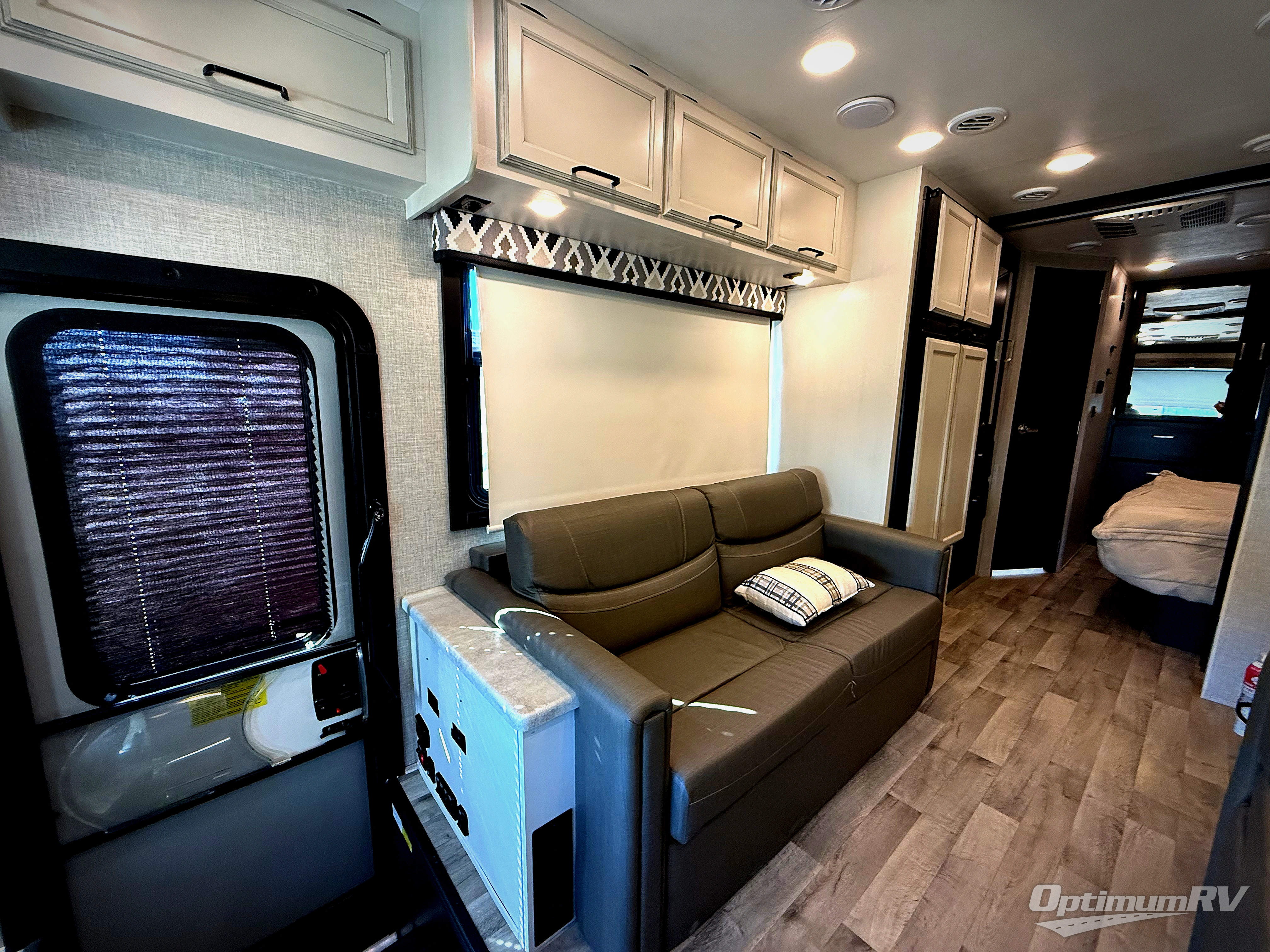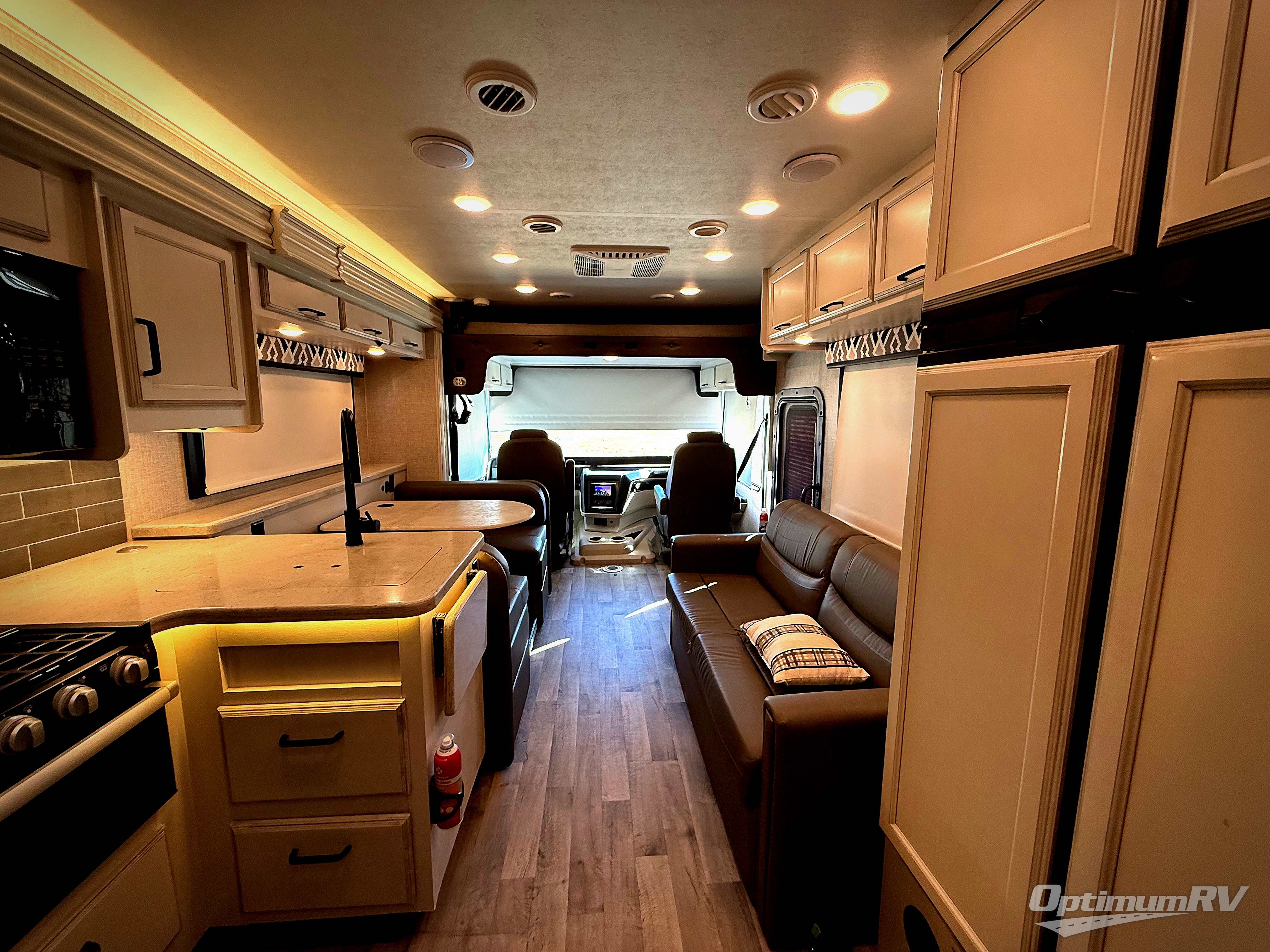 You'll love spending time with your favorite people in this Vision Class A gas motorhome! You can roam freely while inside thanks to the two slides, and the main living area has a booth dinette and sofa for relaxing. You can also turn these pieces of furniture into beds at night, and if you add the optional bunk above the cab, you'll have even more sleeping space. In between the two cab seats you'll find a removable cockpit table so that you can keep some snacks next to you as you travel. The rear private bedroom holds an RV king bed on one of the slides so that you can get to the wardrobe, and the full bathroom is right there next to the bedroom for easy access in the morning when you need to clean yourself off in the 30" x 36" shower.