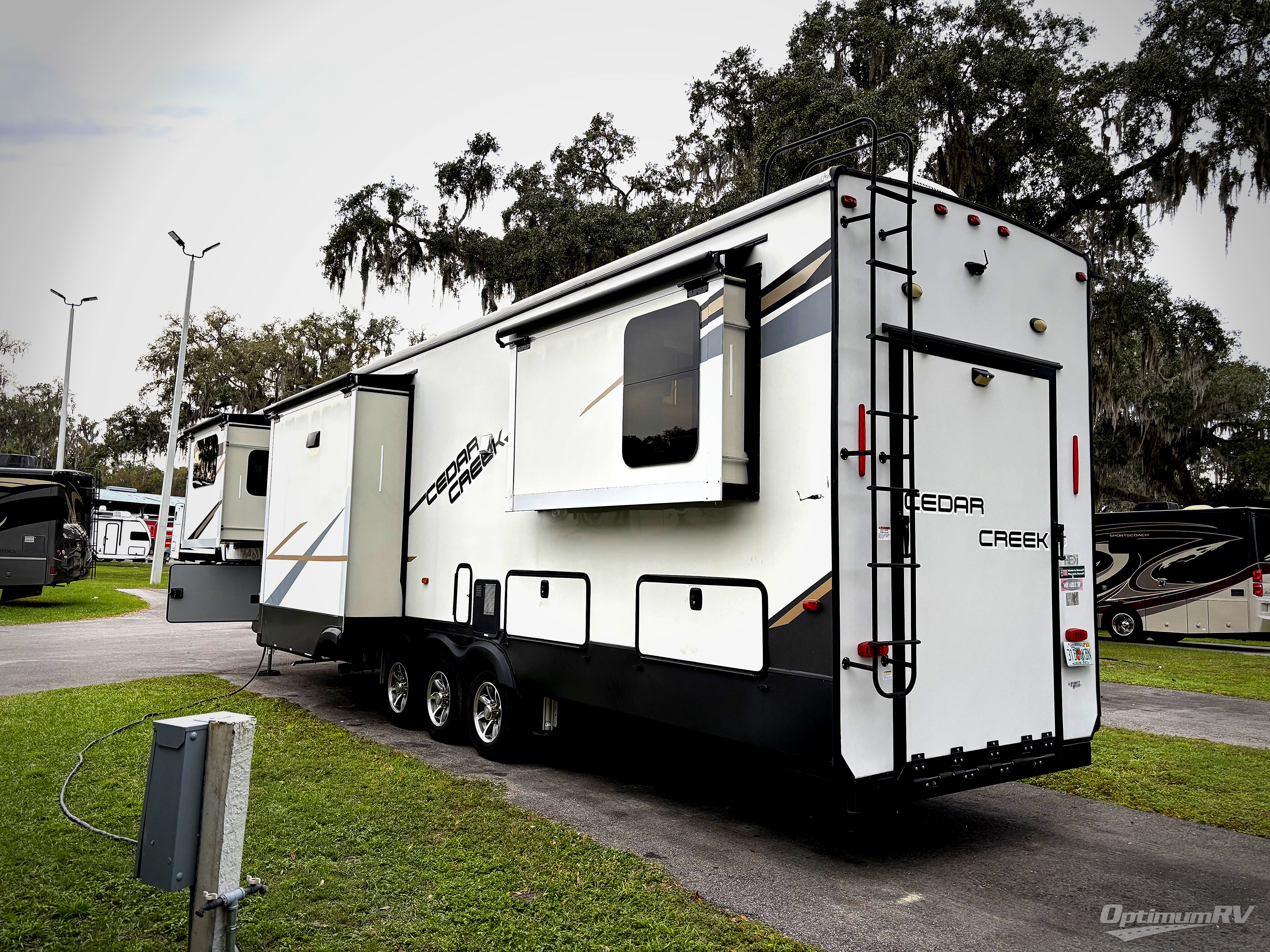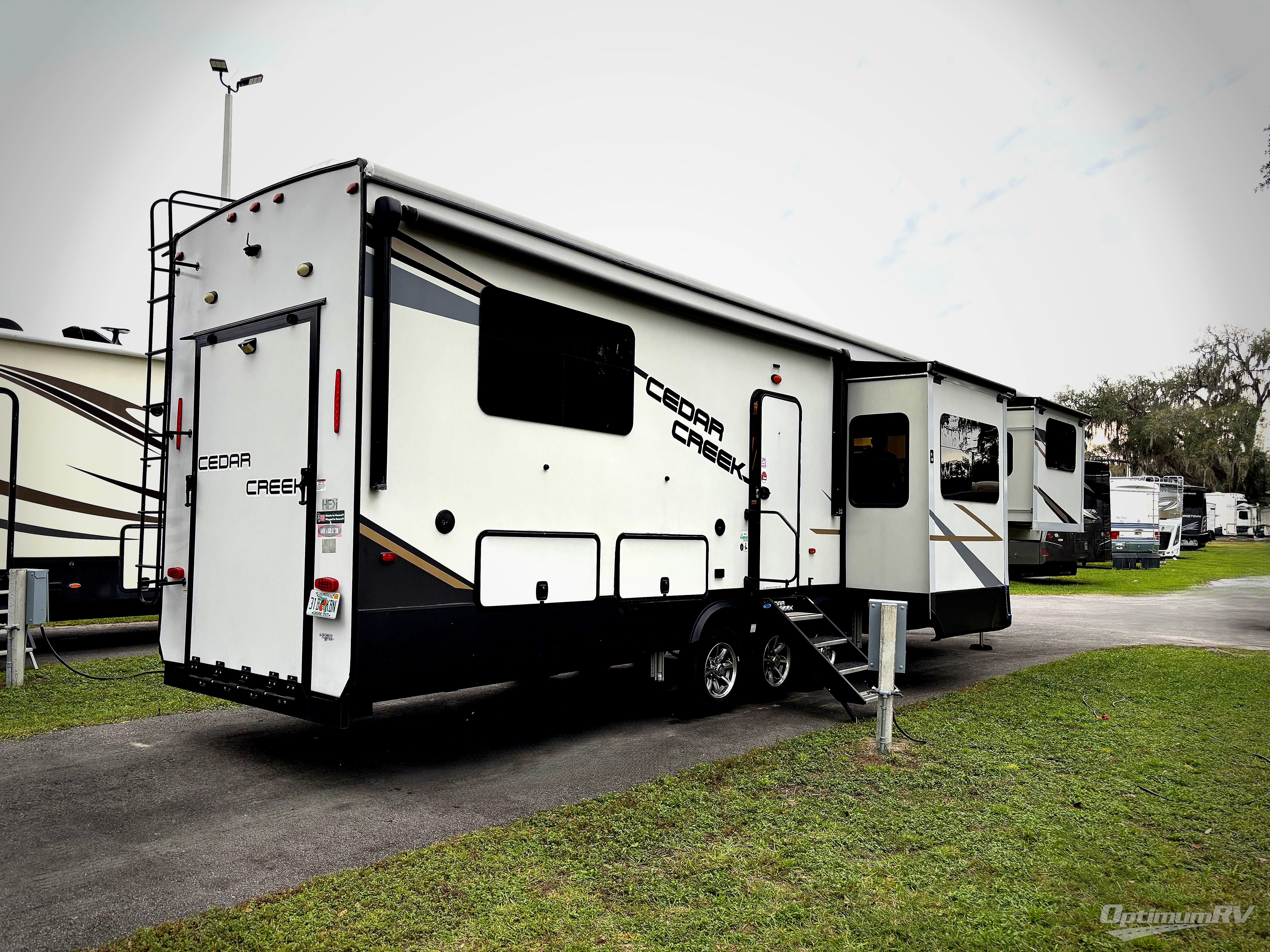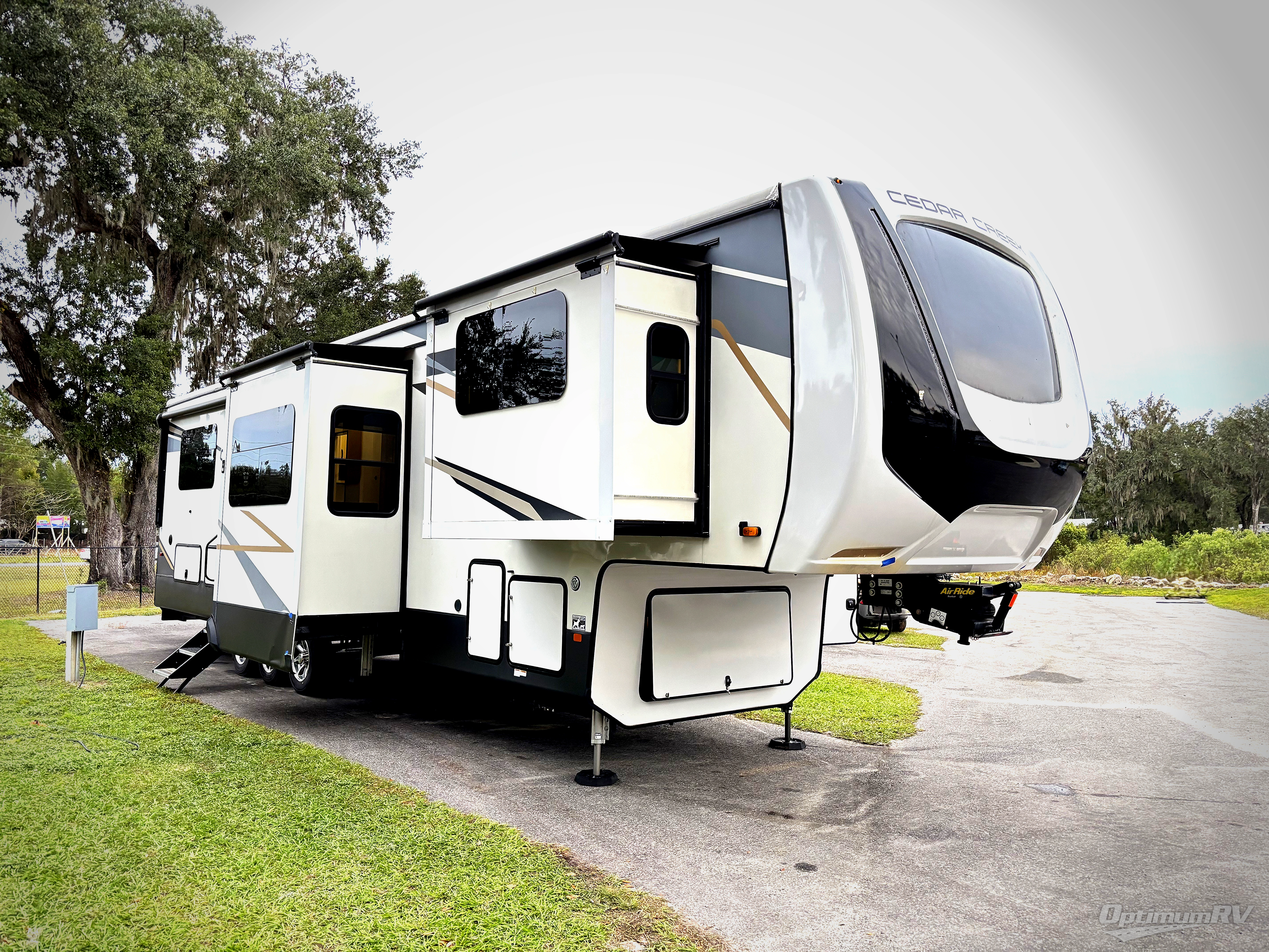 You will have peace of mind camping with any one of these Forest River Cedar Creek fifth wheels or fifth wheel toy haulers! Their aluminum superstructure, high gloss gelcoat exterior, and Dexter heavy duty axles with E-Z lube hubs will outlast all of your adventures. The Silaprene bonded sidewalls resist UV, heat, cold, oils, and highway chemicals with a bond that grows stronger with age while resisting delamination too. With the Vegatouch panel and Firefly dimmer switches, you can have total control of your unit in the palm of your hand. The exterior full docking station has multi-function tank levers, black tank flush, 12V battery disconnect, and an outside shower to keep the dirt where it belongs. The congoleum flooring throughout not only makes you feel right at home, but is also easy to clean. Come find the right model for you today!