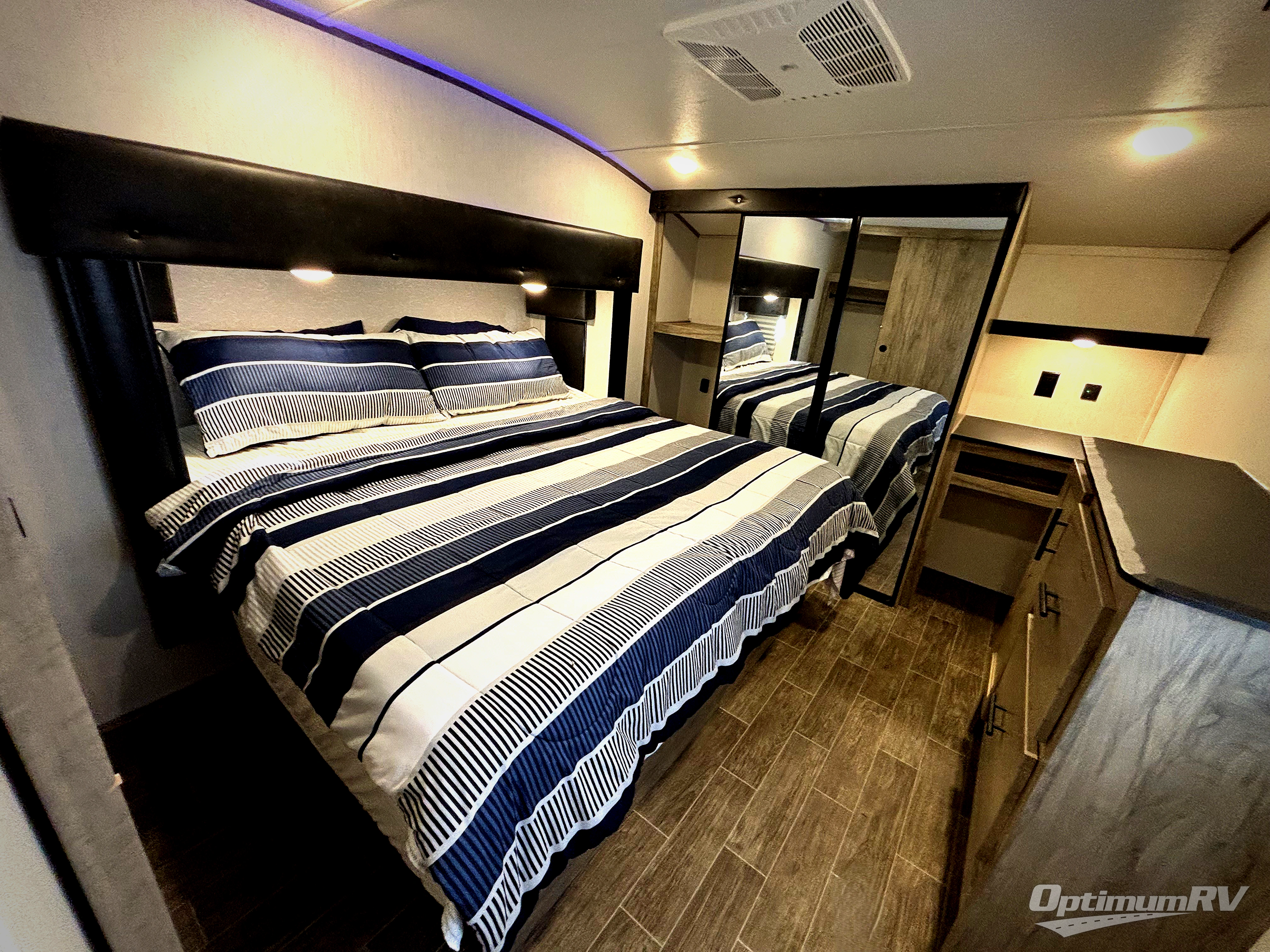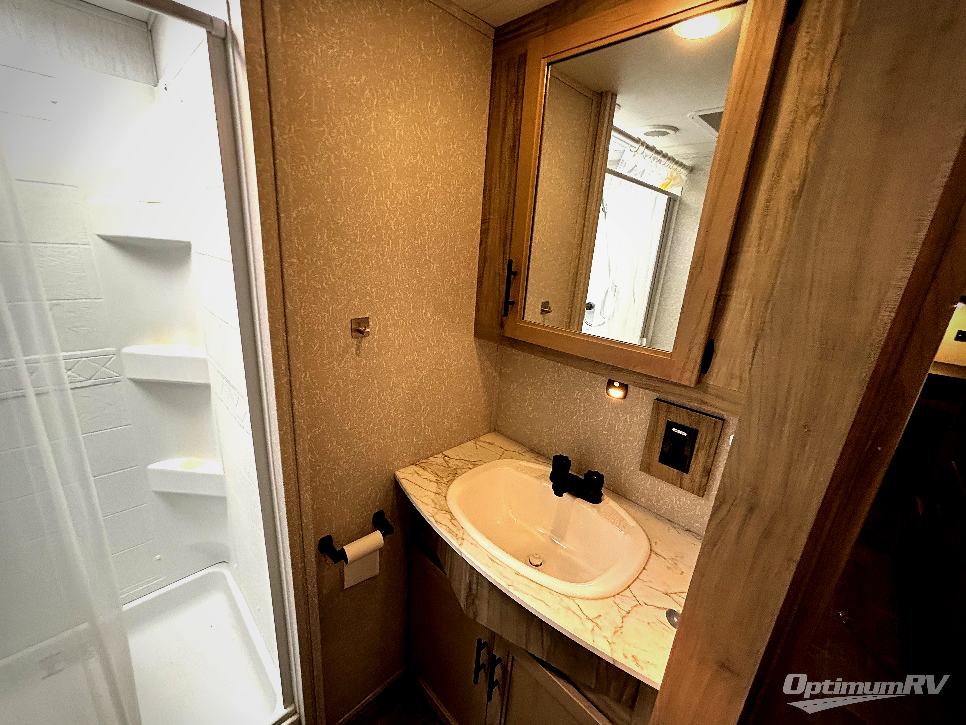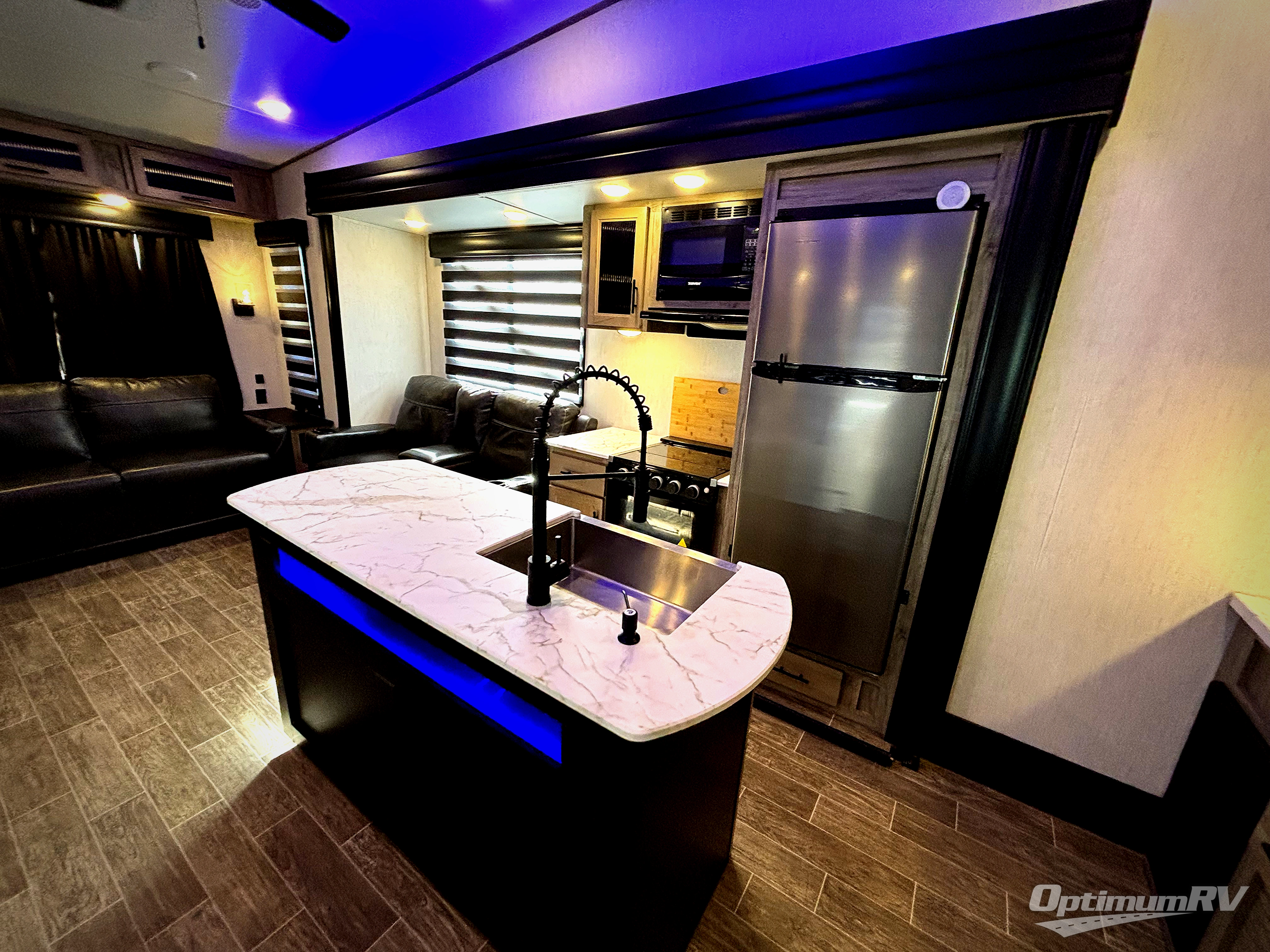 You will have amazing residential comfort in the Forest River Cherokee Arctic Wolf Suite fifth wheels! These units have a “SuperStor” dual-cavern basement storage compartment to allow you to bring more gear, and they have been constructed with a “ToughBend” rigid skirt metal design, a 1x engineered wood “SuperTruss” roof structure with 3/8" decking, and a 5/8” tongue-and-groove plywood floor decking. Each model includes Leash Latch pet safety technology, an outside shower with hot/cold water, preparations for an exterior TV, motion-sensing lighting, and a smart monitor panel with smart phone Bluetooth connectivity. The supersized central air conditioning unit (15,000 BTU) with quick cool air dump feature and second oversized 15,000 BTU ducted air conditioner will cool your unit down in a snap when you camp in the hot summer months.