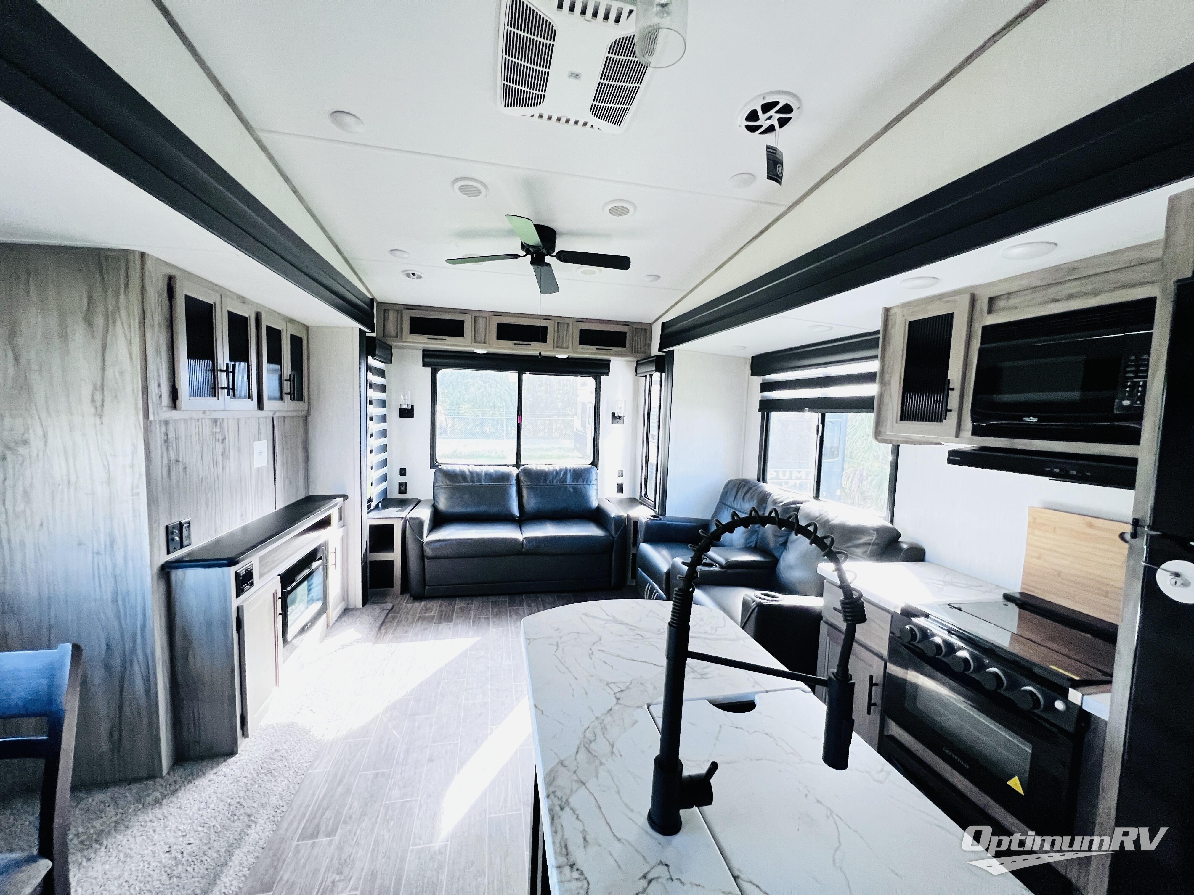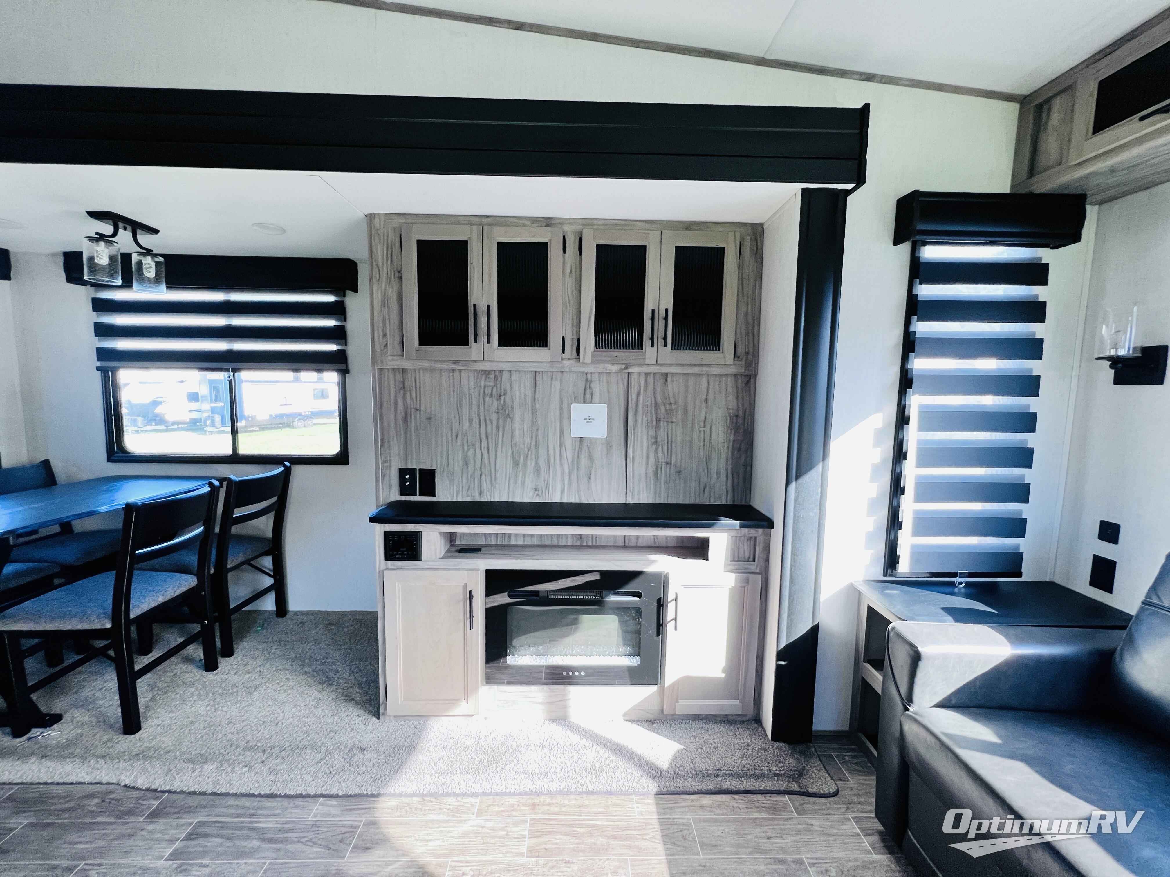 You will have amazing residential comfort in the Forest River Cherokee Arctic Wolf Suite fifth wheels! These units have a “SuperStor” dual-cavern basement storage compartment to allow you to bring more gear, and they have been constructed with a “ToughBend” rigid skirt metal design, a 1x engineered wood “SuperTruss” roof structure with 3/8" decking, and a 5/8” tongue-and-groove plywood floor decking. Each model includes Leash Latch pet safety technology, an outside shower with hot/cold water, preparations for an exterior TV, motion-sensing lighting, and a smart monitor panel with smart phone Bluetooth connectivity. The supersized central air conditioning unit (15,000 BTU) with quick cool air dump feature and second oversized 15,000 BTU ducted air conditioner will cool your unit down in a snap when you camp in the hot summer months.