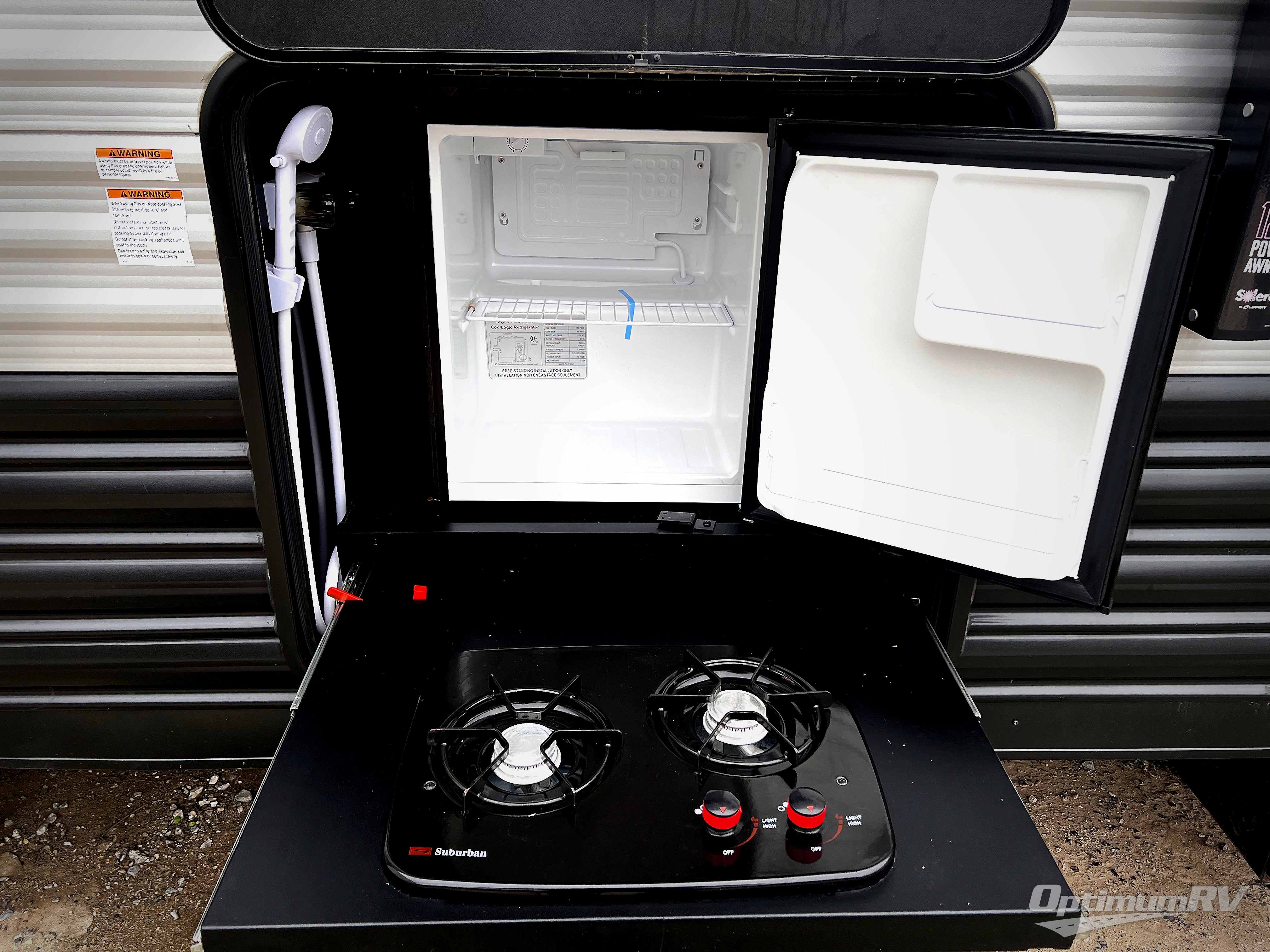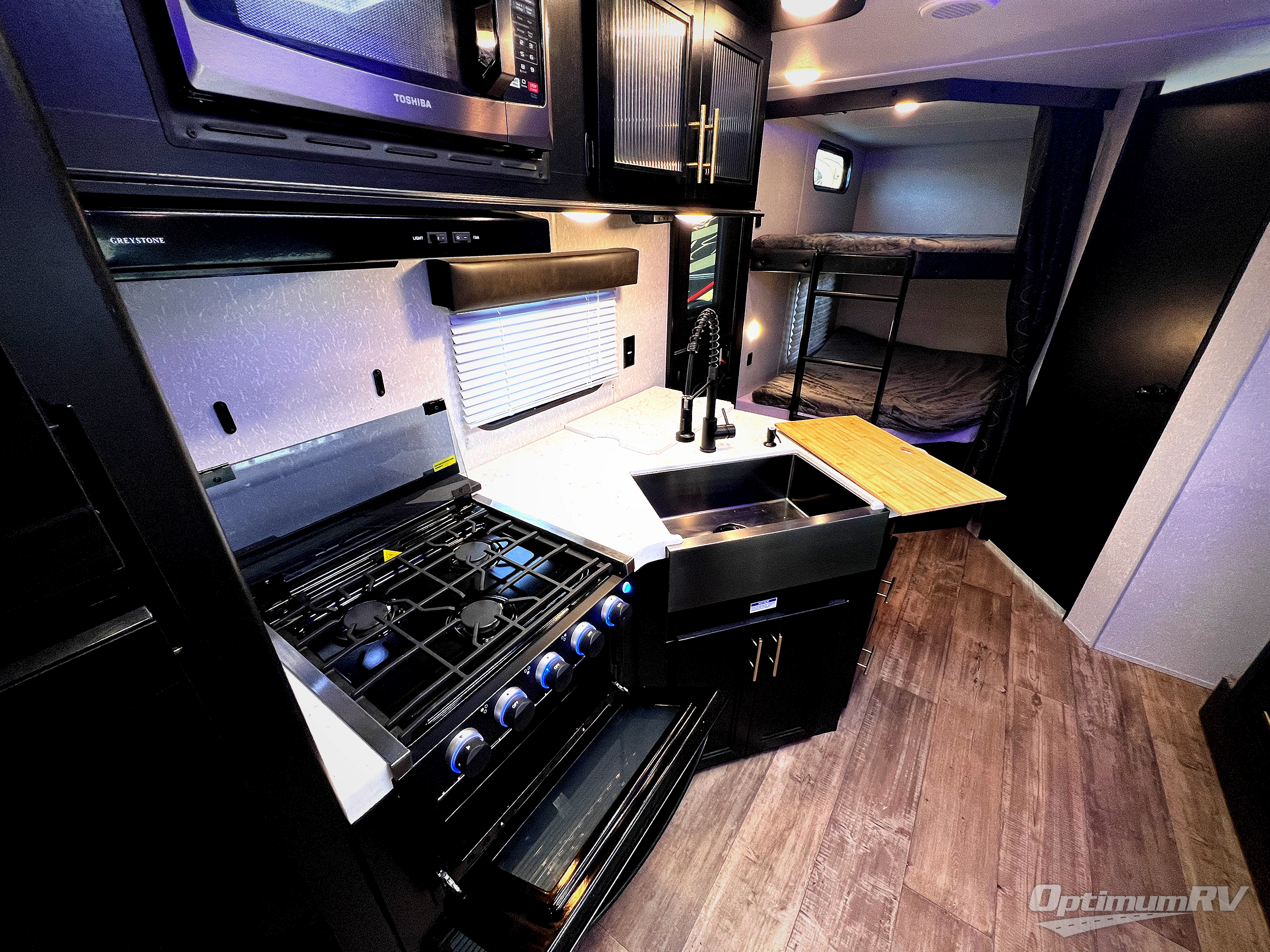 It's time you go camping the right way with this Forest River Cherokee Grey Wolf travel trailer! It features a front private bedroom with a queen bed for you to escape and recharge after a fun-filled day. Your kiddos are sure to love having their own set of rear double-size bunks with a ladder for safety, and you are sure to love that the rear corner bath is located right next to them. Inside the kitchen, there is a pantry big enough to hold your group's favorite snacks and a residential farm-style stainless steel sink to make your clean-up a breeze. There is also a U-shaped dinette for you to enjoy your meals at or play a card game or two!