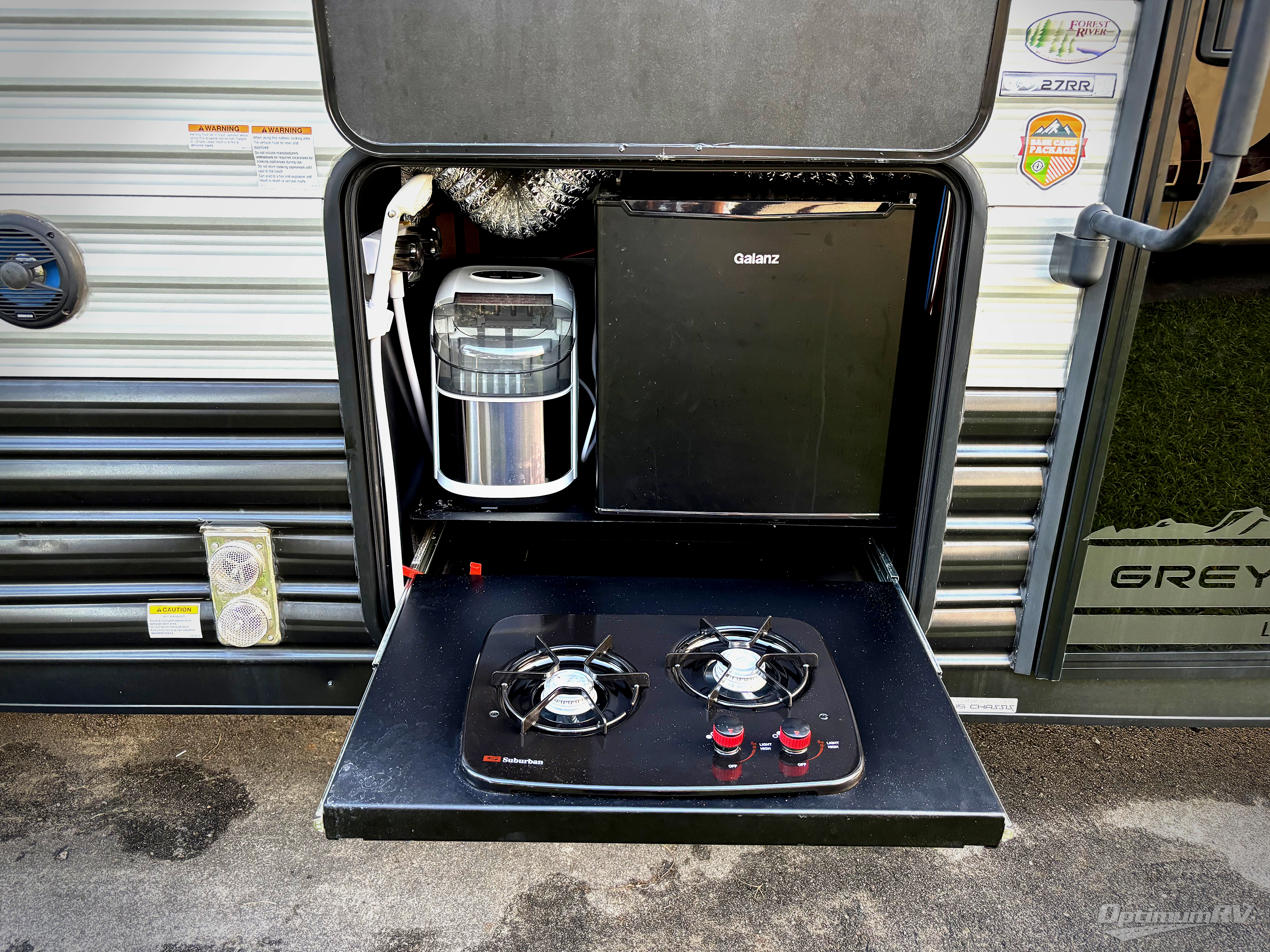 Whether it's a journey that will take you to new locations or a tried-and-true getaway to that favorite and memorable destination, the Forest River Cherokee Grey Wolf travel trailers and toy haulers are going to make the trip worth it every single time! You can travel in confidence with the premium wheel package, seamless roofing membrane with heat reflectivity, Power Gear frame technology with space-saver rail design, and Cherokee back-up camera system. The Cherokee Grey Wolf's interior is highly attractive with its stainless steel kitchen suite package, premium bedding ensemble and comforter, and 8" ceiling-mounted subwoofer with accent lighting. You will also find a black waste tank flush-out kit, an outside shower with hot and cold water, an armored underbelly tank enclosure, a power tongue jack, and an RV grill quick connect.