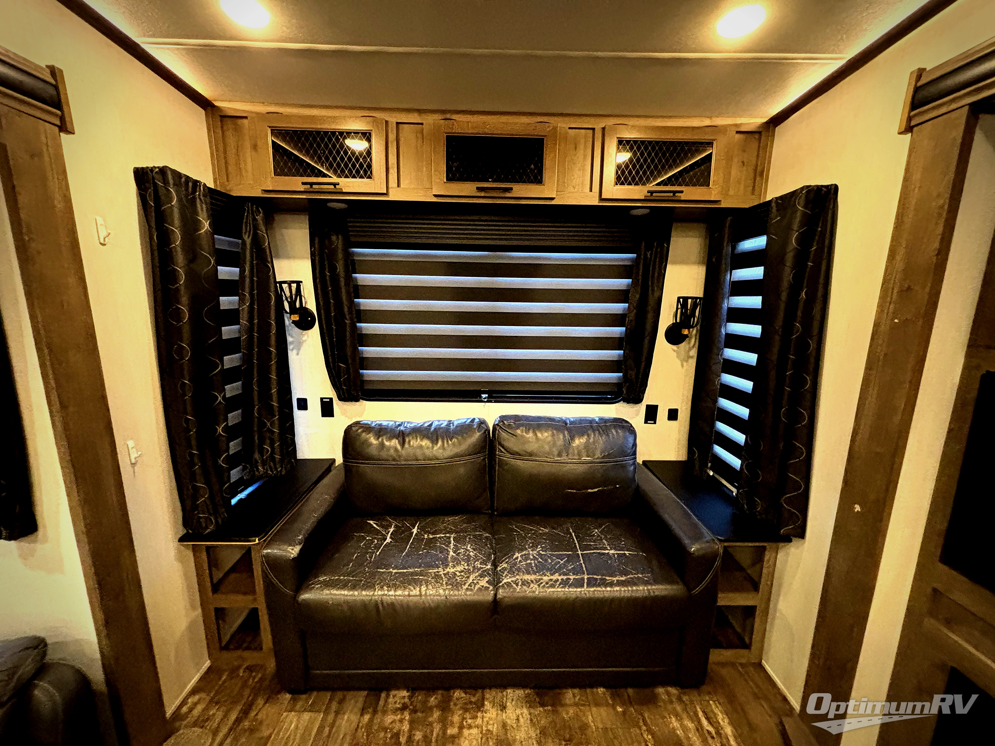 You will experience luxurious camping trips at an affordable price with any one of these Forest River Sabre fifth wheels! These models are durable and ready to travel anytime of the year thanks to features like the high-gloss gel-coat front cap with LED lighting, the PVC roof membrane, and the forced air underbelly with enclosed gate valves. The electric auto-leveling system makes setting up easy and safe, and the adjustable power awning with LED lighting will create an inviting outdoor living space. Each model includes a universal docking station which includes a black tank flush and an outside shower, and the backlit "Secure Step" landing for you to enter and exit the unit safely. Inside, you will love the design of the ambient accent lighting above the crown molding in the living area, the real wood lumbercore cabinetry, and the vintage gaslight decorative lighting!