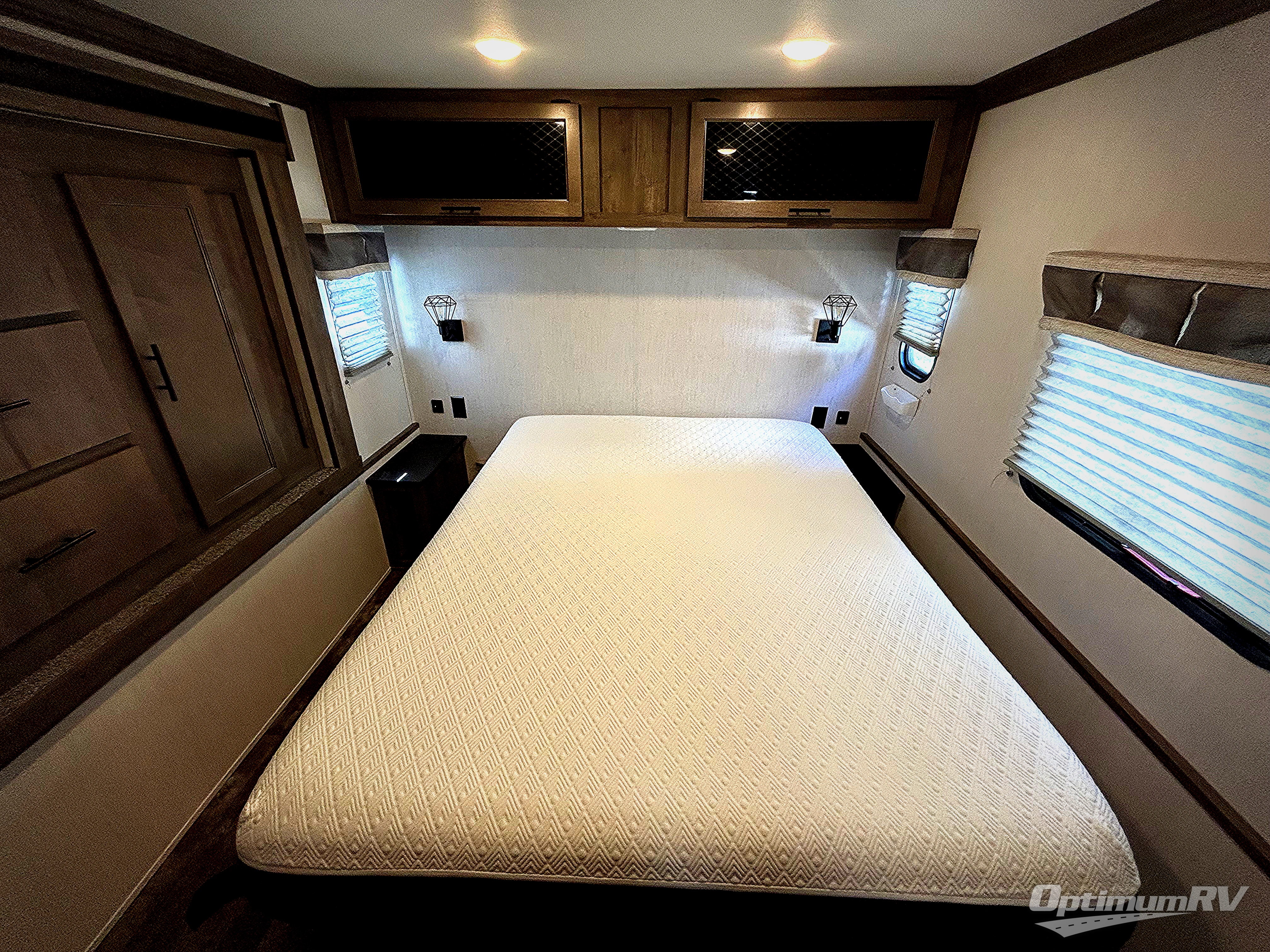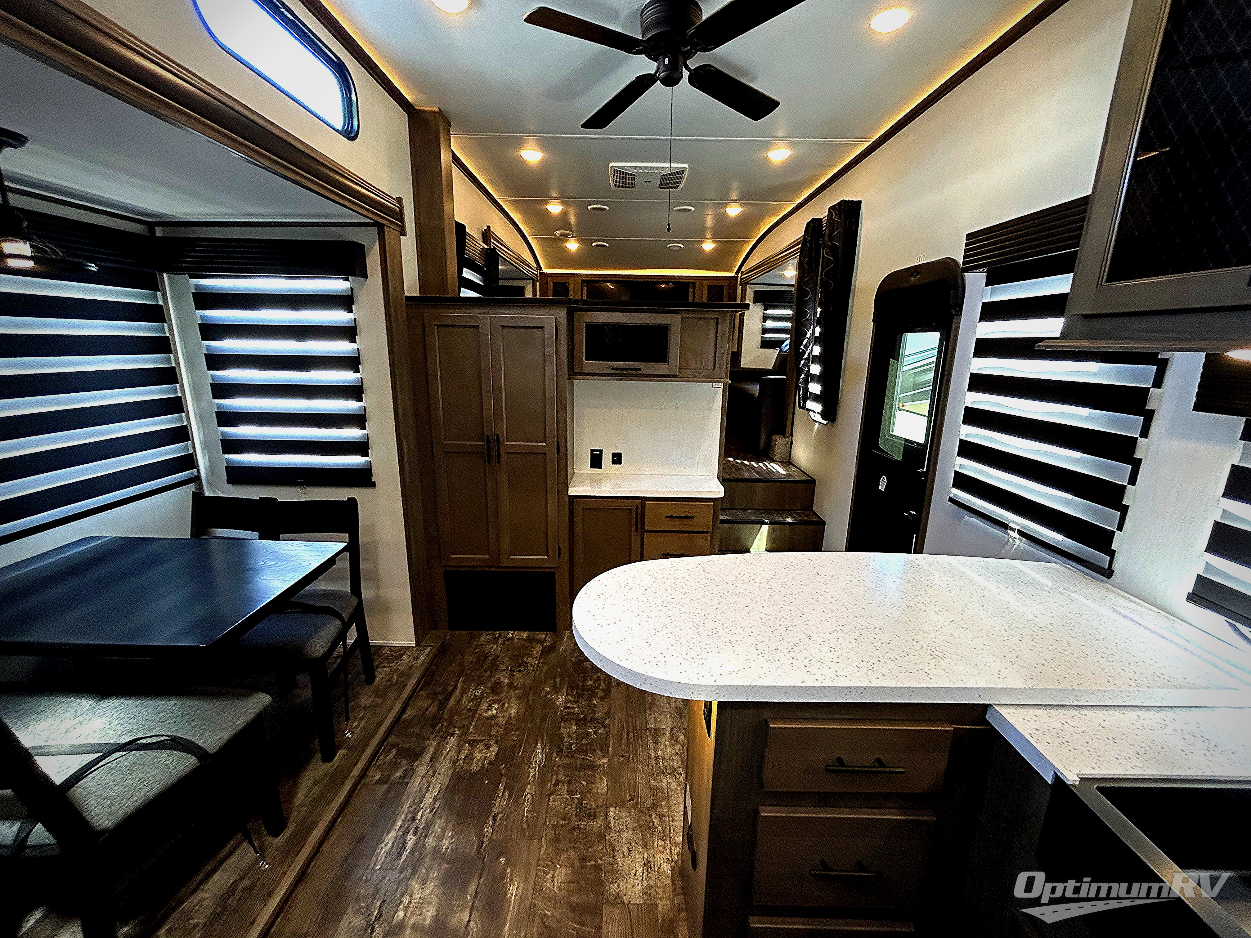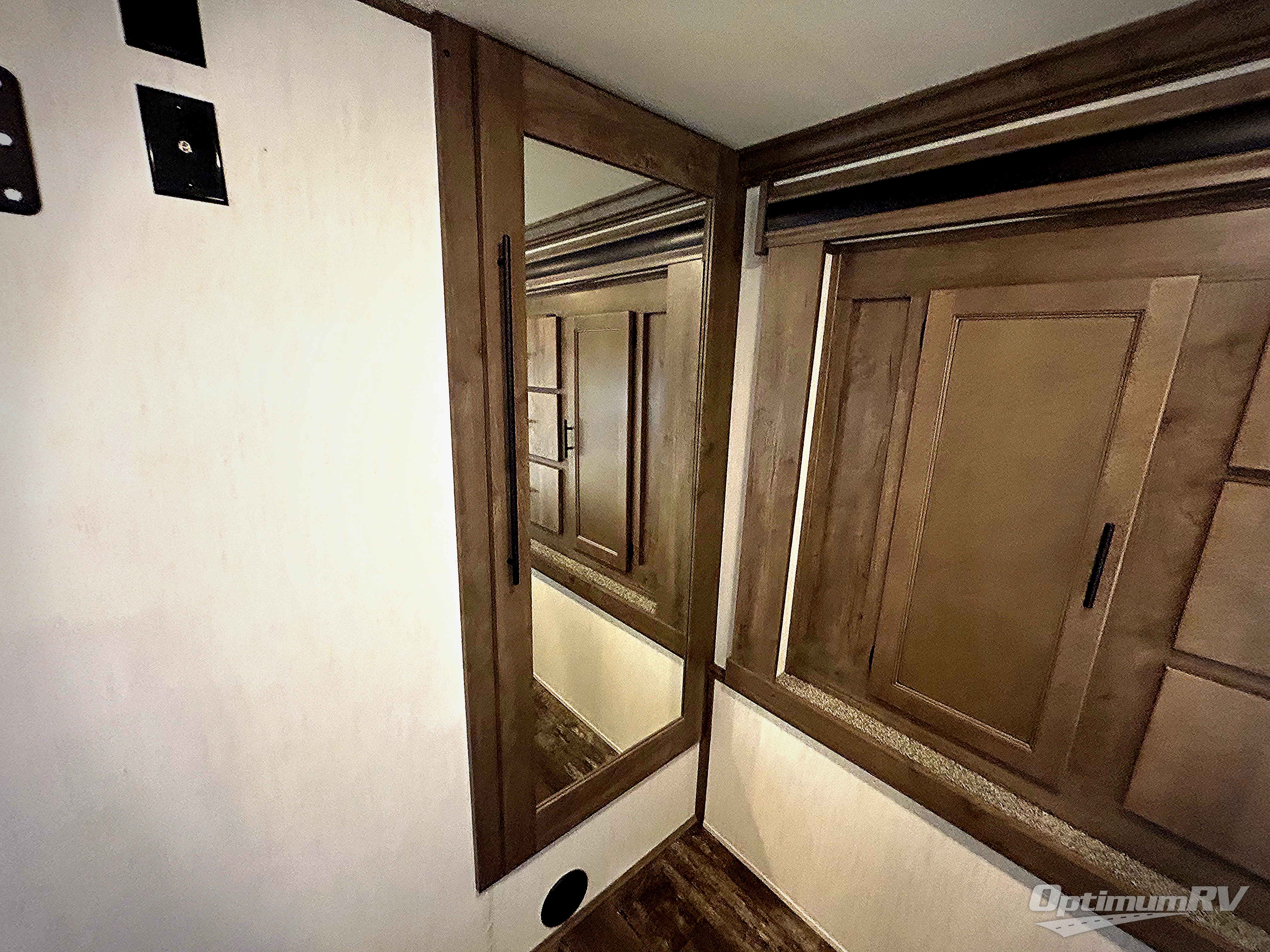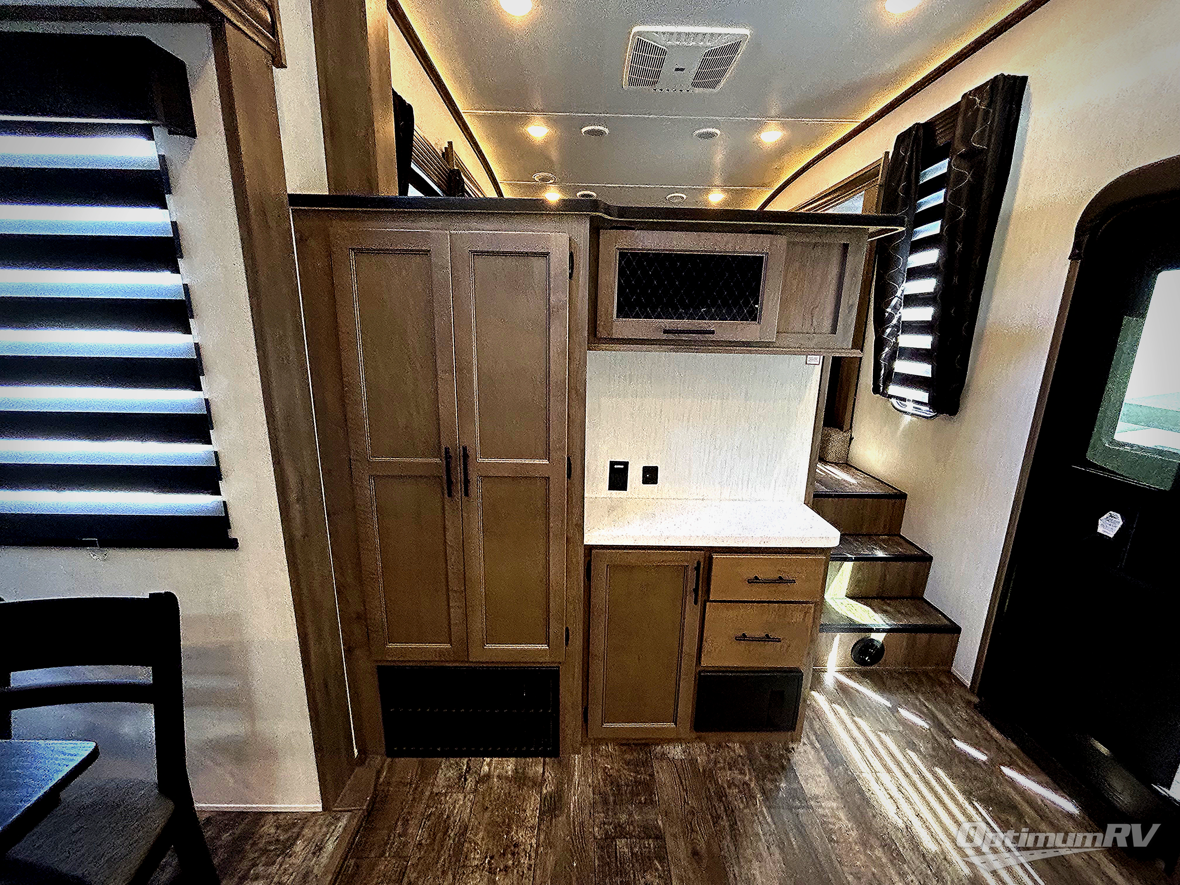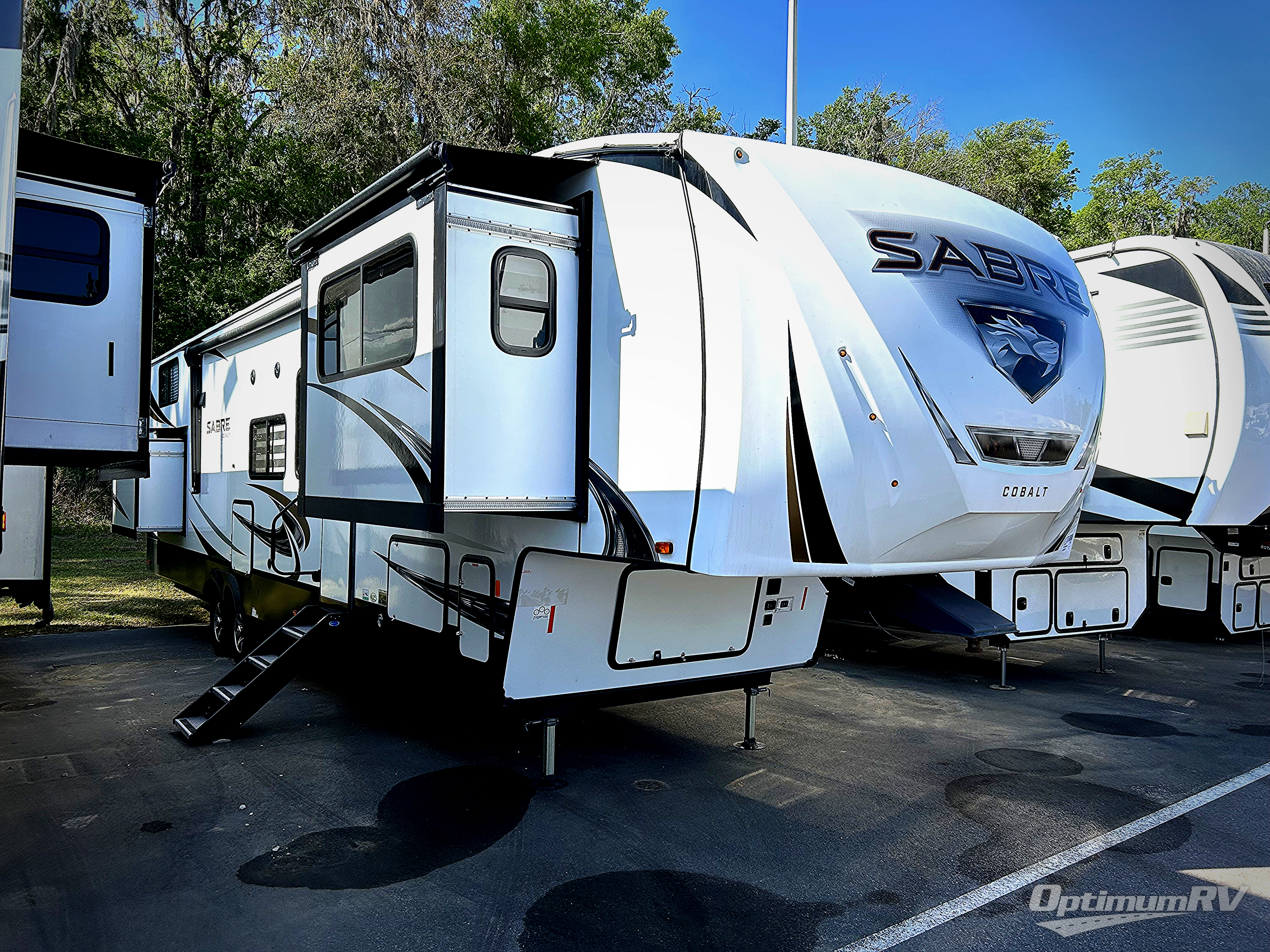You will experience luxurious camping trips at an affordable price with any one of these Forest River Sabre fifth wheels! These models are durable and ready to travel anytime of the year thanks to features like the high-gloss gel-coat front cap with LED lighting, the PVC roof membrane, and the forced air underbelly with enclosed gate valves. The electric auto-leveling system makes setting up easy and safe, and the adjustable power awning with LED lighting will create an inviting outdoor living space. Each model includes a universal docking station which includes a black tank flush and an outside shower, and the backlit "Secure Step" landing for you to enter and exit the unit safely. Inside, you will love the design of the ambient accent lighting above the crown molding in the living area, the real wood lumbercore cabinetry, and the vintage gaslight decorative lighting!