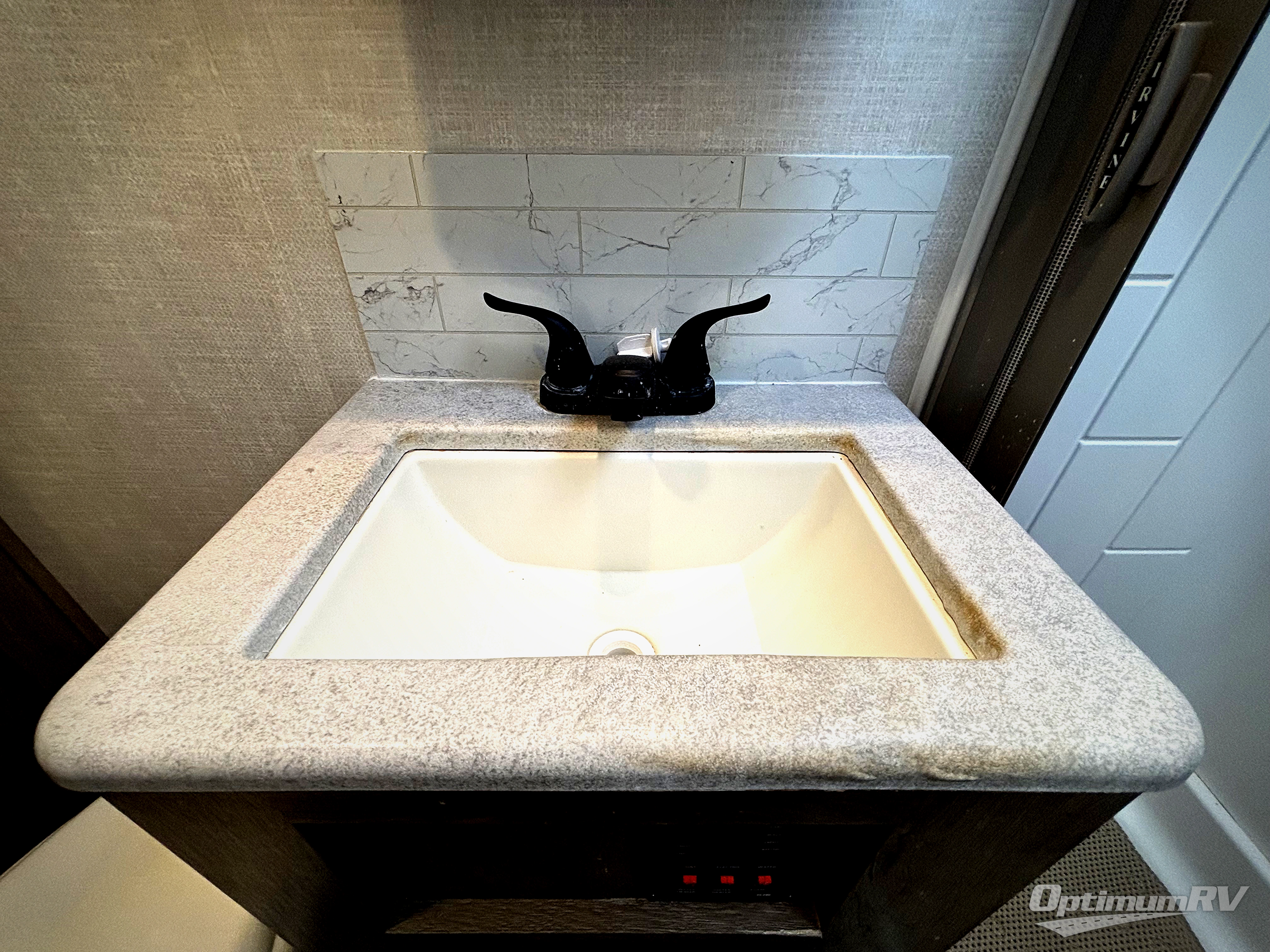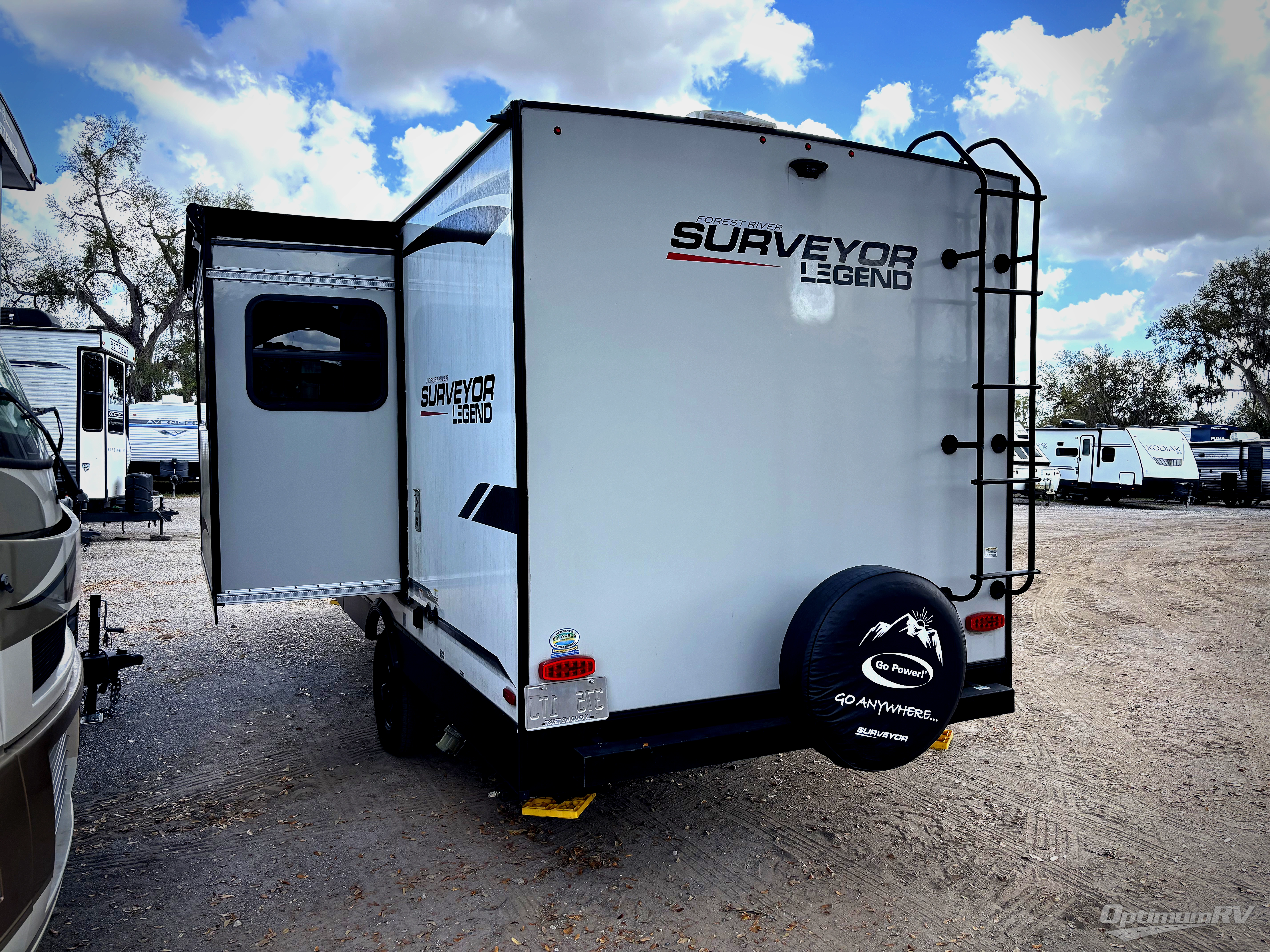 With any Surveyor Legend travel trailer by Forest River you will enjoy quality craftsmanship, convenient amenities, and at-home comforts. The Azdel composite panels provide a longer-lasting trailer, and the power tongue jack will get you back on the road in no-time. Each model includes the Surveyor Legend Package that comes standard with pleated night shades, an automotive style tinted front windshield, a multi-zone Bluetooth stereo, and more. You'll enjoy the one-touch electric awning with LED lights outdoors, plus rooftop solar prep and rear camera prep to make parking easier than ever. The inside will have you feeling right at home with Surf(x) seamless countertops, Congoleum designer carefree linoleum, residential faucets in the bath and kitchen, plus many more essentials you won't want to camp without.