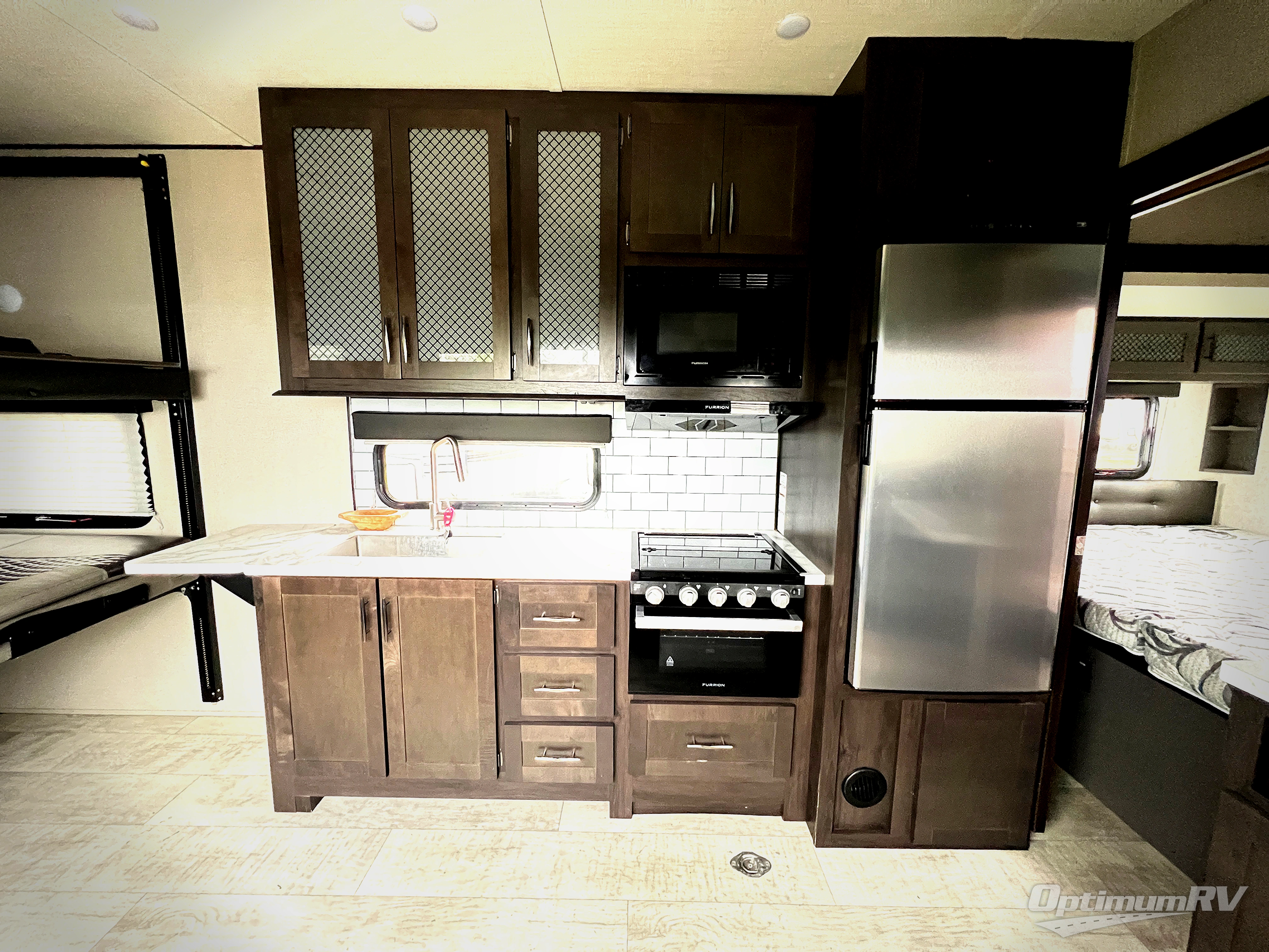 Are you looking for adventure and fun? The Momentum G-Class toy hauler by Grand Design will help you find it! You can explore during any season you choose with the Insulation Package that includes a heated and enclosed underbelly with suspended tanks, a high-capacity furnace, a moisture barrier floor enclosure, and cabinet-mounted heat ducts. Each model includes a 30-gallon fuel station with an interior and exterior gauge, a dovetail rear rend, and 2,500-LB tie-downs anchored into the chassis. Throughout the Momentum G-Class interior, you'll enjoy many comfortable features like large panoramic windows, a shower skylight, USB chargers in the bedroom, and residential cabinetry.