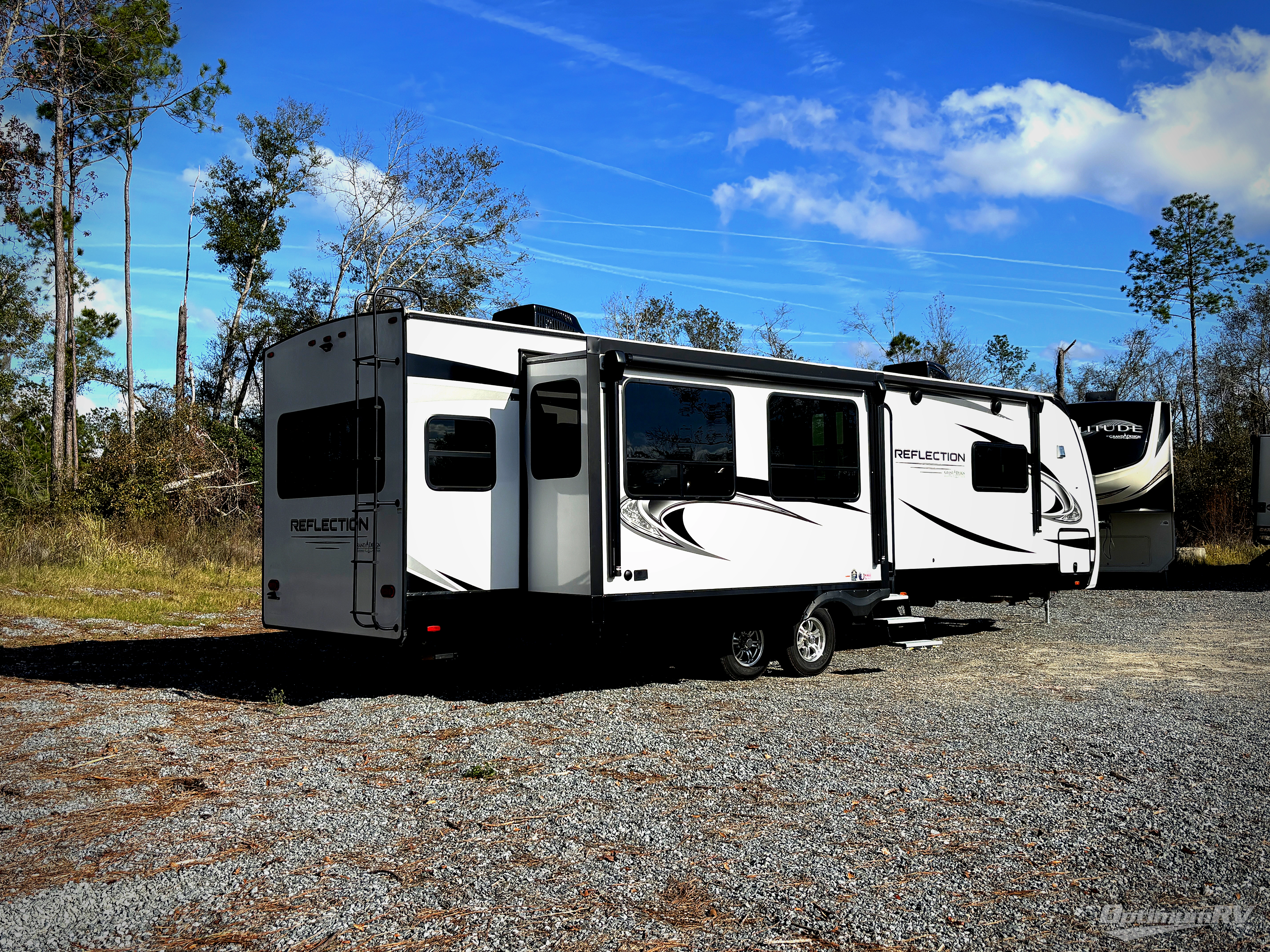 With any Reflection travel trailers by Grand Design, you will have a 165W solar panel for off-grid camping and a 50 Amp charge controller and inverter prep, a Universal All-In-One Docking Station, unobstructed pass-through storage, and Goodyear Endurance tires. Some other top features include the 30" stainless steel microwave, the maximum 7-foot headroom, and the ductless "Evenflow" heating system with no vents in the floor to collect debris. Each is constructed of gel coat exterior sidewalls, residential 5" truss rafters, walk-on roof decking, a fiberglass and radiant foil roof and front cap insulation plus laminated aluminum framed side walls, roof and end walls in slide rooms. Choose luxury, value and towability over all the others, take home a Reflection of your good taste!