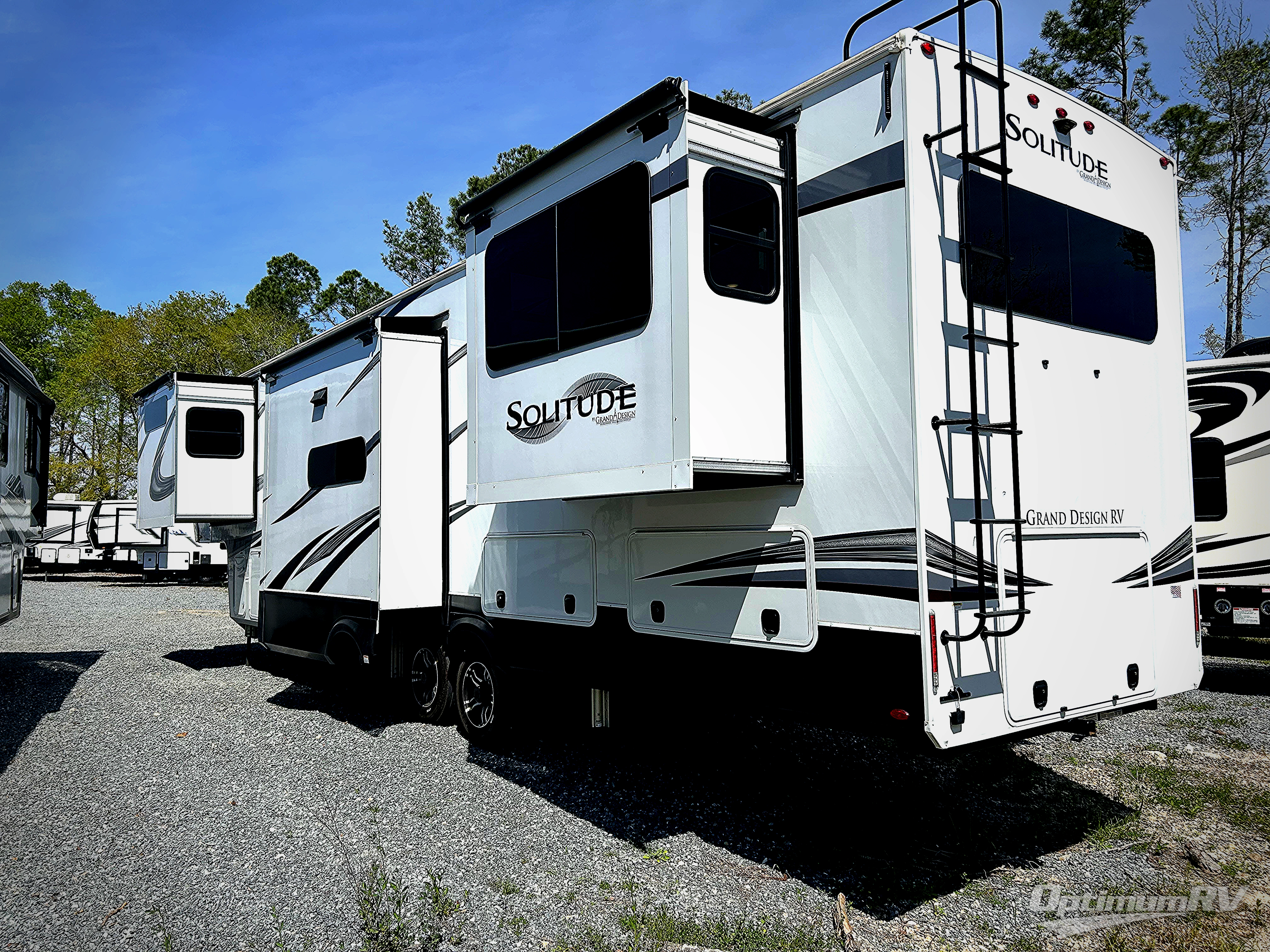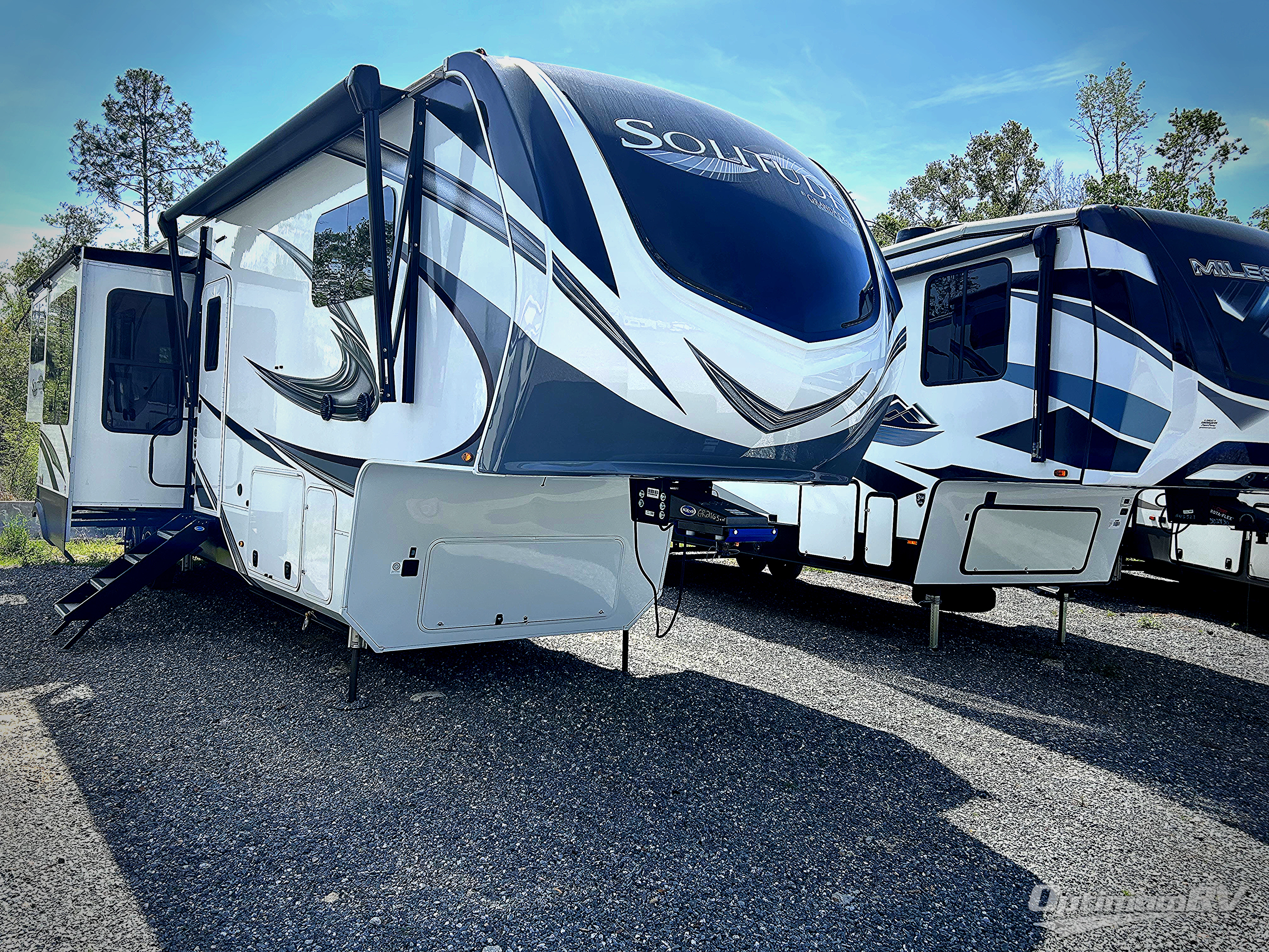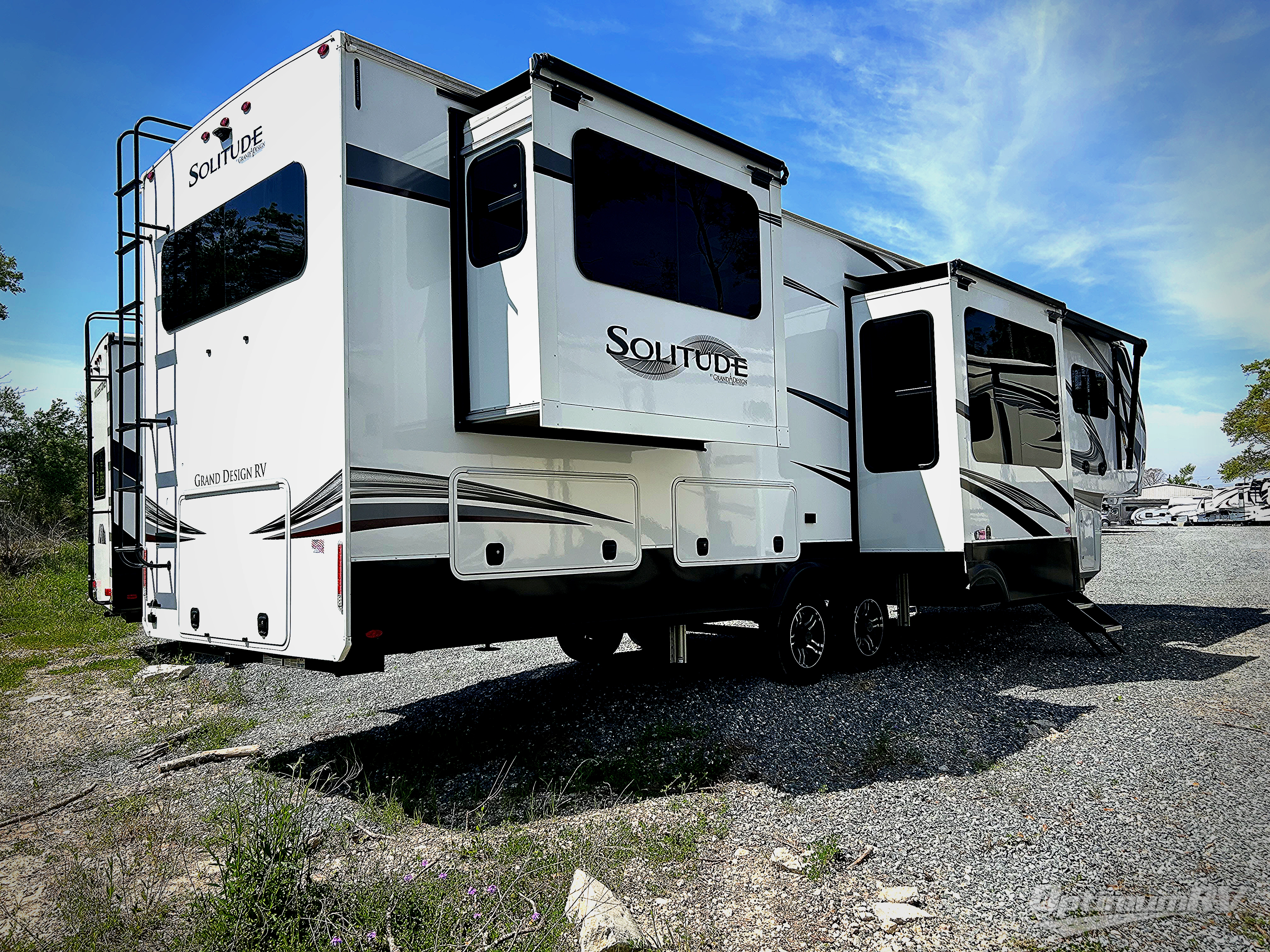 With any Solitude fifth wheel by Grand Design, you will get maximum insulation from the thermal roof design, the exclusive fully laminated walls, the triple insulated main floor, the Rail-Tite underbelly seal, the insulated gooseneck and the insulated baggage doors. The MORryde rubber pin box system utilizes a unique rubber shear spring to positively deal with rough towing and road shock, the Tire Linc TPMS system monitors pressure and temperature, and the 6-point hydraulic system allows you to setup easily. And the upgraded shower system, the hardwood window valances, the oversized kitchen pantry, the window above the master bed headboard, and the Rockford Fosgate stereo entertainment system with HDMI and App controls are a few more reasons you will love these extended-stay fifth wheels!
