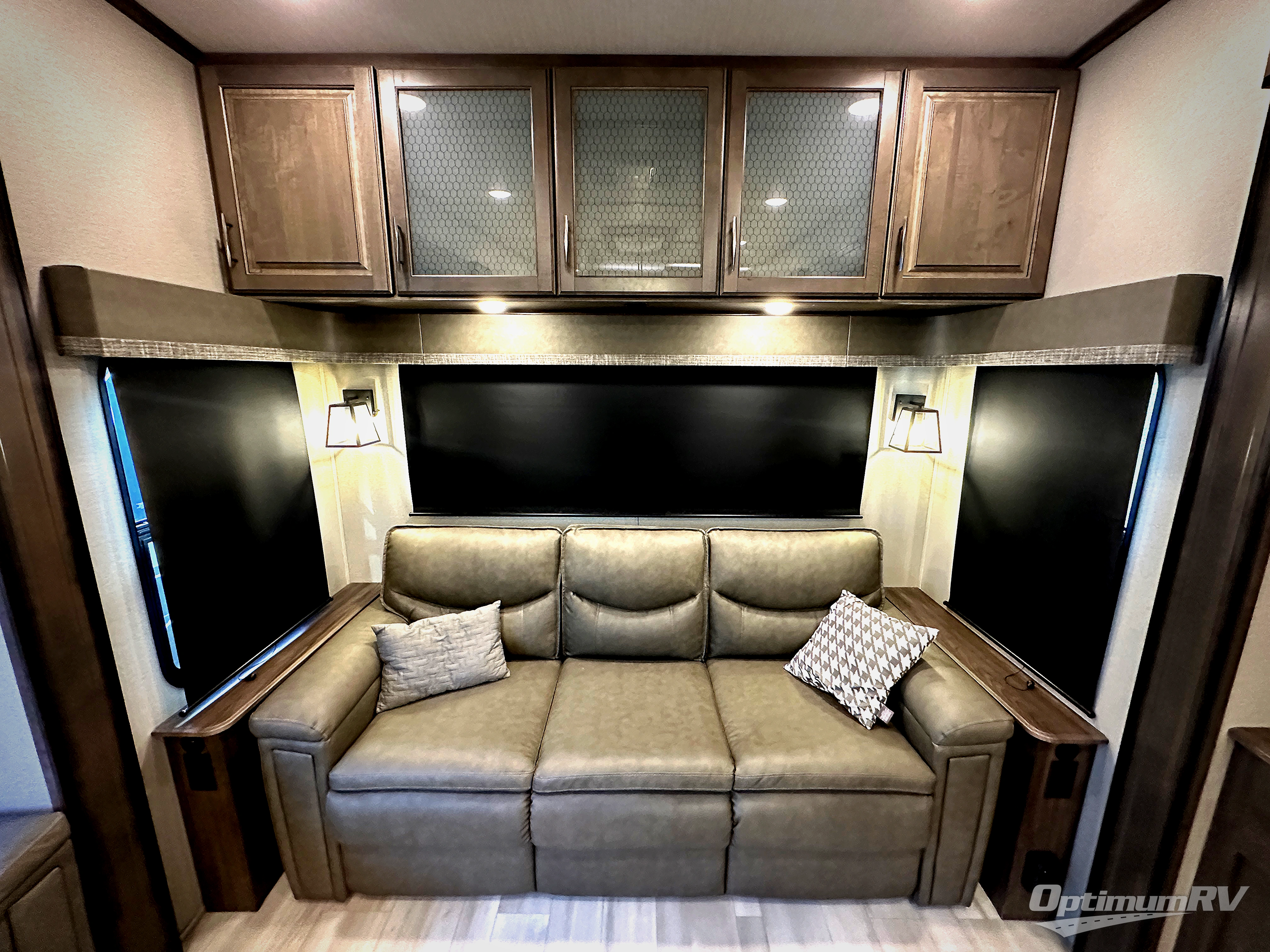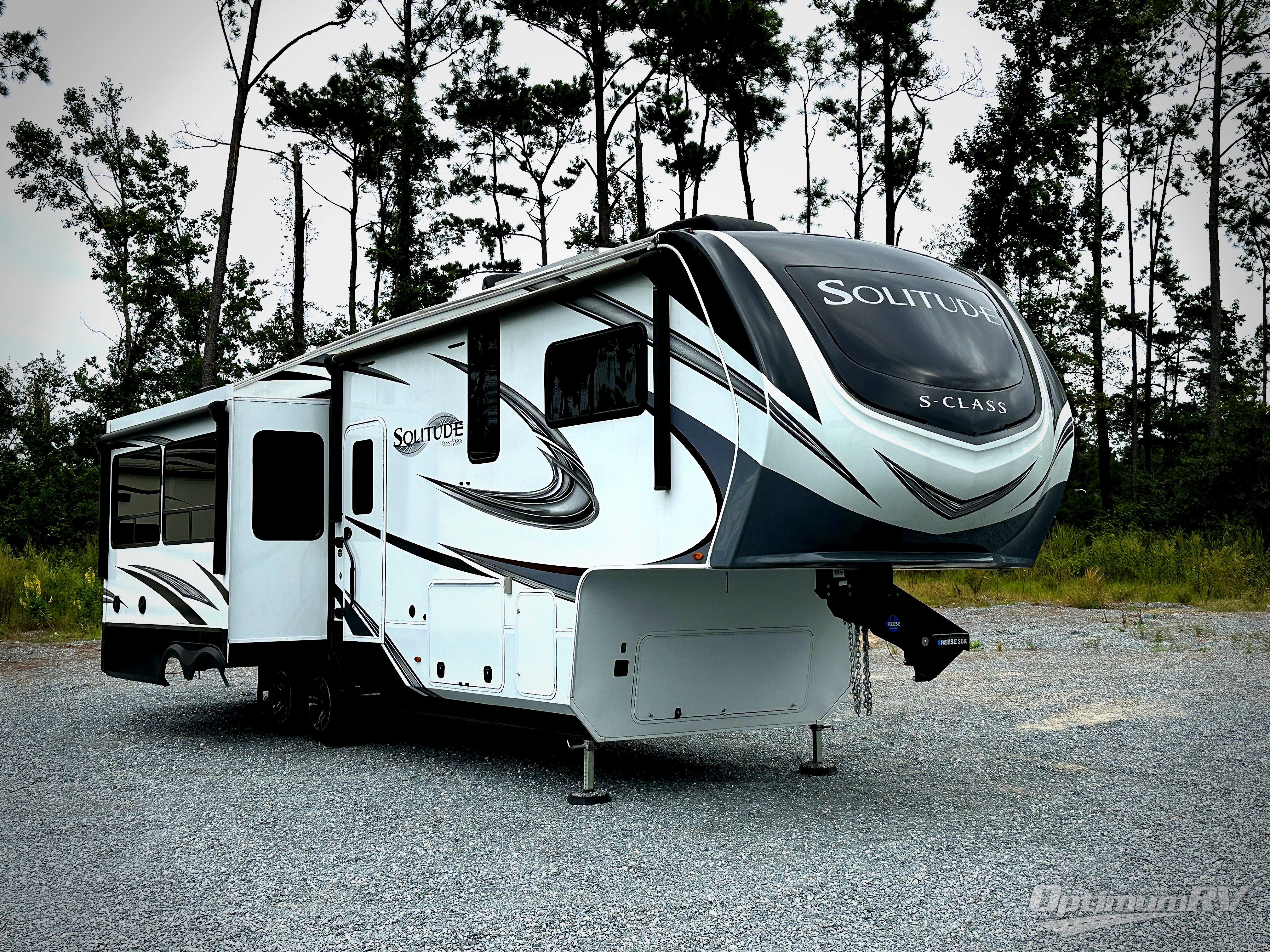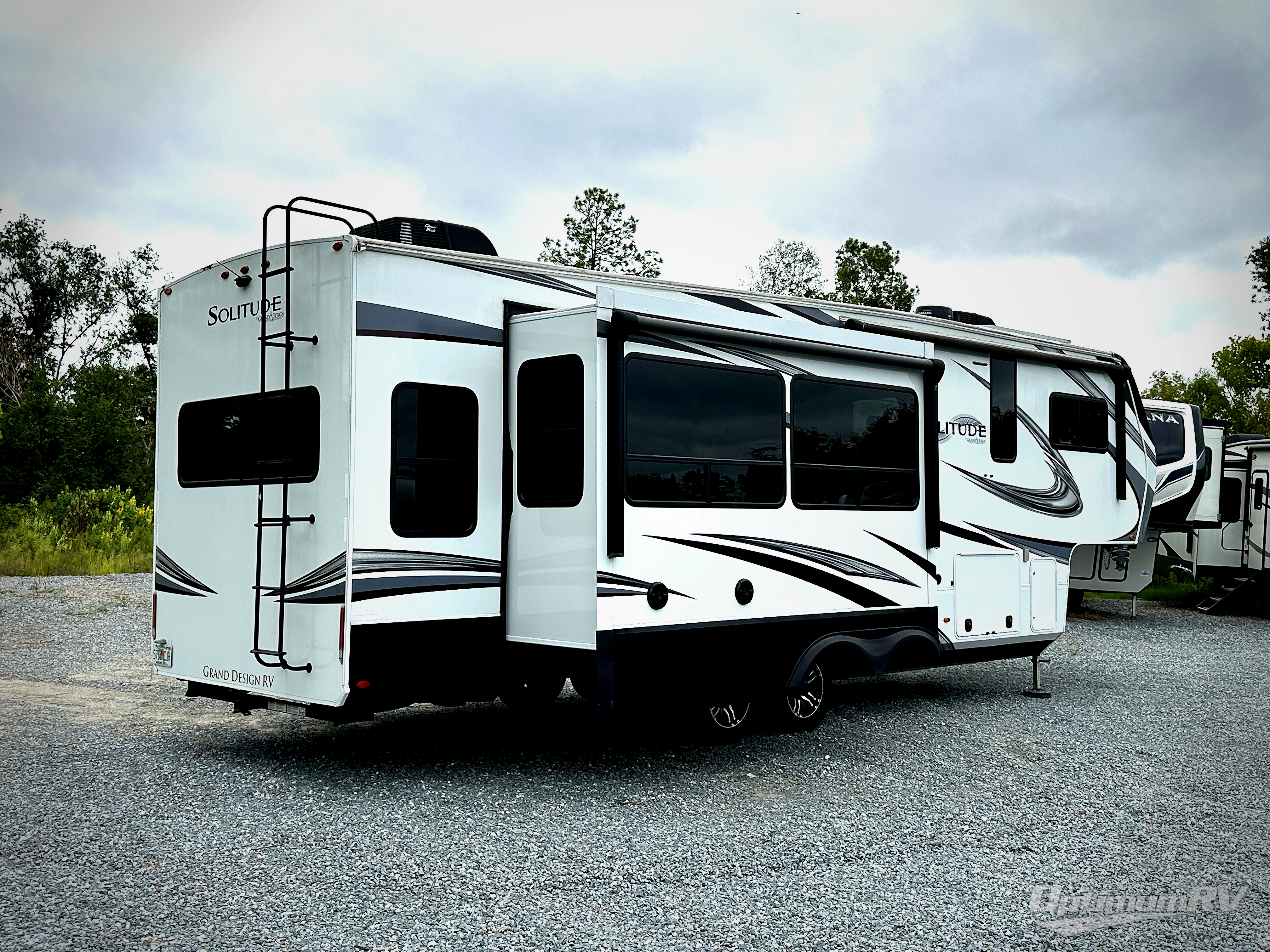 With any Solitude S-Class fifth wheel by Grand Design you will appreciate the Max Built Construction Package that features a 101" wide-body, gel coat exterior sidewalls, heavy-duty 7,000 lb. axles, plus many more durable construction materials. The self-adjusting brakes and the MORryde CRE3000 suspension system will provide a smooth towing experience, and each model includes heavy duty 17.5" H-rated tires with NitroFill. Some of the features you are sure to love are included in the Residential Living Package, like the solid surface countertops and sink covers, the hardwood cabinet doors, the night stands with USB ports, and the Rockford Fosgate stereo entertainment system with HDMI and App controls. These fifth wheels are extended-stay approved thanks to the Weather-Tek Package with a 35,000 BTU high-capacity furnace, the Stealth A/C system, and many high-end residential finishes to make you feel like you taken home with you!