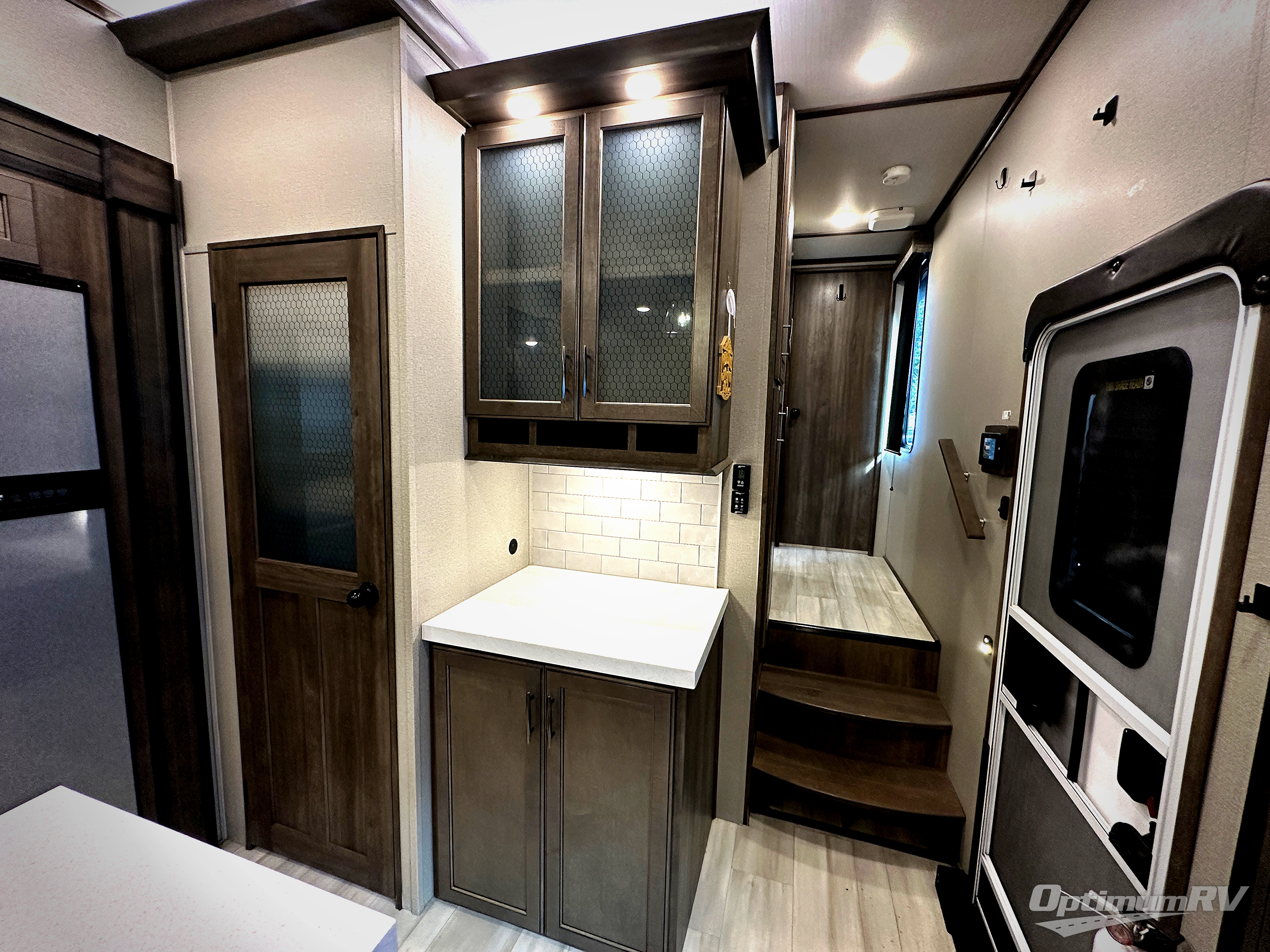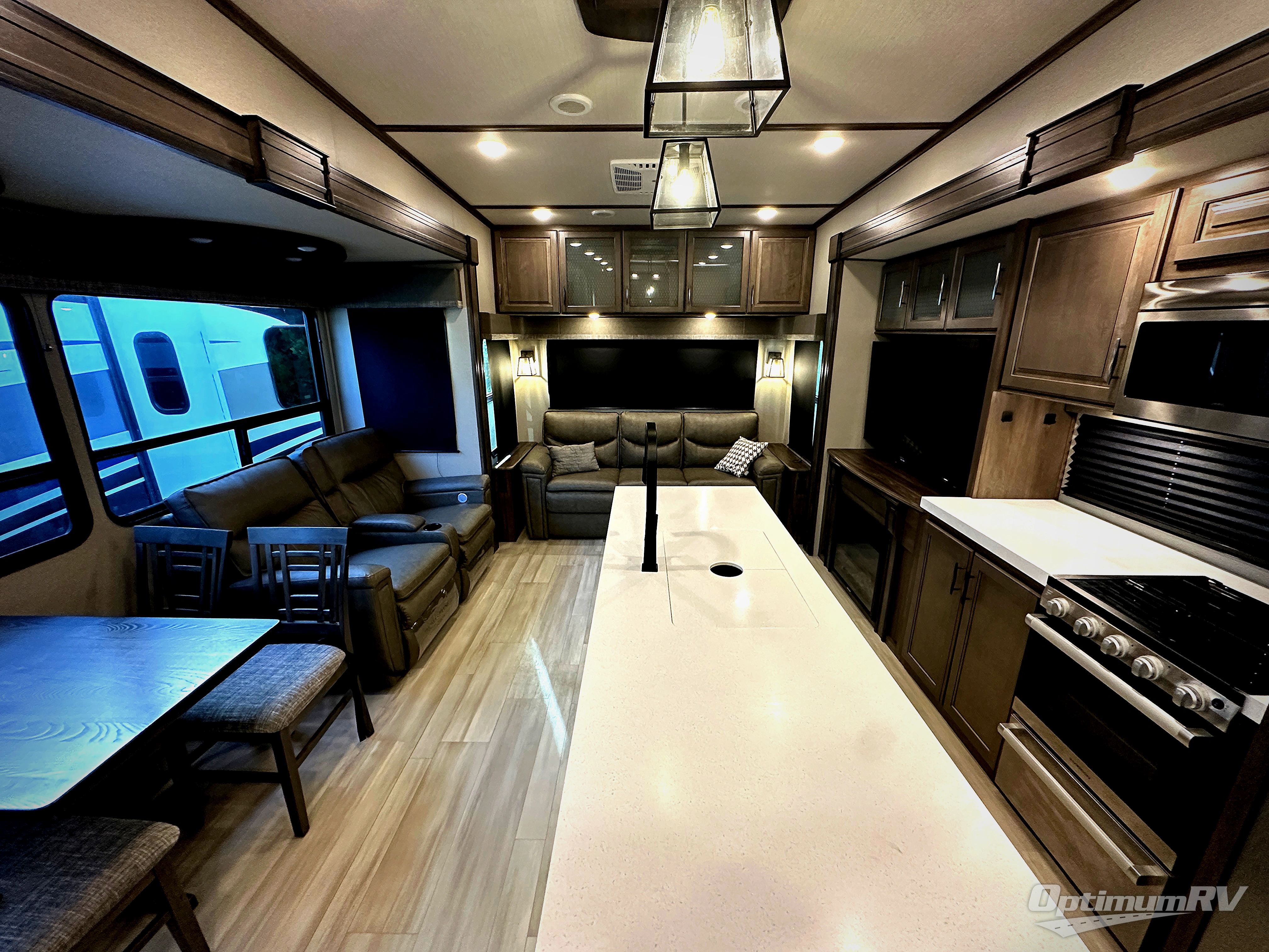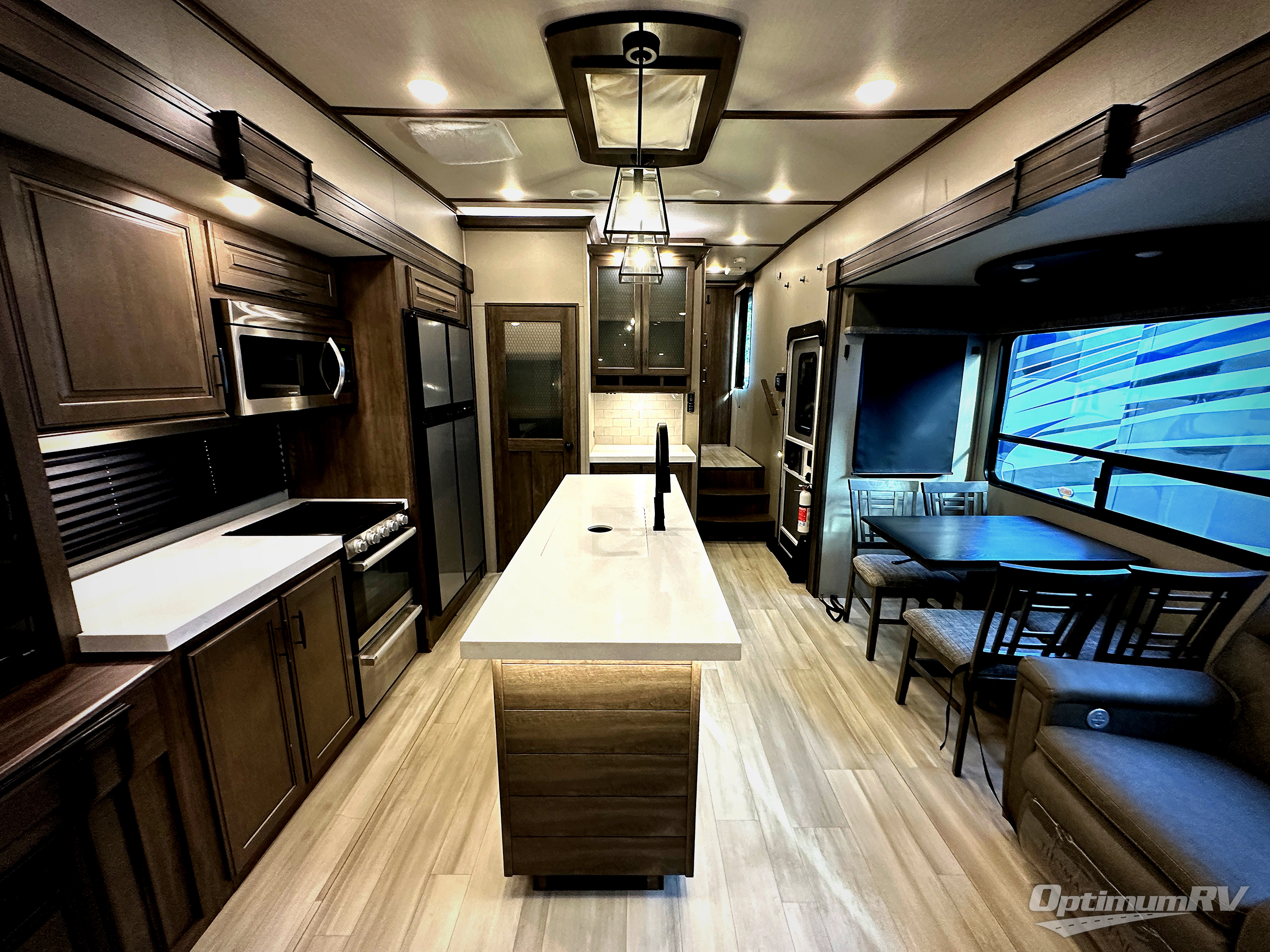 With any Solitude S-Class fifth wheel by Grand Design you will appreciate the Max Built Construction Package that features a 101" wide-body, gel coat exterior sidewalls, heavy-duty 7,000 lb. axles, plus many more durable construction materials. The self-adjusting brakes and the MORryde CRE3000 suspension system will provide a smooth towing experience, and each model includes heavy duty 17.5" H-rated tires with NitroFill. Some of the features you are sure to love are included in the Residential Living Package, like the solid surface countertops and sink covers, the hardwood cabinet doors, the night stands with USB ports, and the Rockford Fosgate stereo entertainment system with HDMI and App controls. These fifth wheels are extended-stay approved thanks to the Weather-Tek Package with a 35,000 BTU high-capacity furnace, the Stealth A/C system, and many high-end residential finishes to make you feel like you taken home with you!