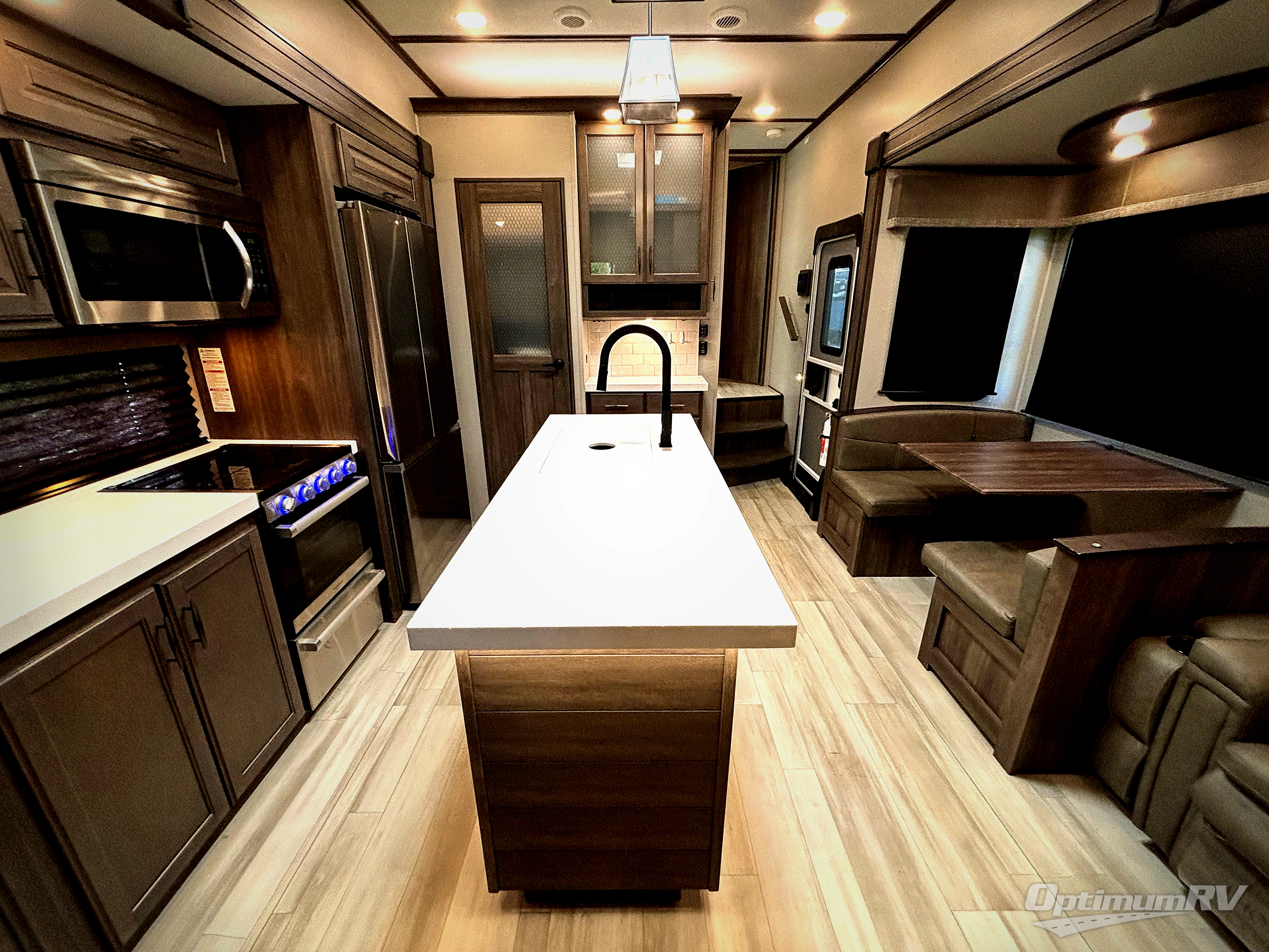 With any Solitude S-Class fifth wheel by Grand Design you will appreciate the Max Built Construction Package that features a 101" wide-body, gel coat exterior sidewalls, heavy-duty 7,000 lb. axles, plus many more durable construction materials. The self-adjusting brakes and the MORryde CRE3000 suspension system will provide a smooth towing experience, and each model includes heavy duty 17.5" H-rated tires with NitroFill. Some of the features you are sure to love are included in the Residential Living Package, like the solid surface countertops and sink covers, the hardwood cabinet doors, the night stands with USB ports, and the Rockford Fosgate stereo entertainment system with HDMI and App controls. These fifth wheels are extended-stay approved thanks to the Weather-Tek Package with a 35,000 BTU high-capacity furnace, the Stealth A/C system, and many high-end residential finishes to make you feel like you taken home with you!