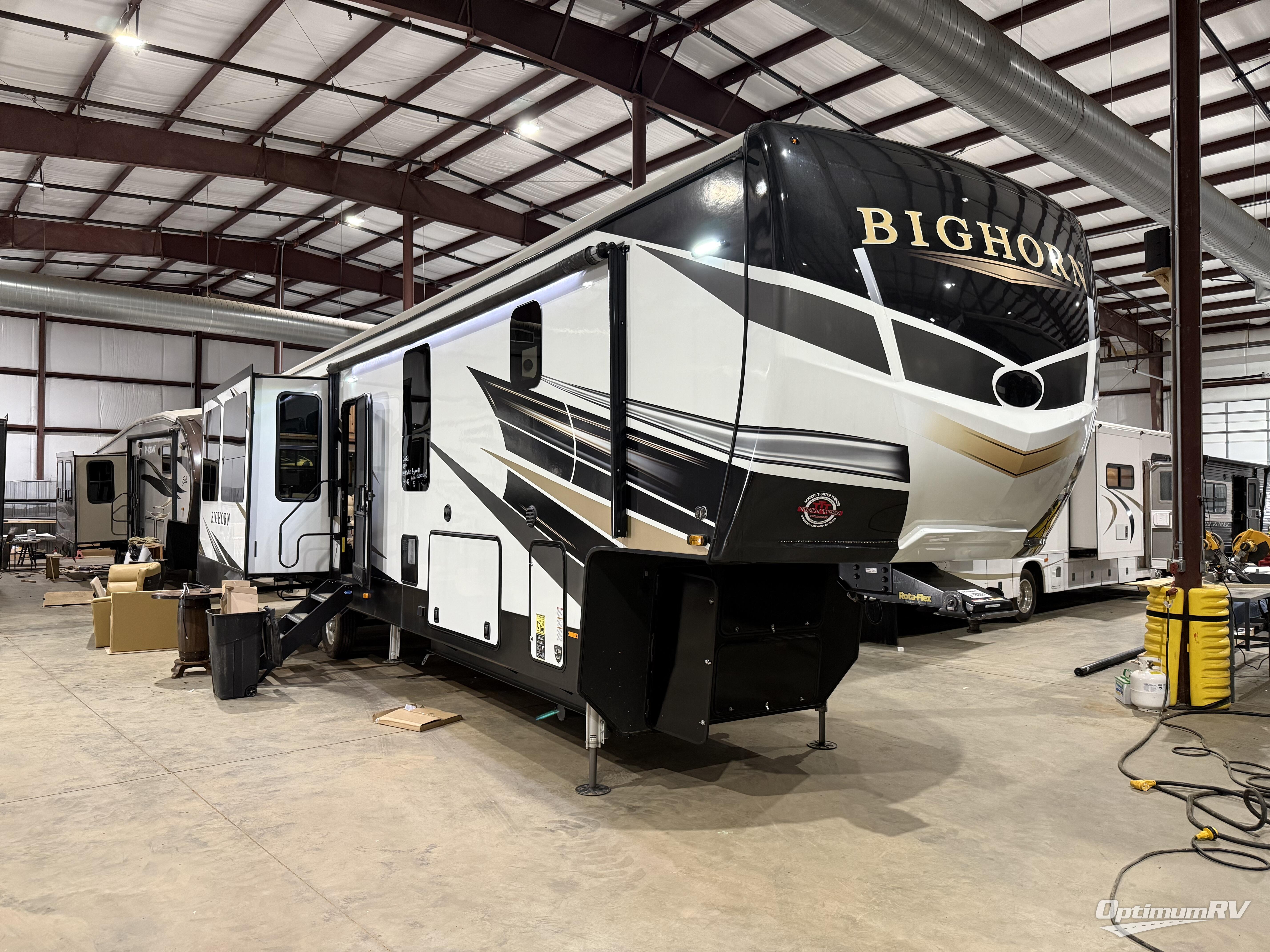 Every Heartland Bighorn fifth wheel will hold up to their reputation as an affordable yet sturdy RV! Each is built with a double-welded aircraft quality aluminum superstructure cage construction, in-house constructed laminated fiberglass sidewalls and 3" vacuum bonded laminated main and upper deck floors, plus seamless corrugated underbelly material. More construction features include the 6-point hydraulic landing gear and auto leveling system, color-coded Plumb-PLEX water lines, a heated and enclosed underbelly plus wrapped and insulated residential style heating ductwork to travel all year long. The interior offers spa baths with solid surface sinks, a marble-look shower, a removable shower head and a teak wood seat, plus 100% maple hardwood cabinetry and fascia, dual panoramic windows in the main slide, vinyl flooring on all main floors and woven flooring on slide floors, and residential features throughout.