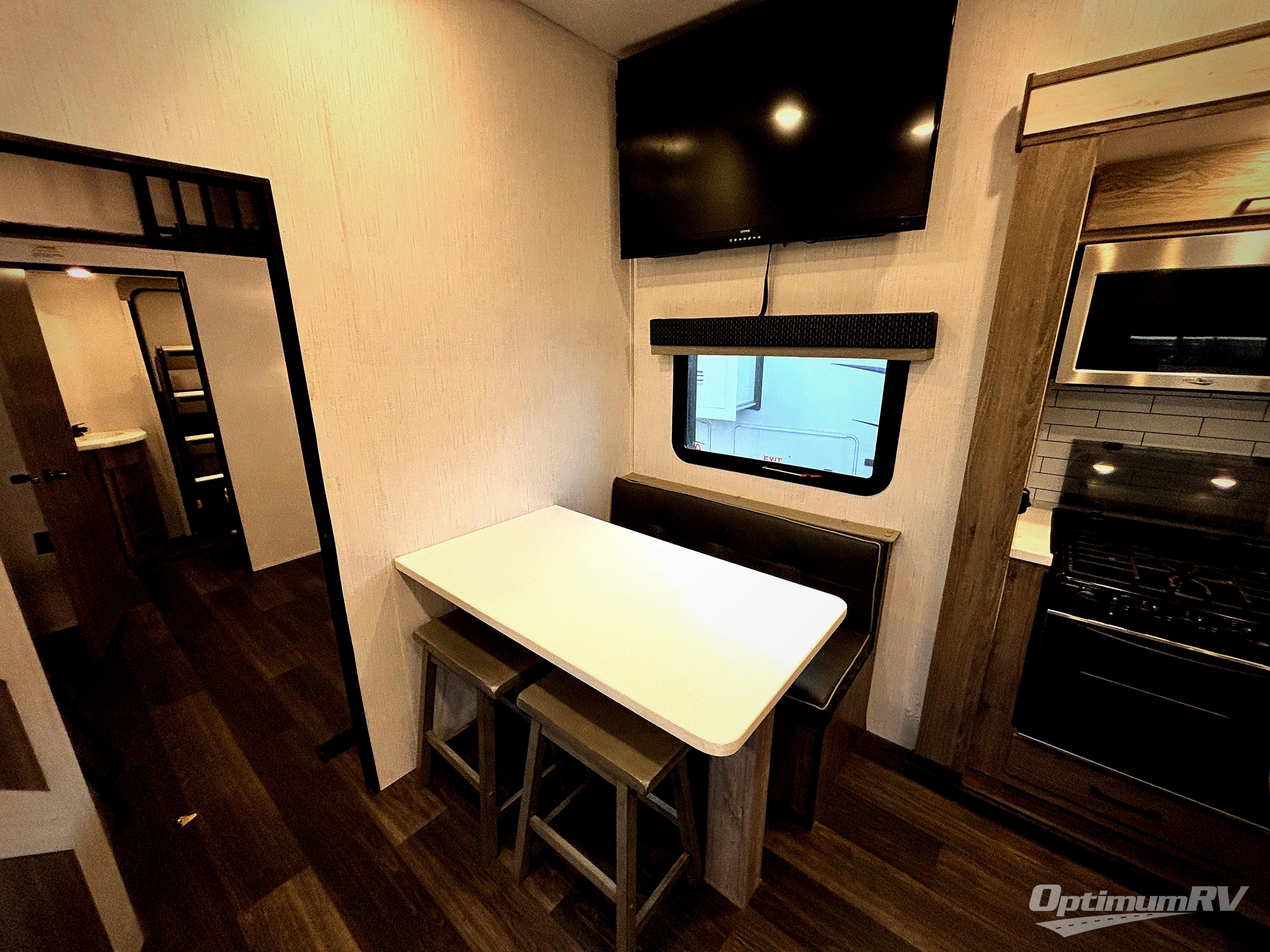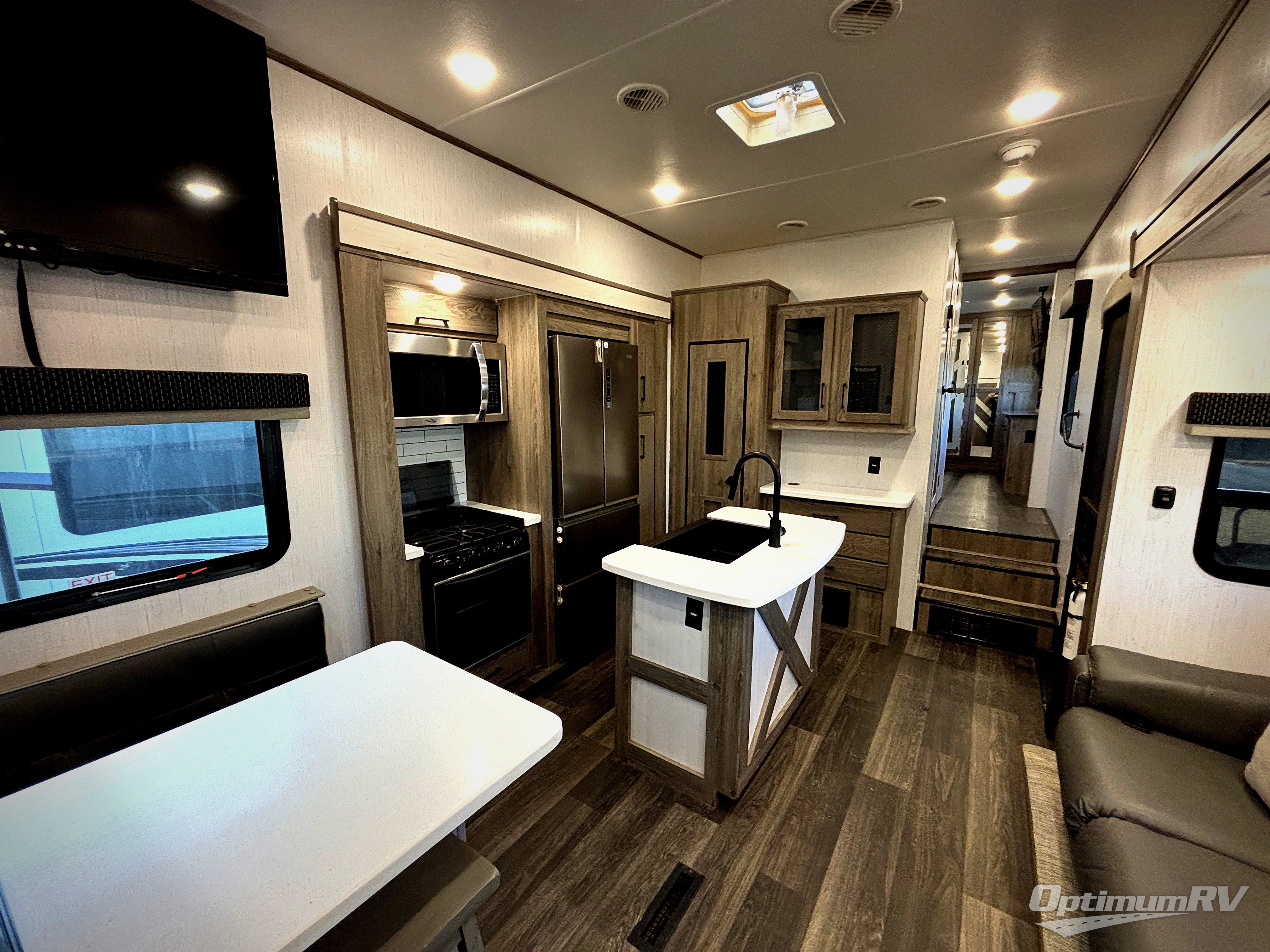 Come see how every one of these Heartland ElkRidge fifth wheels go the extra mile! They are built durable with double layer Azdel composite panels, TPO roofing materior with 4" aluminum wrapped edge, and a 10" powder coated steel I-beam frame. With the six point hydraulic level-up and one touch auto level capabilities, you can set your unit up 50% faster than with the electric levelers. You will not only have an easier tow with the double 7,000 lb. Dexter EZ lube axles and MORryde 3000 suspension, but also a more secure ride with the upgraded Rota Flex pin box. The vortex dual ducted A/C system (15K main and 13.5K secondary) is H-ducted for high efficiency output to keep you cool even on the hottest summer days. Enjoy tech friendly features like USB charge ports, wireless charging stations, and Winegard Air+ with satellite and WiFi prep, as well as a master chef kitchen with abundant kitchen storage. Come find the right one for you today!
