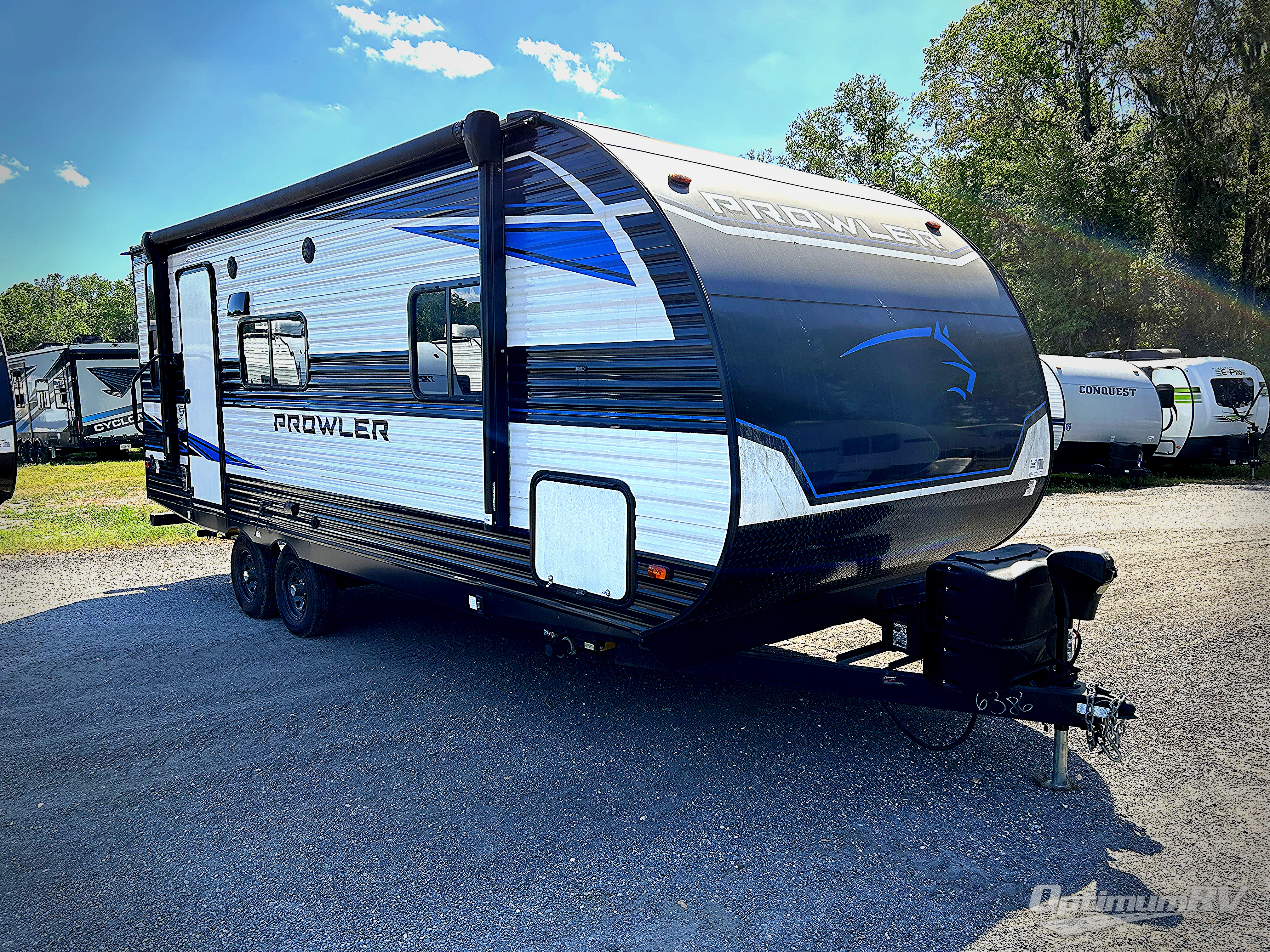 Get ready for comfortable and easy camping with the Prowler travel trailers by Heartland. These models feature durable construction with the performastructure aluminum front wall, the cambered structural steel I-beam frame, and the fully walkable roof. The MEGA bright pass-through storage features 52 cu. ft. of exterior storage with mega sized access doors, LED lights, and a finished interior to keep your gear secure. You'll fall in love with the at-home kitchen the includes Duralast countertops, a residential refrigerator, plus a stainless steel double bowl undermount sink for easy clean-up. These travel trailers also feature panoramic windows, an EZ clean interior, USB charging ports throughout, and many more comforts! Don't let the Prowler travel trailers slip away. Choose your favorite floorplan today!