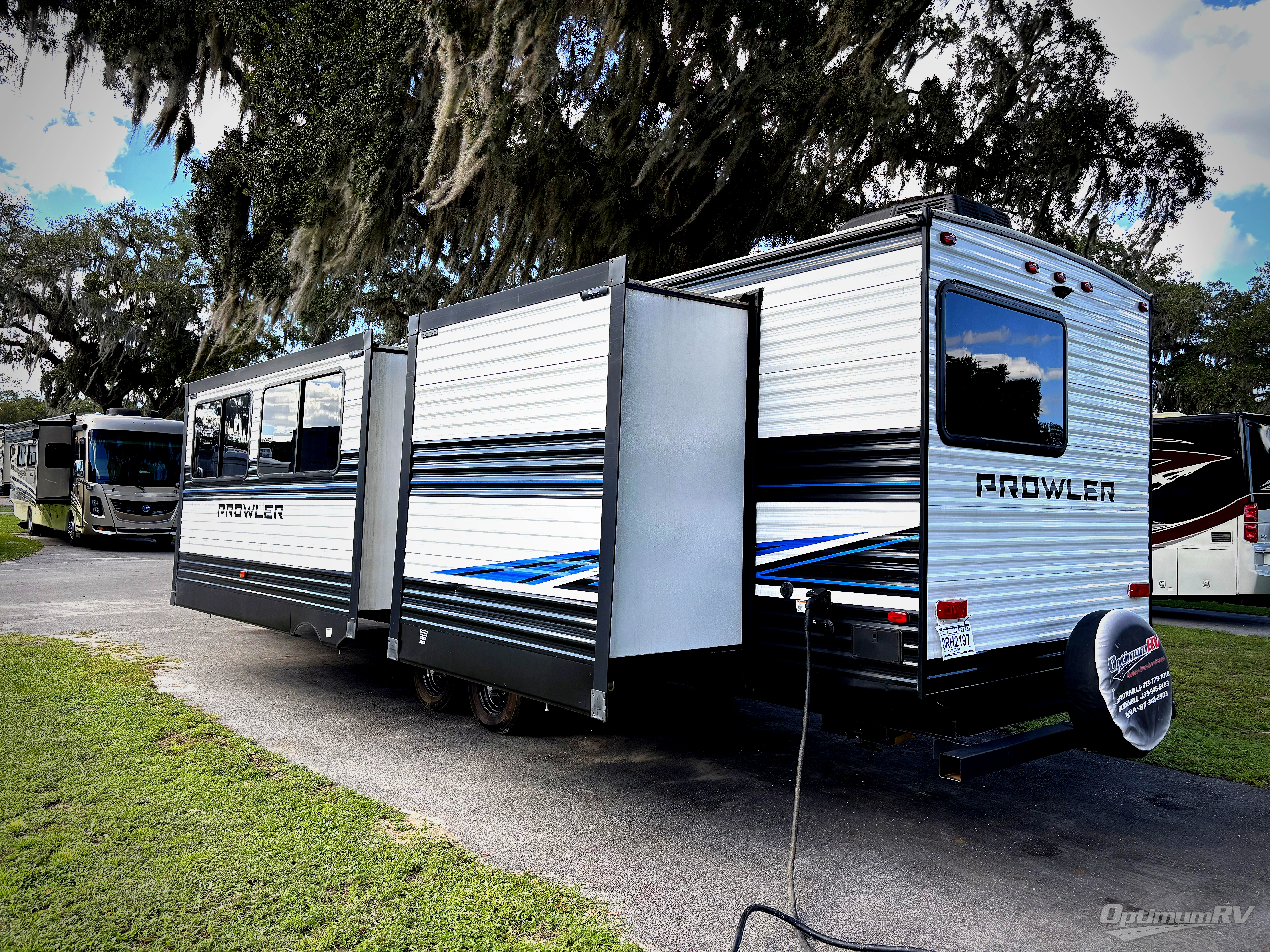 Get ready for comfortable and easy camping with the Prowler travel trailers by Heartland. These models feature durable construction with the performastructure aluminum front wall, the cambered structural steel I-beam frame, and the fully walkable roof. The MEGA bright pass-through storage features 52 cu. ft. of exterior storage with mega sized access doors, LED lights, and a finished interior to keep your gear secure. You'll fall in love with the at-home kitchen the includes Duralast countertops, a residential refrigerator, plus a stainless steel double bowl undermount sink for easy clean-up. These travel trailers also feature panoramic windows, an EZ clean interior, USB charging ports throughout, and many more comforts! Don't let the Prowler travel trailers slip away. Choose your favorite floorplan today!