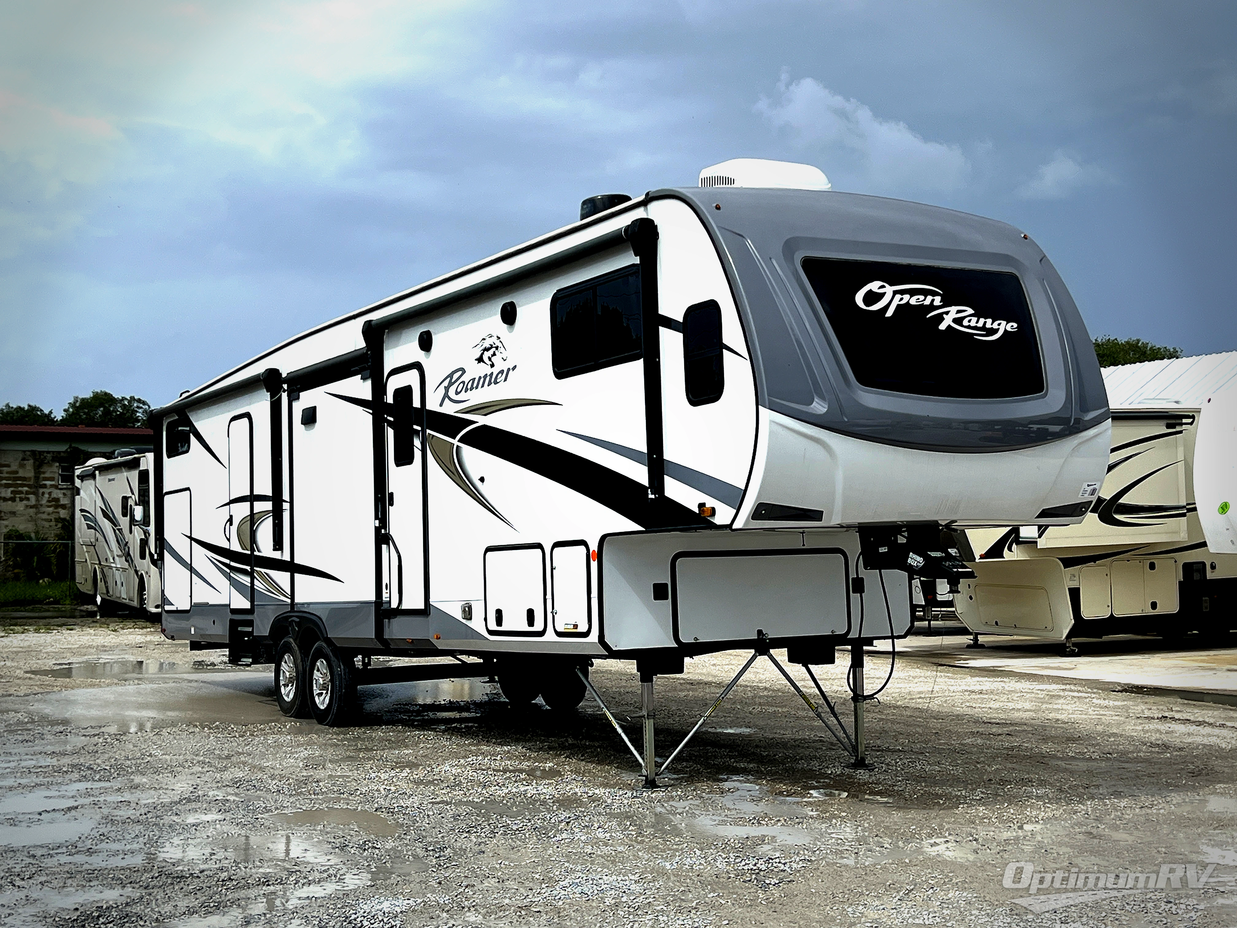 Each one of these Highland Ridge RV Roamer fifth wheels were built for the long haul! They have a TuffShell vacuum bonded laminated construction that is reinforced with heavy-duty fiberglass and welded aluminum frames, plus a PVC roofing membrane. Experience more walking around space with a 100" wide body frame and an ACCU-SLIDE slide system with a 42" deep four corner compression and are flush to the residential vinyl flooring to prevent tripping. The mandatory Four Season package lets you camp all year round with a heated and enclosed underbelly, a high performance furnace, and a R-9 block foam insulation in the sidewalls. You can control your unit at the touch of a finger with the TravelLINK smart RV system that has Bluetooth control of the awnings, lighting, slides, heating, cooling, and auto-levelers. Come find the right one for you today!