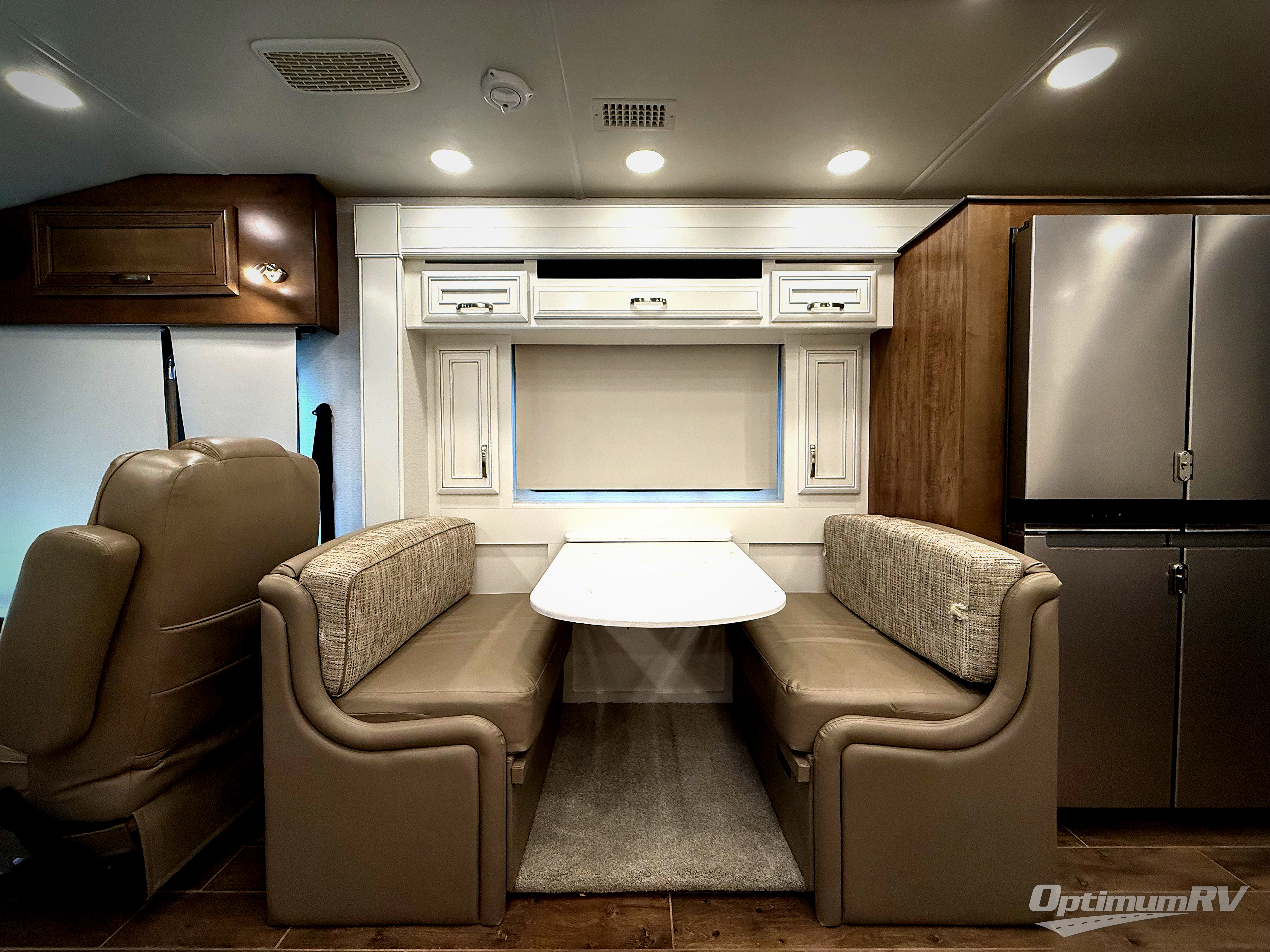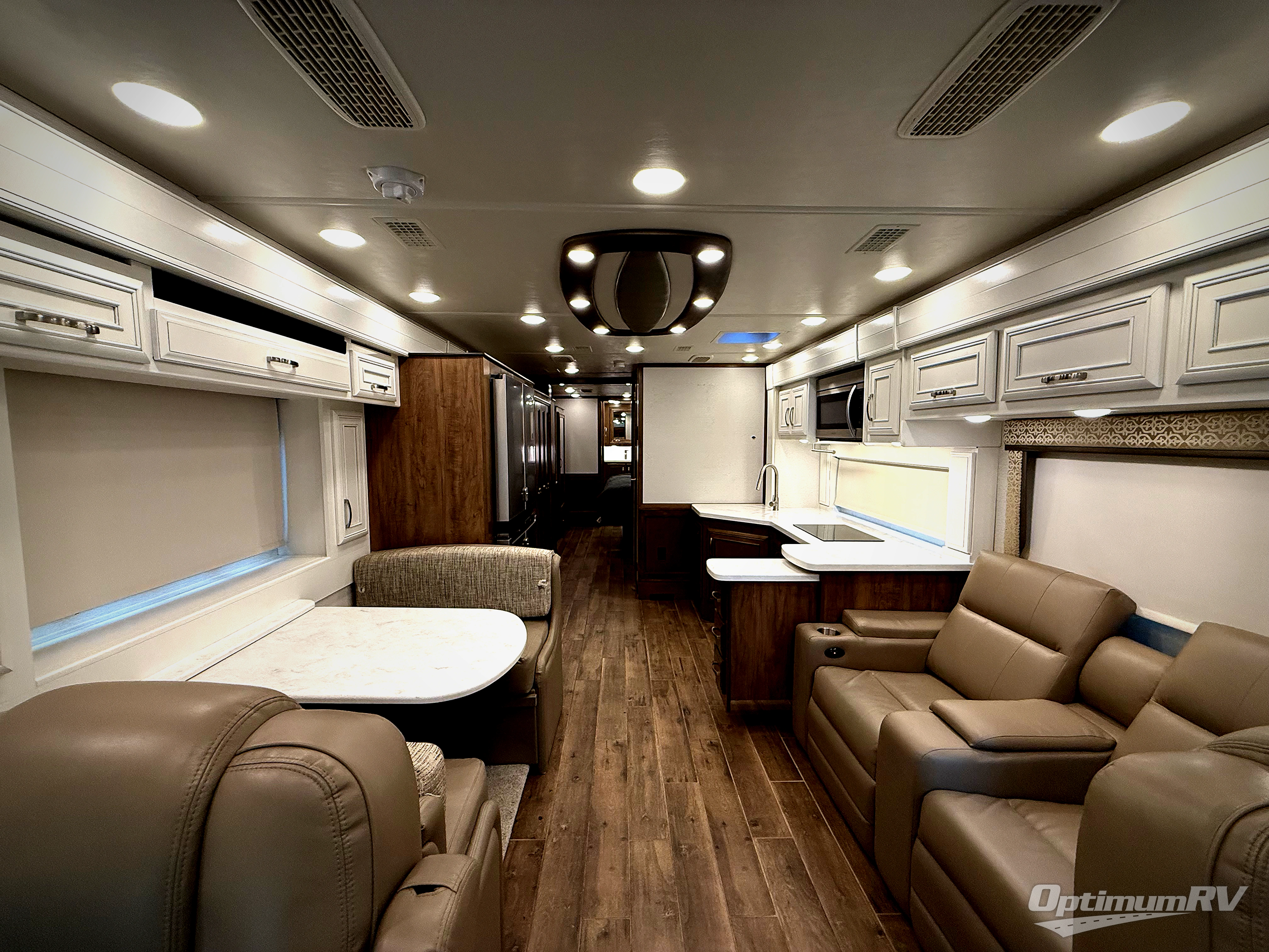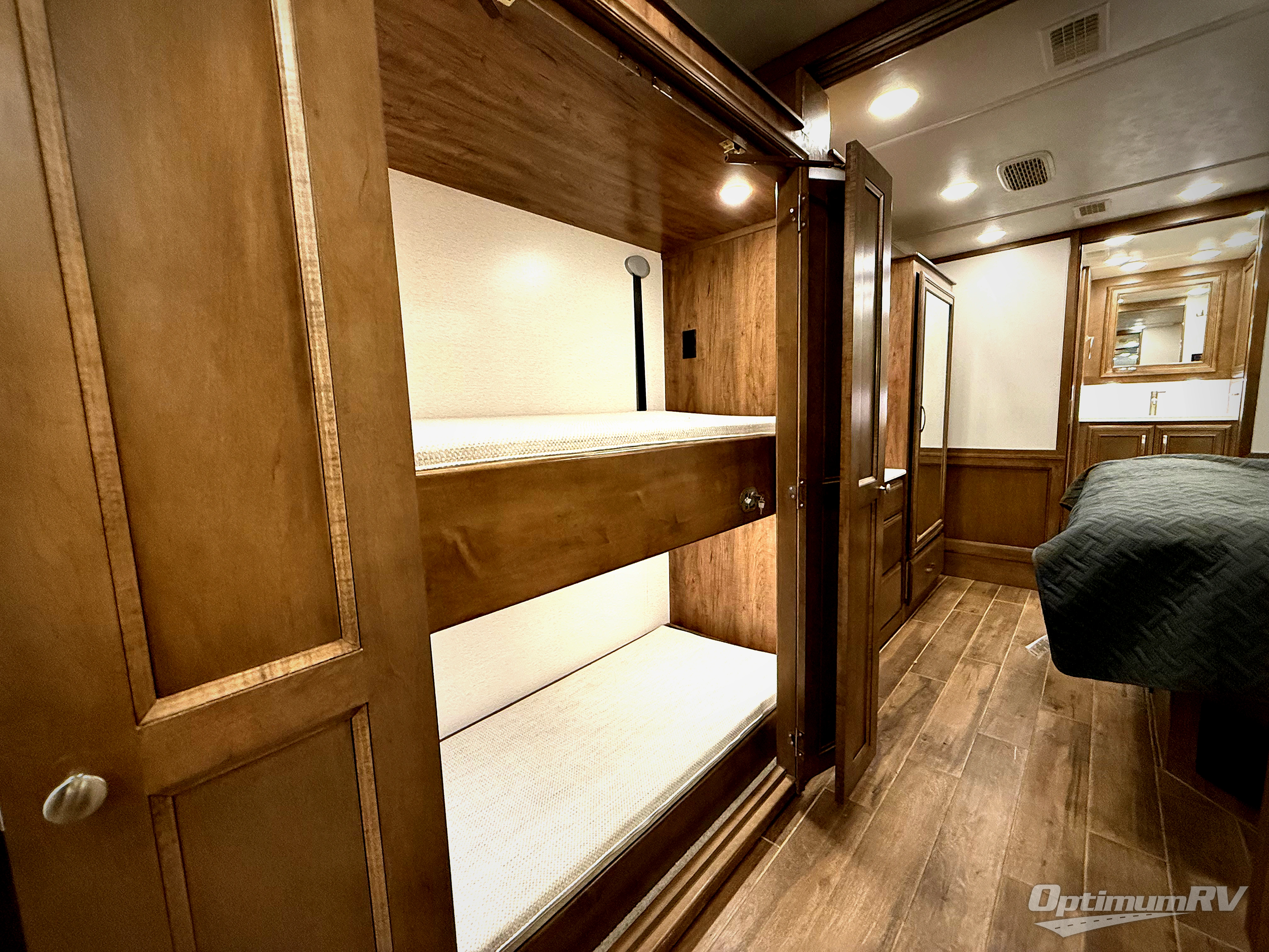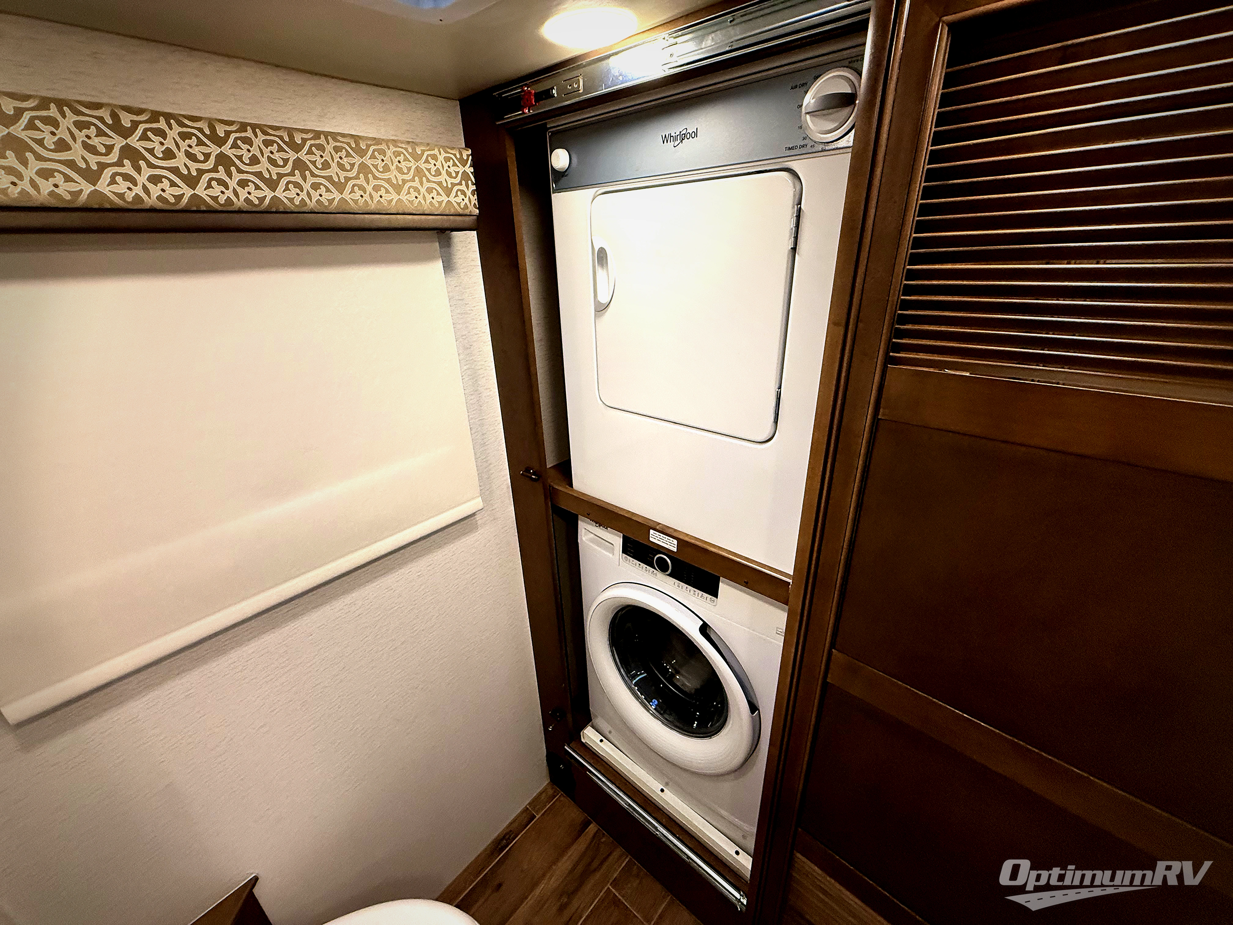 This motorhome is the ultimate family-friendly coach, so come take a look! The grandkids are sure to love the power bunk beds, and the half bath is right across from the bunks for easy nighttime use. You and your spouse will have a master bedroom with a walk-around king bed with a power lift and your own 32" TV. The full rear bath even includes a Whirlpool stacked washer and dryer that will make full-time RV living easier than ever. While dinner is being made on the induction cooktop, the kids can watch a show on the 50" TV lift while relaxing on the tri-fold sofa, or they can play a game at the expandable booth dinette. The interior is packed with convenient features, but don't forget the exterior with its exterior entertainment center and Carefree power awning with LED lights!