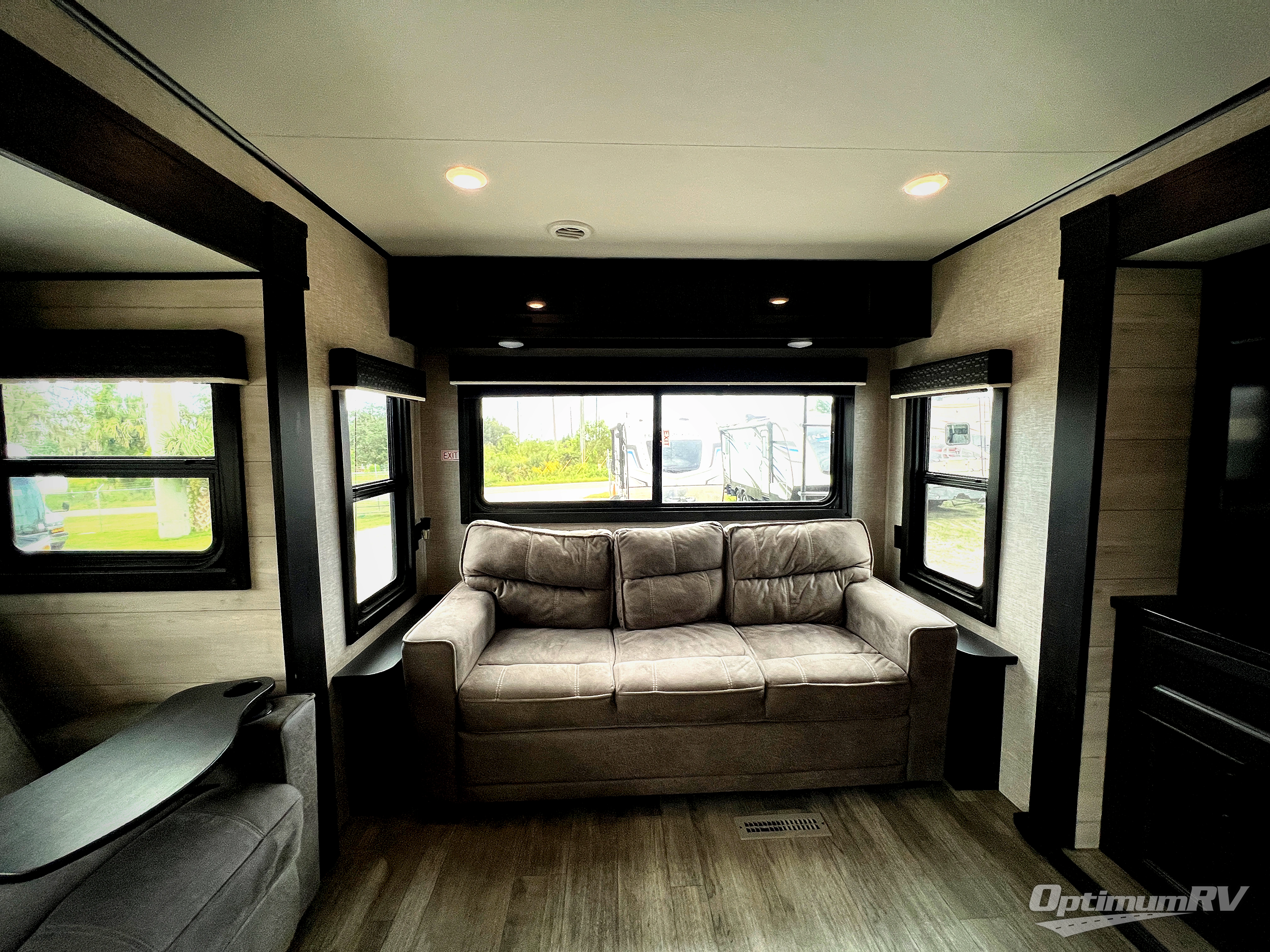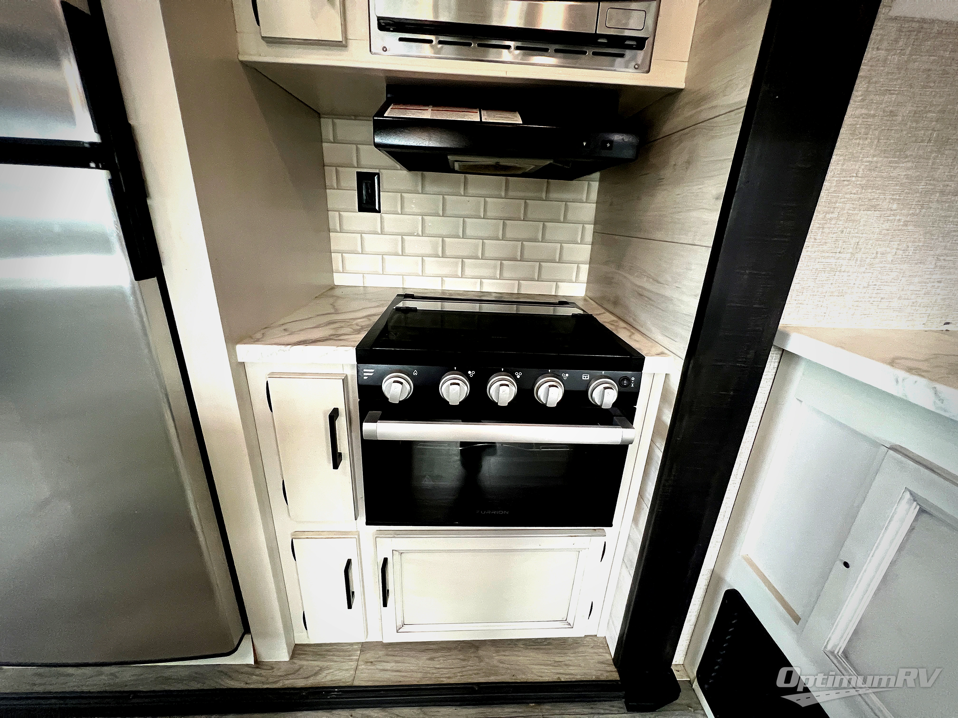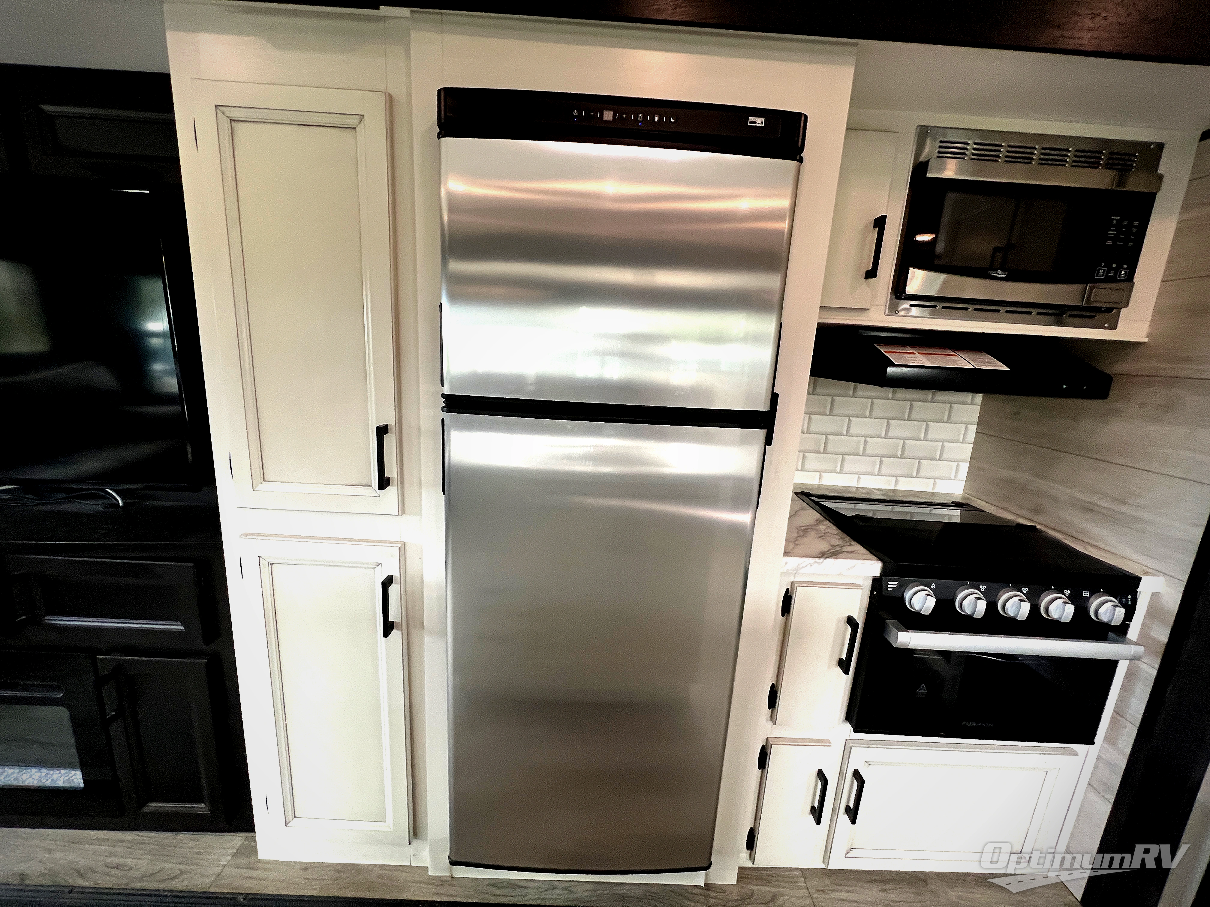 This Jay Flight travel trailer is very similar to model 34RLOK with just a few tweaks! The fireplace sits below the entertainment center, and both items are across from the theater seating. You'll also have a jackknife sofa right there so that others can join in on the relaxation, and the booth dinette is situated next to the theater seating so that it can also be used as seating during movie nights. A kitchen island adds function to the kitchen, and it also serves as a great dishwashing station. You can cook just about anything on the three-burner range, and the pantry will help you store your snacks. You'll also be able to access the dual-entry bathroom from the main hallway or the front bedroom.