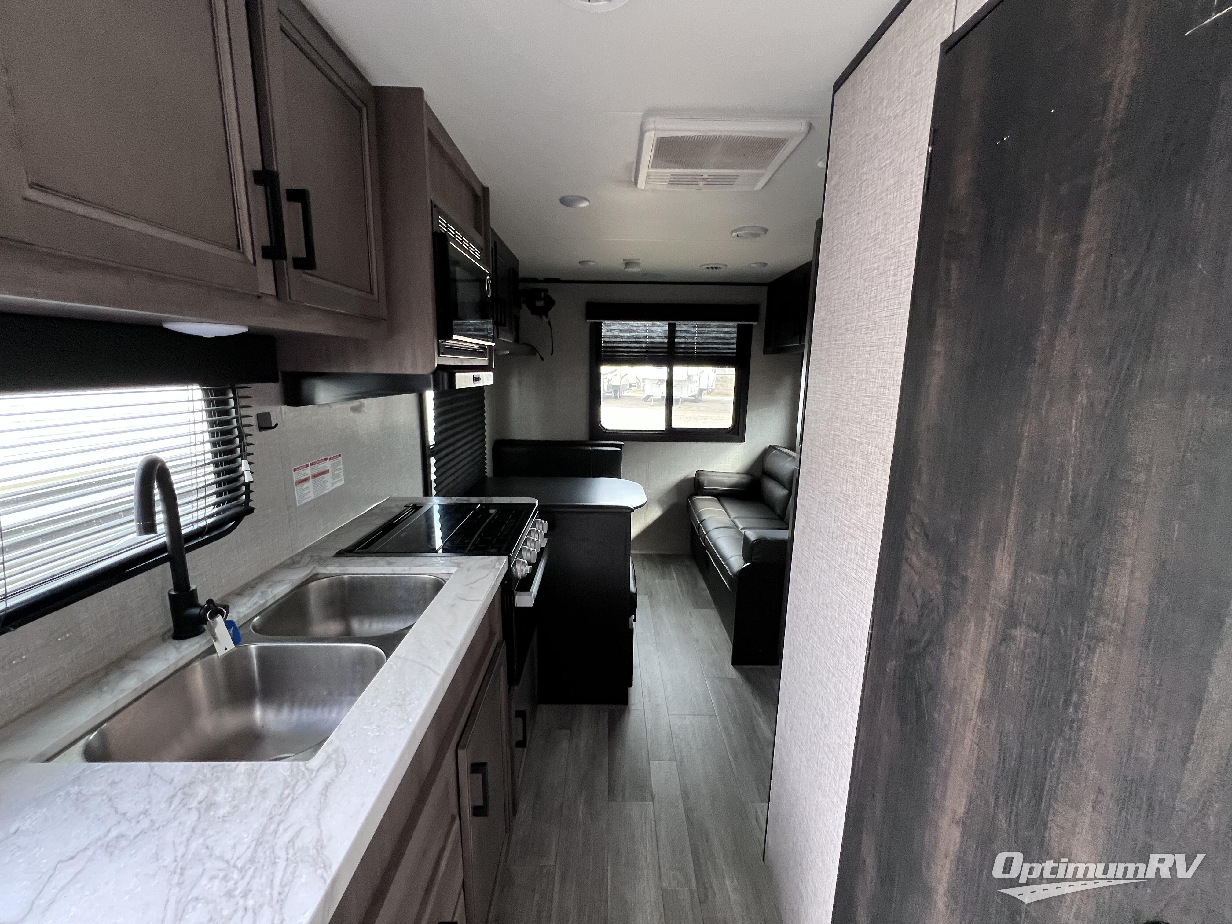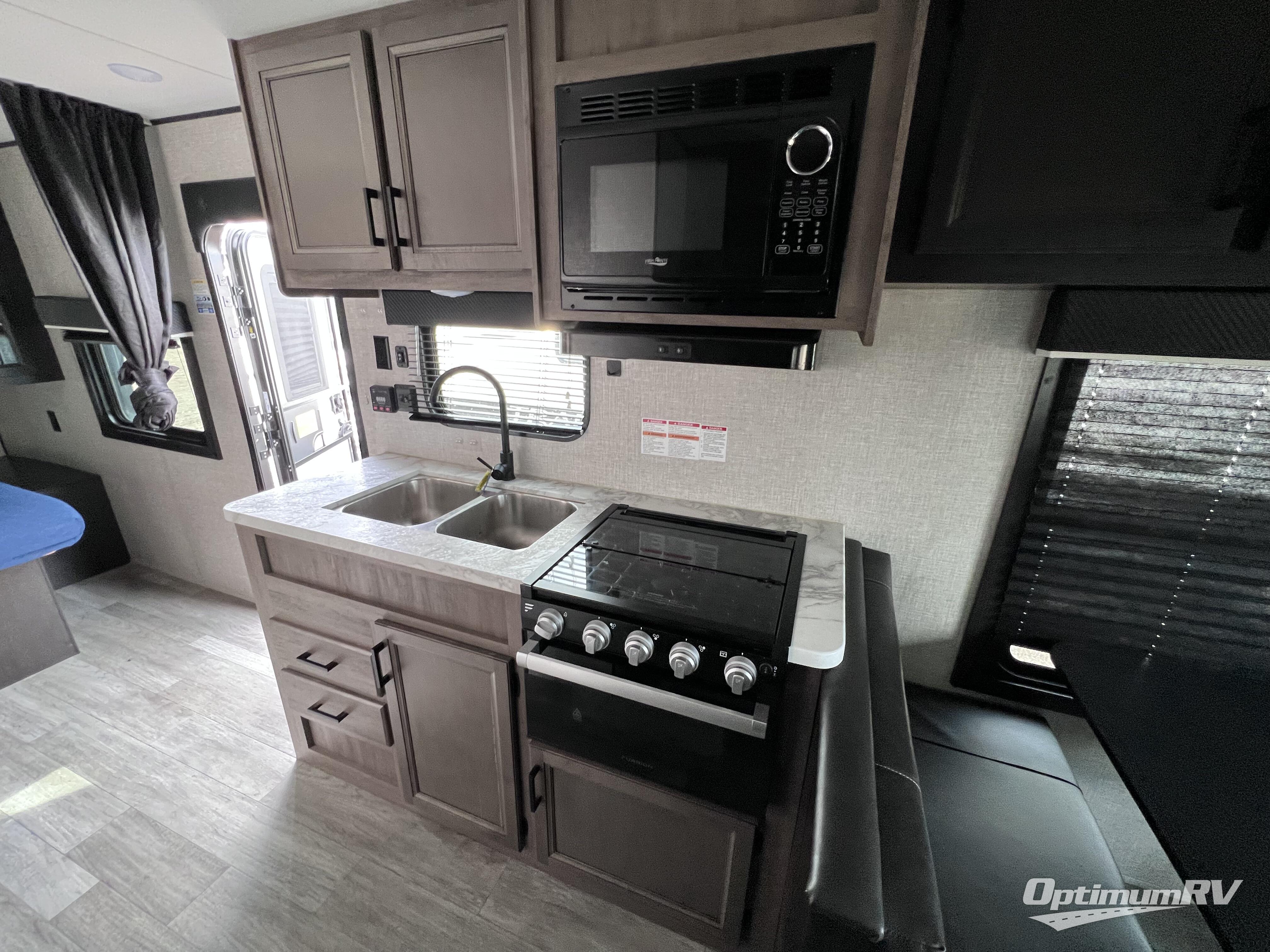 Looking for a couples trailer or a manageable RV that will sleep four when you utilize the furniture as sleeping space? Look no further than this SLX 8 to find a queen bed up front for two, and the jack-knife sofa plus the booth dinette provide sleeping space for two more. The cook will enjoy making meals with everything nearby to keep everyone fed, plus the refrigerator and pantry offer food storage. Everyone can get cleaned up in the full bathroom either in the morning or before bedtime, and the bathroom will come in handy during those night time trips. The outside offers a 16' power awning to relax under as you plan your activities, and there is storage for camping games, charcoal and such along the exterior.