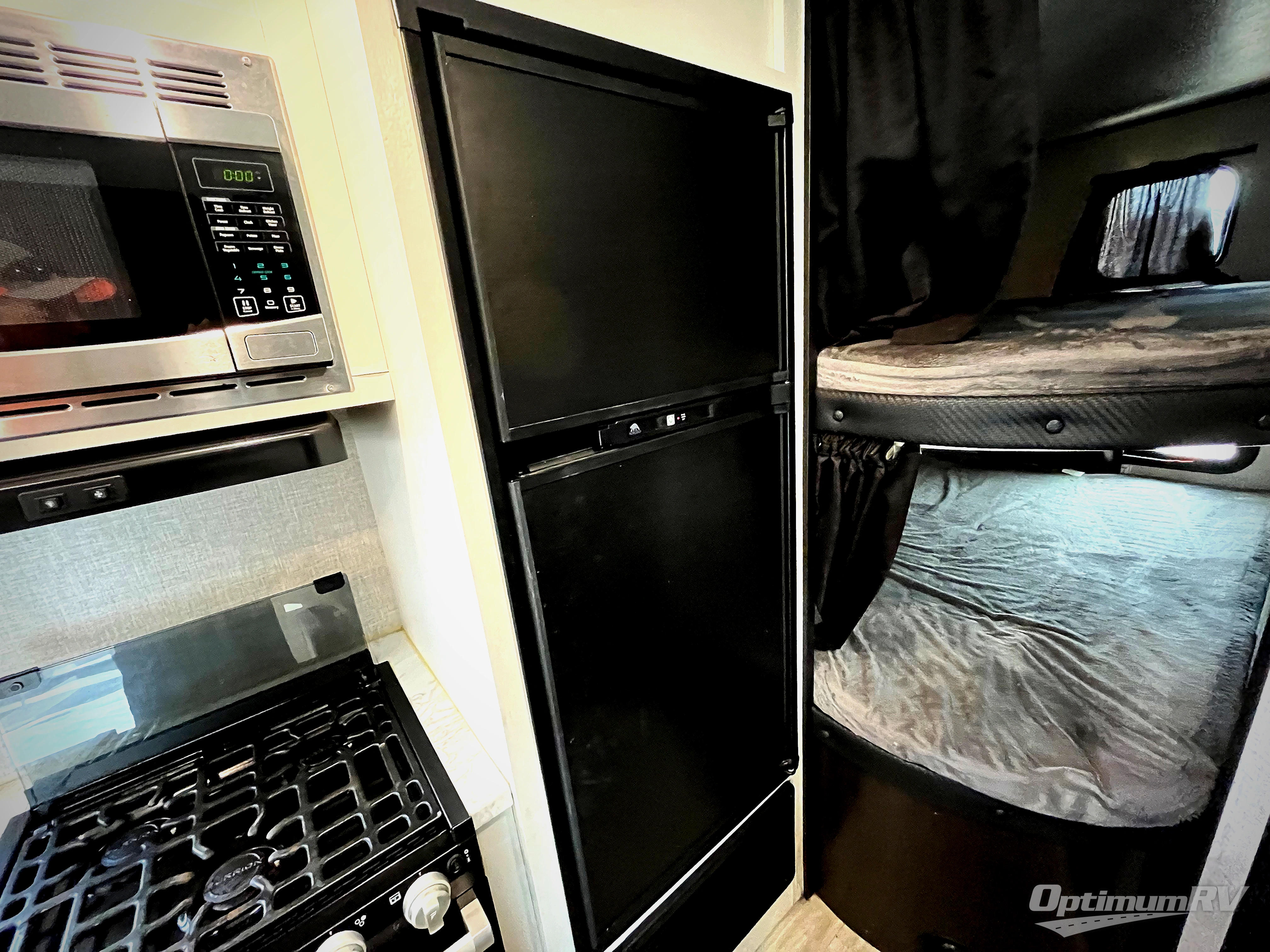 Get ready for family fun or a friend's weekend at the campgrounds in this trailer! This trailer offers full kitchen amenities including a pantry for snacks and such, plus a full rear corner bathroom for privacy and includes a shower. When you need a break, the semi-private bedroom up front offers a queen bed, dual wardrobes and a curtain to close, and the double size bunks offer a curtain to close as well. There is a 13' power awing with LED lights for you to enjoy this outdoor space into the night, plus exterior storage for your outdoor games and gear.