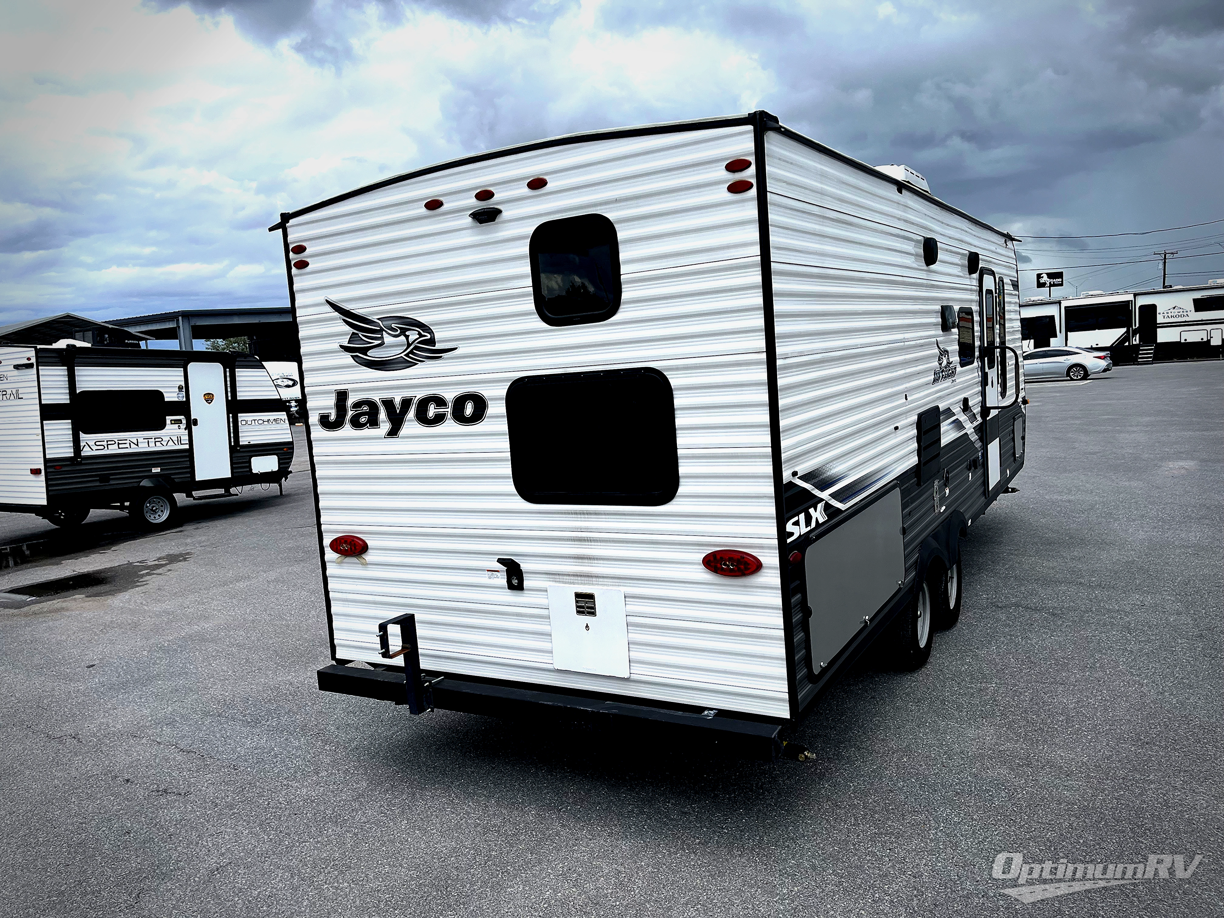 With any Jay Flight SLX 8 travel trailer by Jayco, you will have a durable foundation with l-Class cambered structural steel l-beams, a fully-integrated A-frame, seamless roof material and a Magnum Truss Roof System with plywood decking for a 50% stronger roof than any other in the industry. Also included are Goodyear Endurance tires made in the USA, and a front diamond plate to protect against road debris. Inside, you will love the fresh interior design, the solid hardwood cabinet doors, the 81-inch tall ceiling, the energy-saving LED lighting, and the storage. Whether you are looking for an RV for a small or large group, you will find a Jay Flight SLX 8 to fit your camping lifestyle!