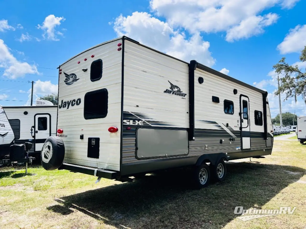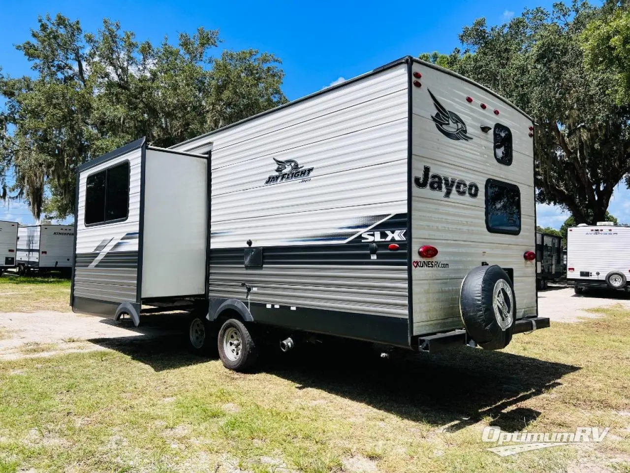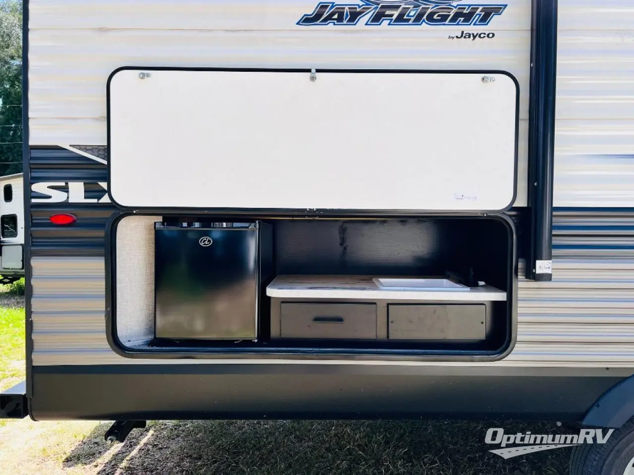 With any Jay Flight SLX 8 travel trailer by Jayco, you will have a durable foundation with l-Class cambered structural steel l-beams, a fully-integrated A-frame, seamless roof material and a Magnum Truss Roof System with plywood decking for a 50% stronger roof than any other in the industry. Also included are Goodyear Endurance tires made in the USA, and a front diamond plate to protect against road debris. Inside, you will love the fresh interior design, the solid hardwood cabinet doors, the 81-inch tall ceiling, the energy-saving LED lighting, and the storage. Whether you are looking for an RV for a small or large group, you will find a Jay Flight SLX 8 to fit your camping lifestyle!