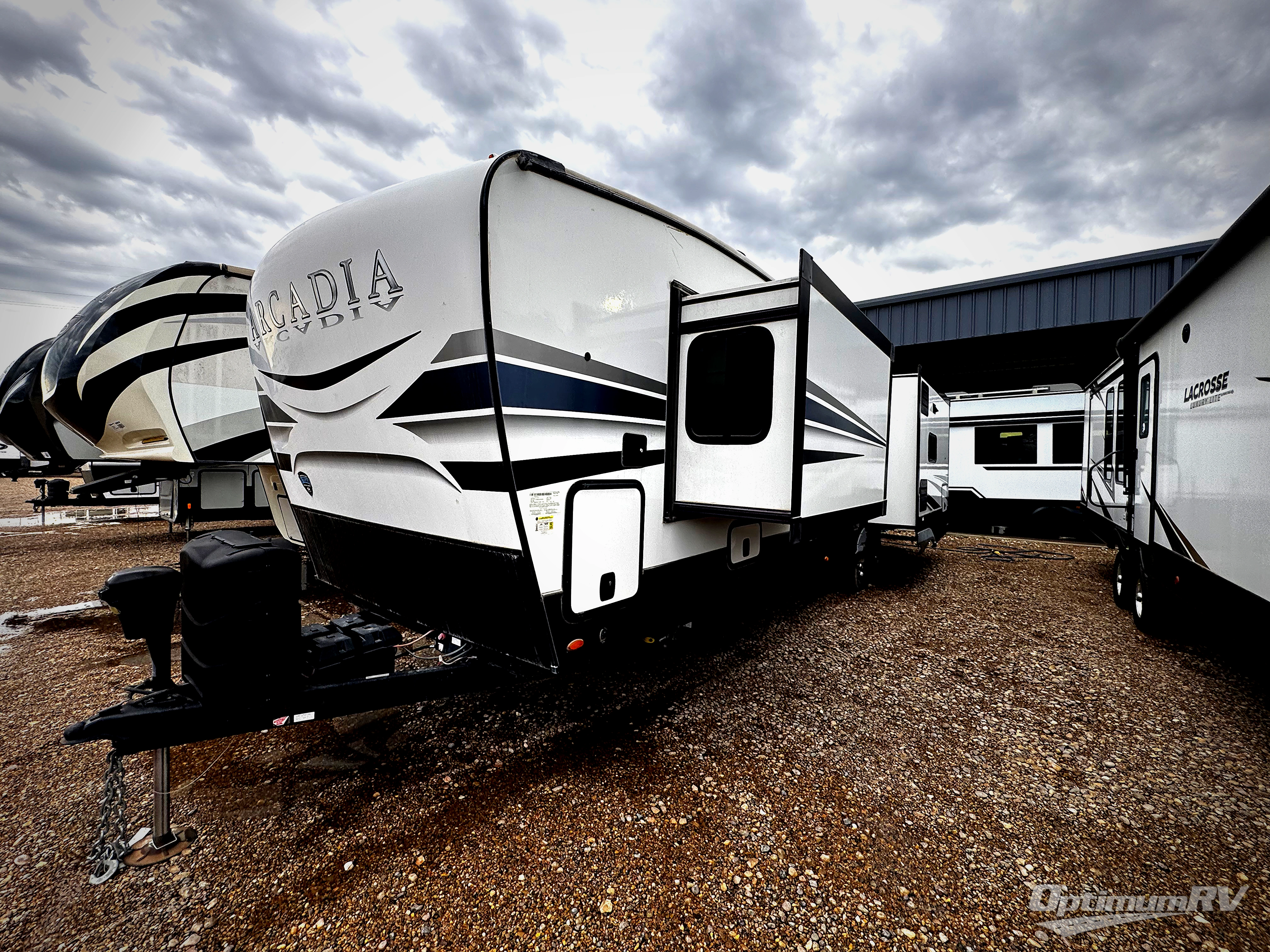 It's time to camp better with Keystone, and the Arcadia travel trailers and 3/4 ton fifth wheels allow you to do just that! There are many features that come standard you are sure to appreciate, like the Blade high-performance air flow system, the Tru-Fit slide construction, and the durable Hyper Deck flooring. Each model features the Curt Performance Package with HD axles with reinforced axle wall tube, HD forward self-adjusting brake assembly, a rubberized equalization suspension system, and more to create a smooth towing experience. You will enjoy an HD flat screen TV included with each model, plus there is a Winegard AIR 360 amplified omni-directional antenna and satellite and cable prep on all TV's to keep you entertained throughout your camping trips. The Arcadia kitchen features custom cabinetry with solid wood and painted cabinet doors, oversized drawers for maximum storage space, a stainless steel farmhouse style sink, plus many more comforts.