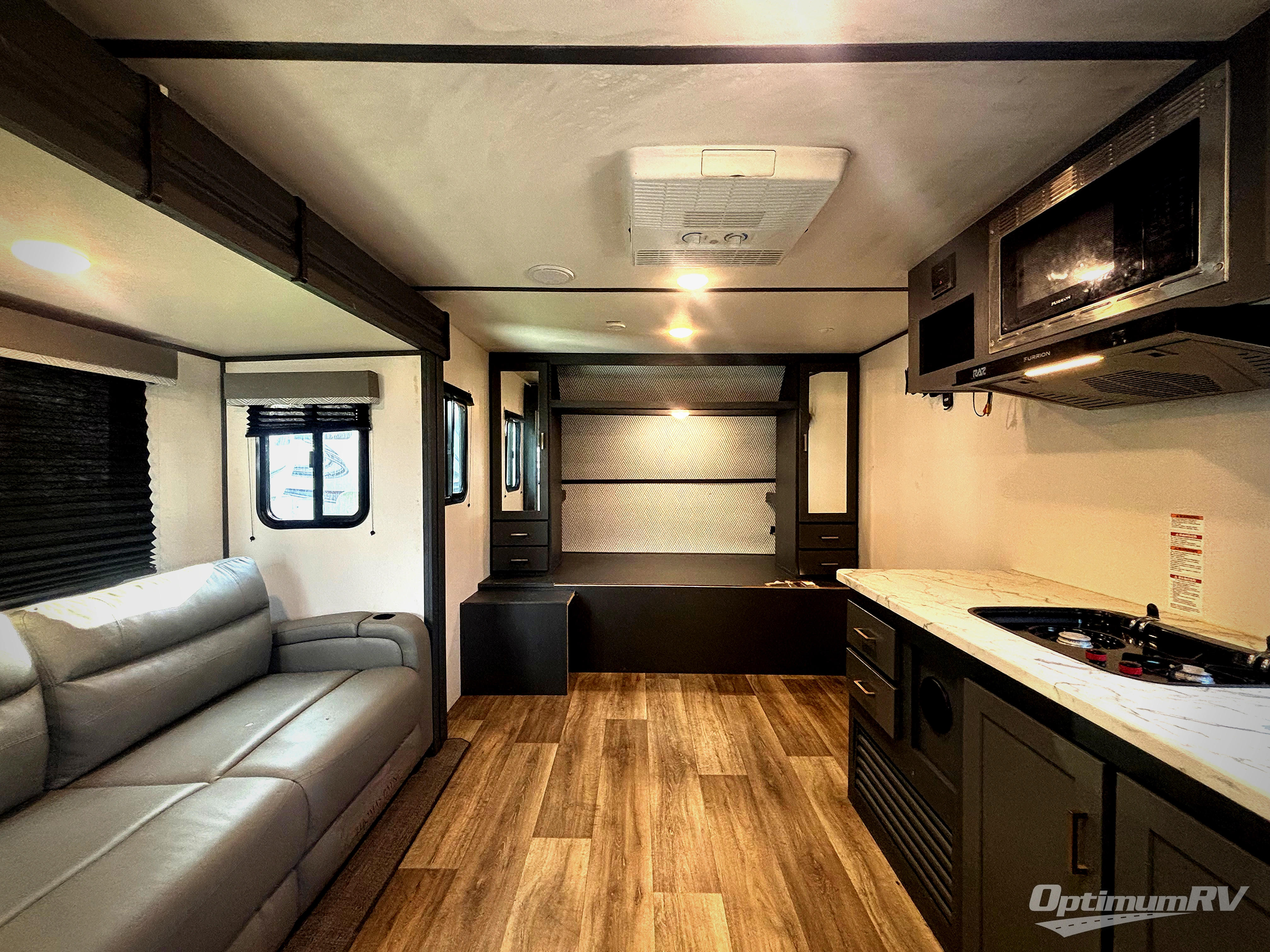 Each Bullet Crossfire by Keystone is constructed with a NORCO HSLA steel/automotive deposition coated frame assembled with huck bolts for durability. The one-piece ABS enclosed underbelly will help extend your camping season, and the Dexter E-Z Lube axles will provide smooth towing from home to campground. Setting up your trailer will be a breeze with the electric tongue jack and four electric stabilizer jacks, and there is an electric awning with adjustable arms and LED lighting for an inviting outdoor living space. The affordable, high-quality RV solar energy system, SolarFlex 200 comes standard with each model and will allow you to go off-grid when you want. Inside, you'll find fabric night shades, Beauflor with woven flooring in the slides, full depth cabinets with full extension drawer guides, and many more comforts.