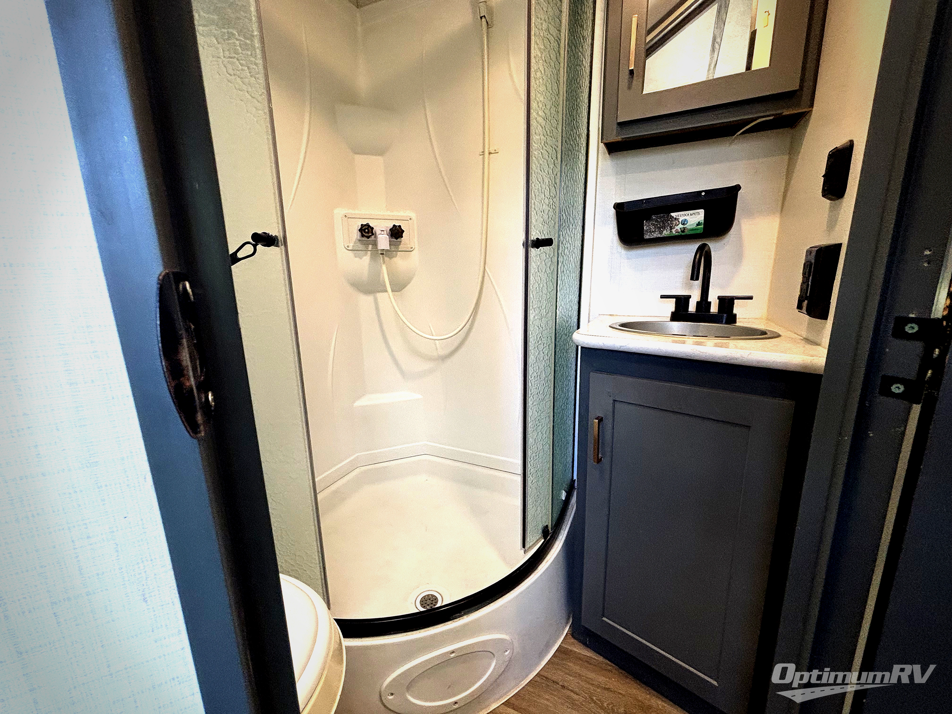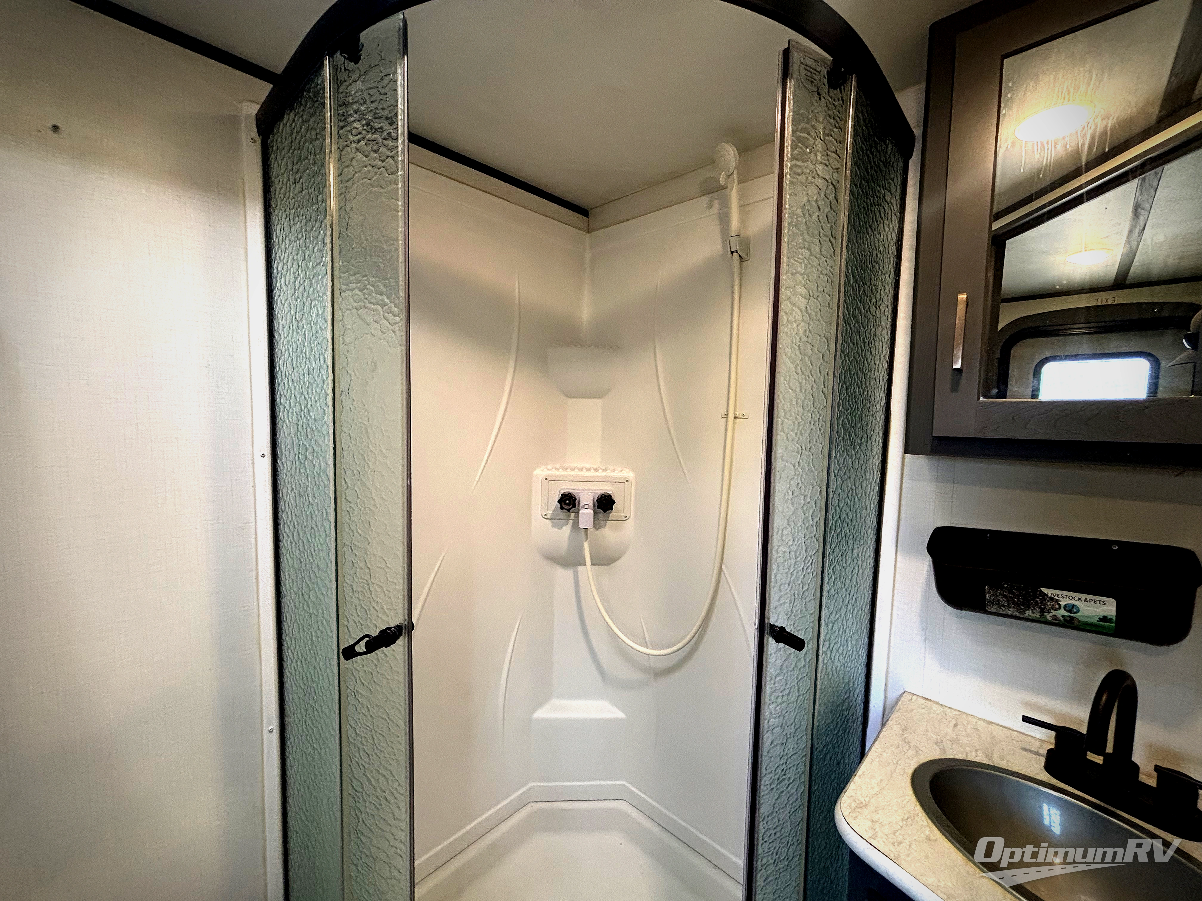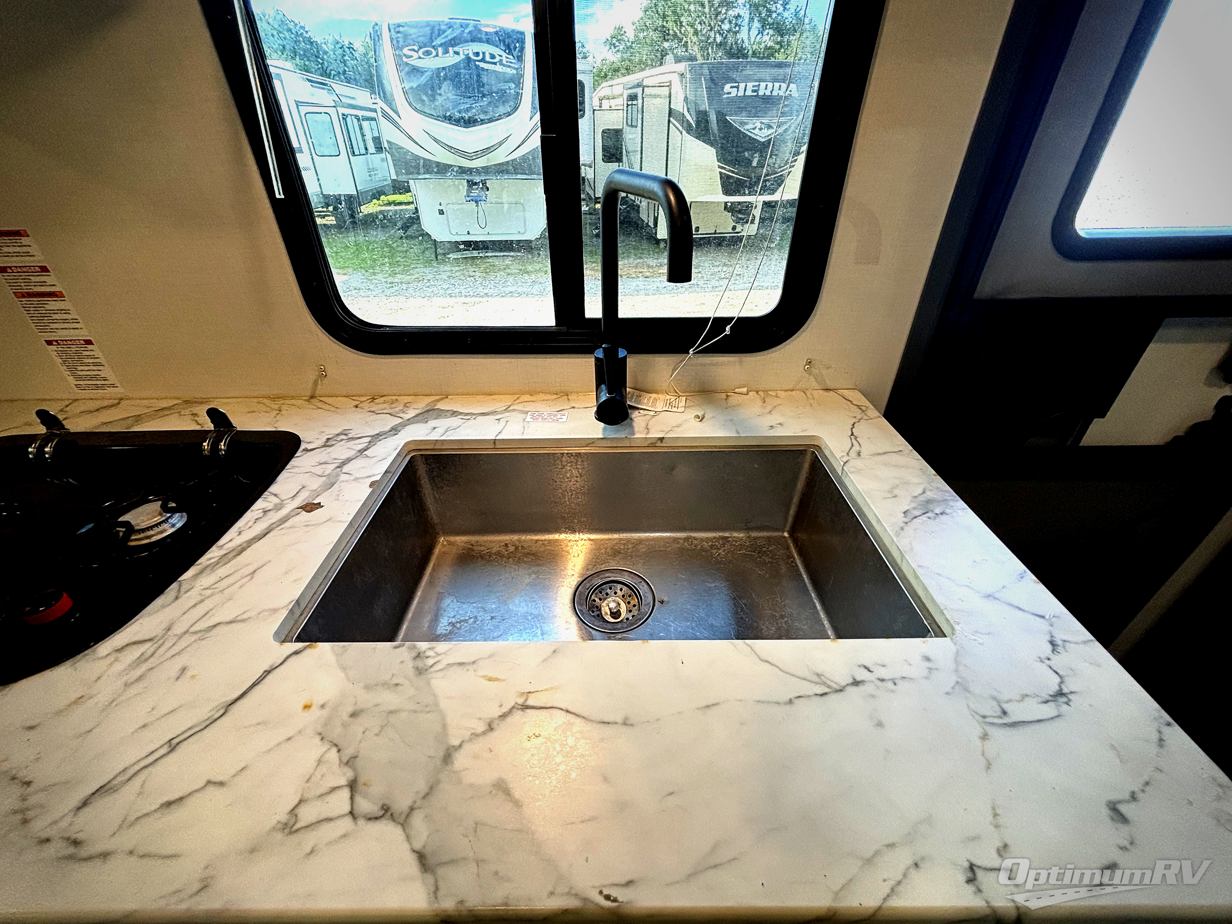 Lightweight camping doesn't have to mean small living spaces, and this travel trailer proves that. You'll be pleasantly surprised by the amount of space you have thanks to the tri-fold sofa slide out with a folding table, and there is a queen bed up front just like at home. The convenient laundry chute goes straight to the exterior pass-through storage to make wash day easier than ever, plus there is a full bath to stay clean throughout your trip. And don't overlook the kitchen that is equipped with everything you need, including a two burner gas range, a 6 cu. ft. gas/electric refrigerator, plus a pantry for snacks!