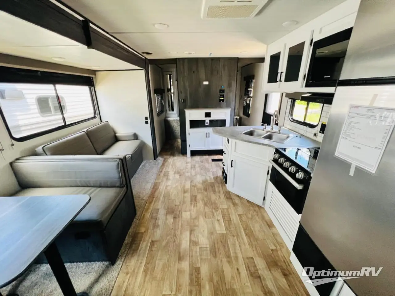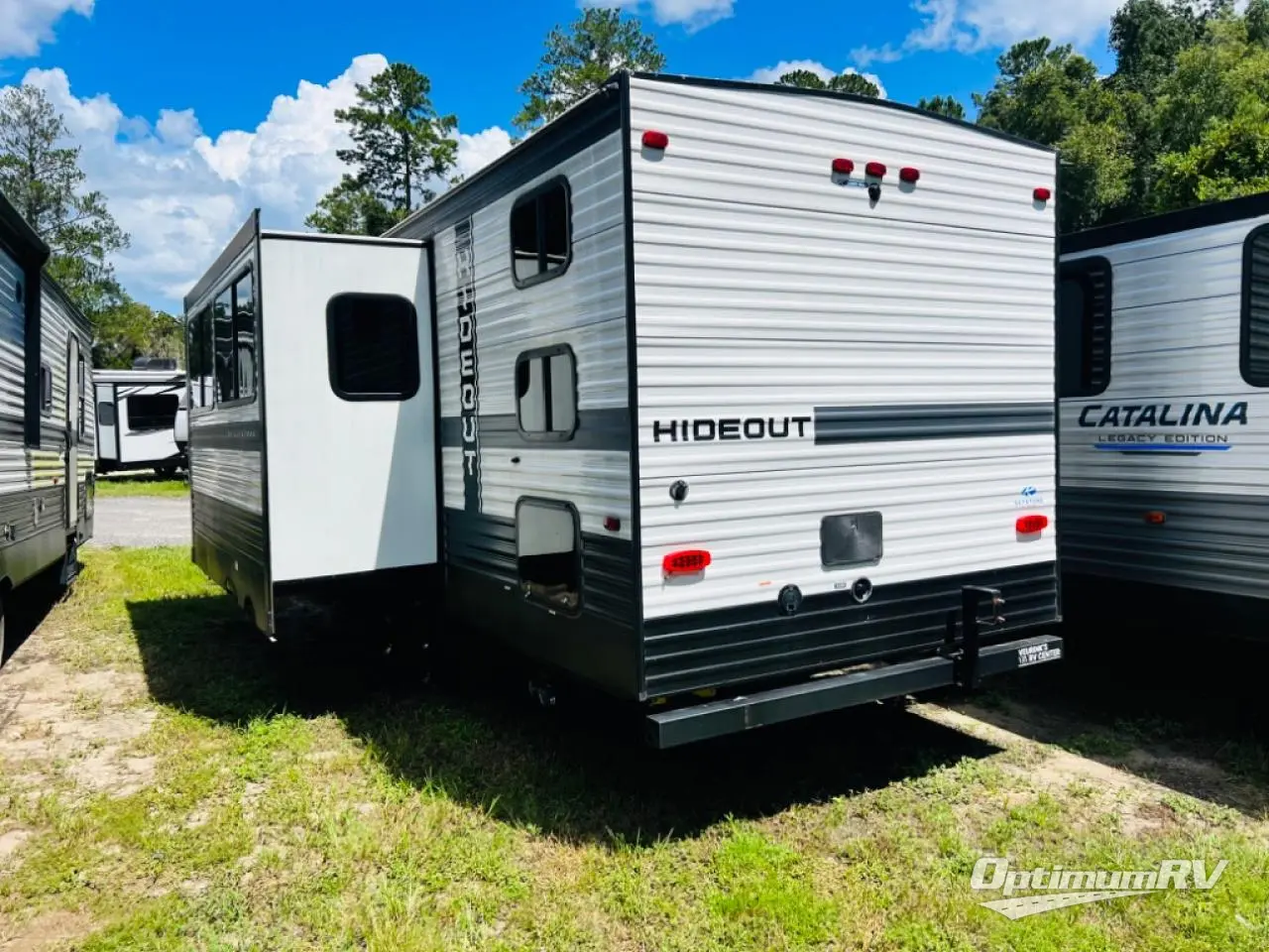 Get away with ease in this Hideout travel trailer! You will have your own private place to sleep in each night with the private bedroom up front. This bedroom has a queen-size bed, closets and nightstands on either side of the bed, overhead cabinets, and a laundry chute. Just outside the bedroom is where the entertainment center is located. The entertainment center has been prepped for a fireplace, and you can add an optional 40" HDTV too. The large slide holds the booth dinette and jackknife sofa, and the central vacuum will help you clean up any messes that are made throughout the trip.
