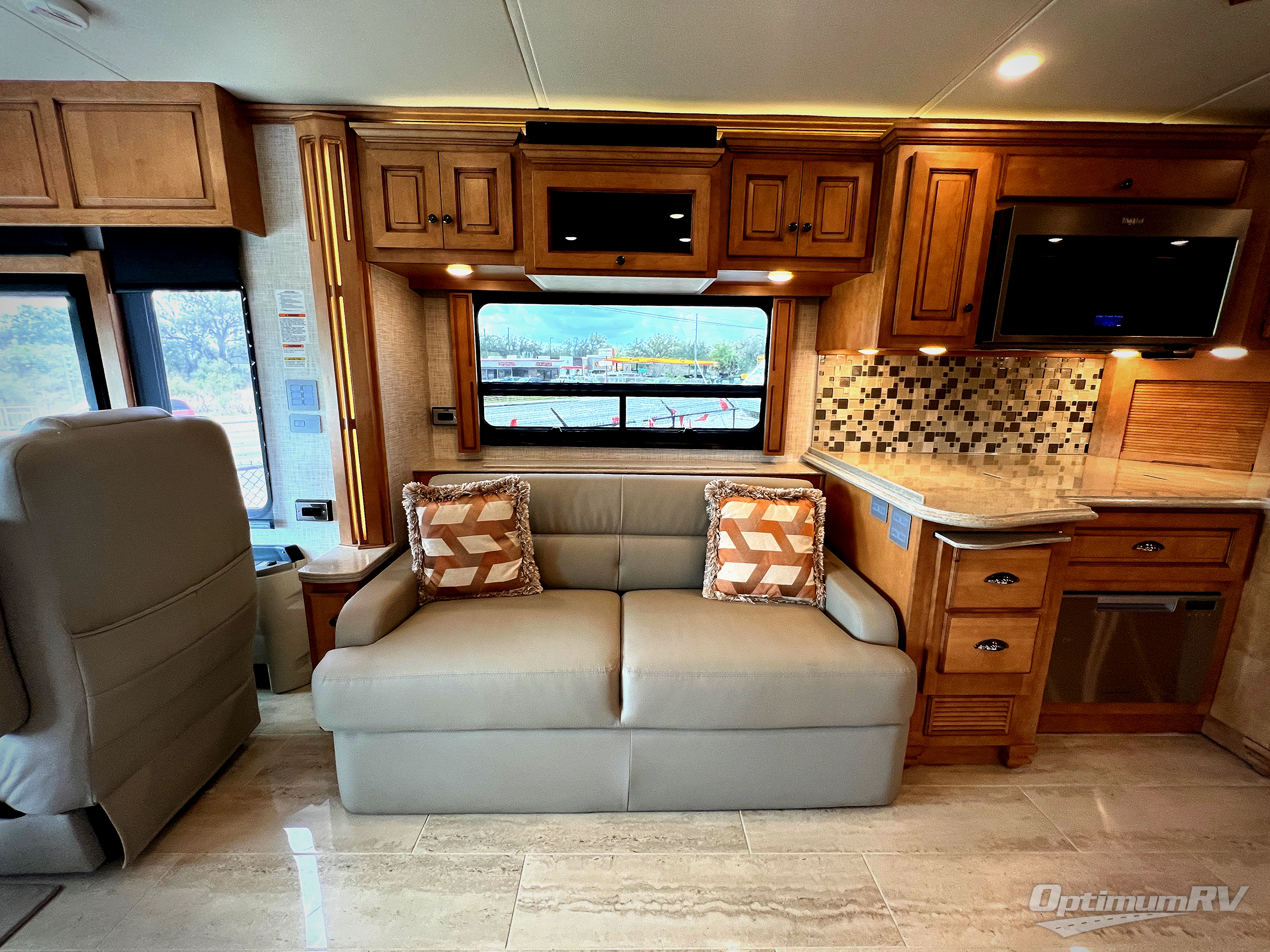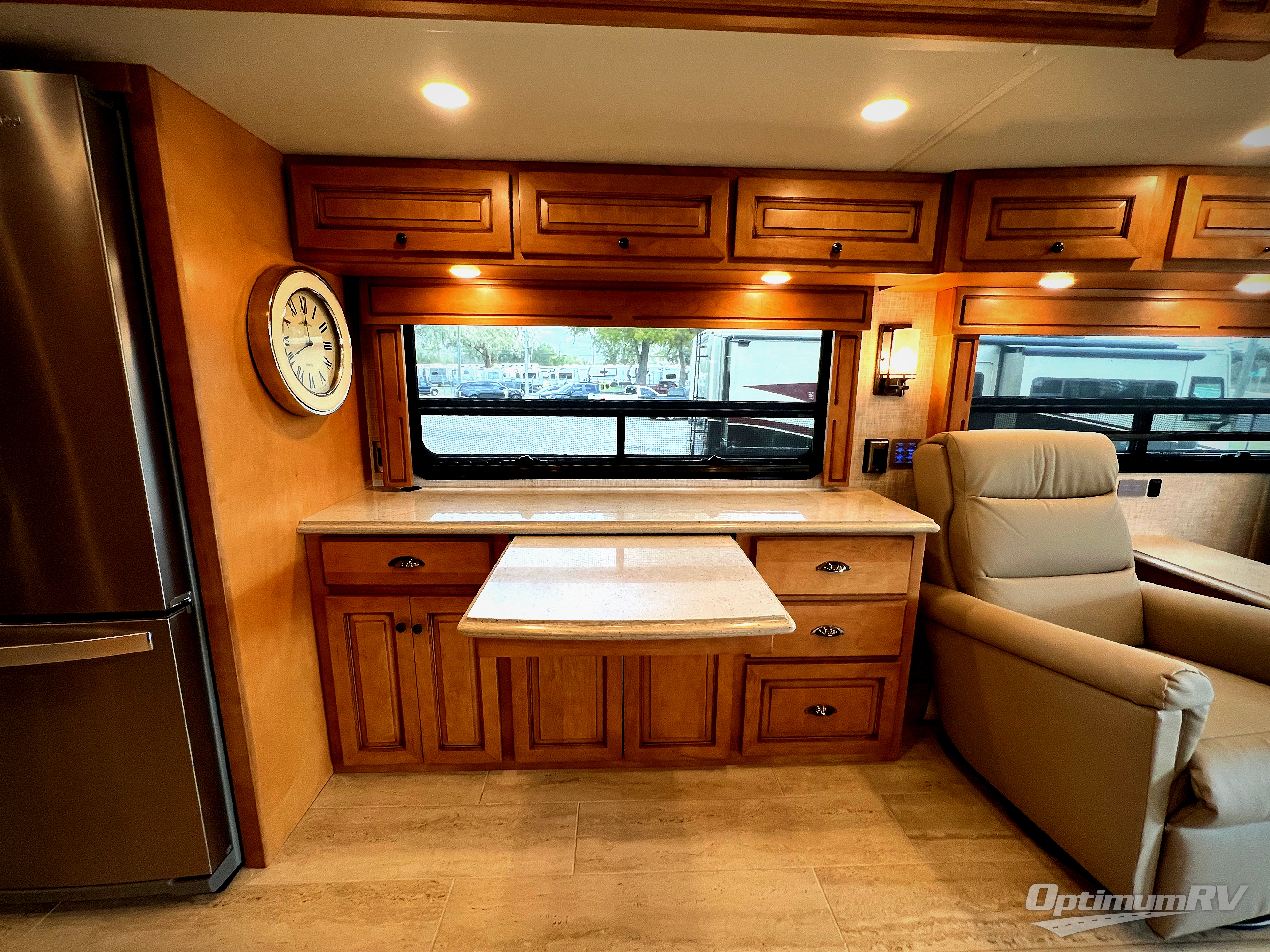 Are you looking to upgrade your motorhome to a more luxurious unit? Look no further than this Dutch Star Class A diesel motorhome. You will love the space provided by the full-wall slide and two additional slides, plus the rear bath cathedral ceiling will add extra height. Take a rest on the pillowtop king bed or relax on the hide-a-bed sofa. There is a passenger workstation and a hide-a-leaf dinette if you're needing to get some work done while on vacation, and the power awning outside will provide shade if you're wanting to work in fresh air. Don't worry about stopping for food because this model includes a Whirlpool 19.7-cu. ft. stainless steel refrigerator that will allow you to stock up for the week, and you can cook with the stainless steel convection microwave with a three-burner recessed gas cooktop!