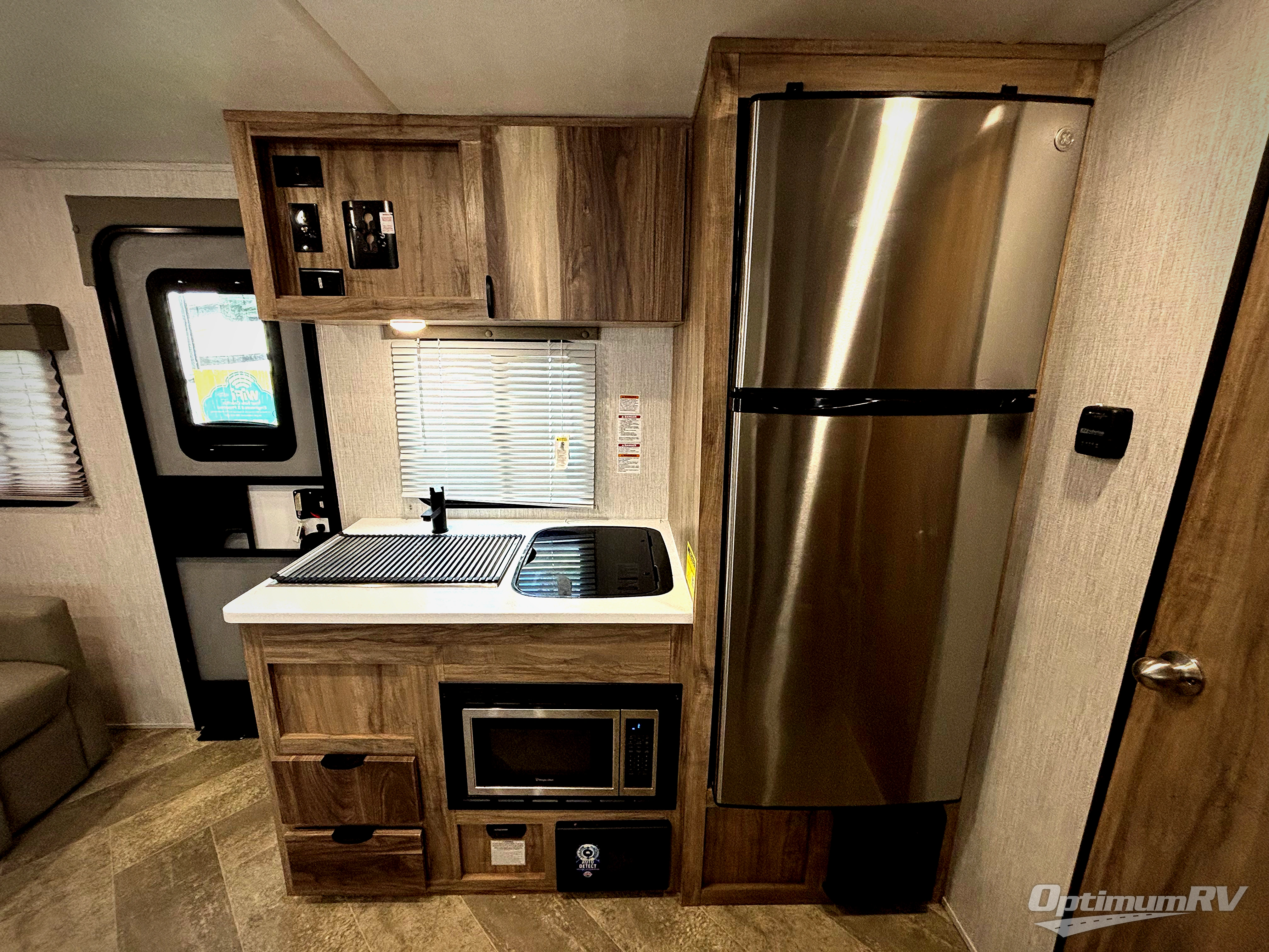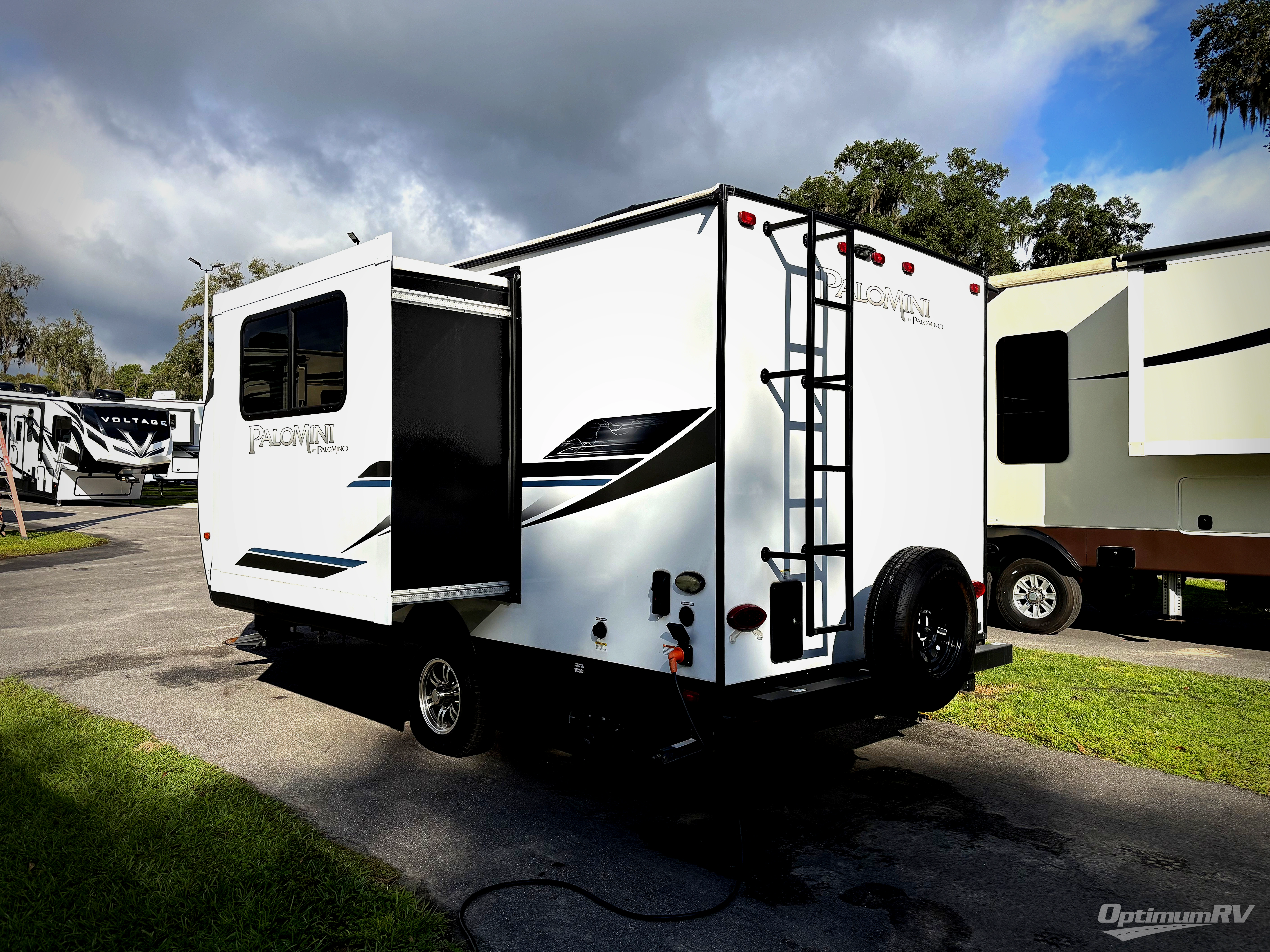 Enjoy the peace and quiet of the great outdoors with one of these Palomino PaloMini travel trailers! The light weight vacuum bonded and Azdel construction make them easier to tow and promote better fuel efficiency. You will also appreciate how easy the gel coat fiberglass exterior is to clean and maintain, and the front cap with windshield comes with Line X protectant. With LED interior lights, you can clearly see the beautiful maple hand glazed cabinets and they also use less power. In addition to the standard features, you can add optional features like the optional Off Road package which adds an extra 4" to the exterior height, has a lift kit, and 28" mudder tires so you can go off the beaten path. Come find your favorite one today!