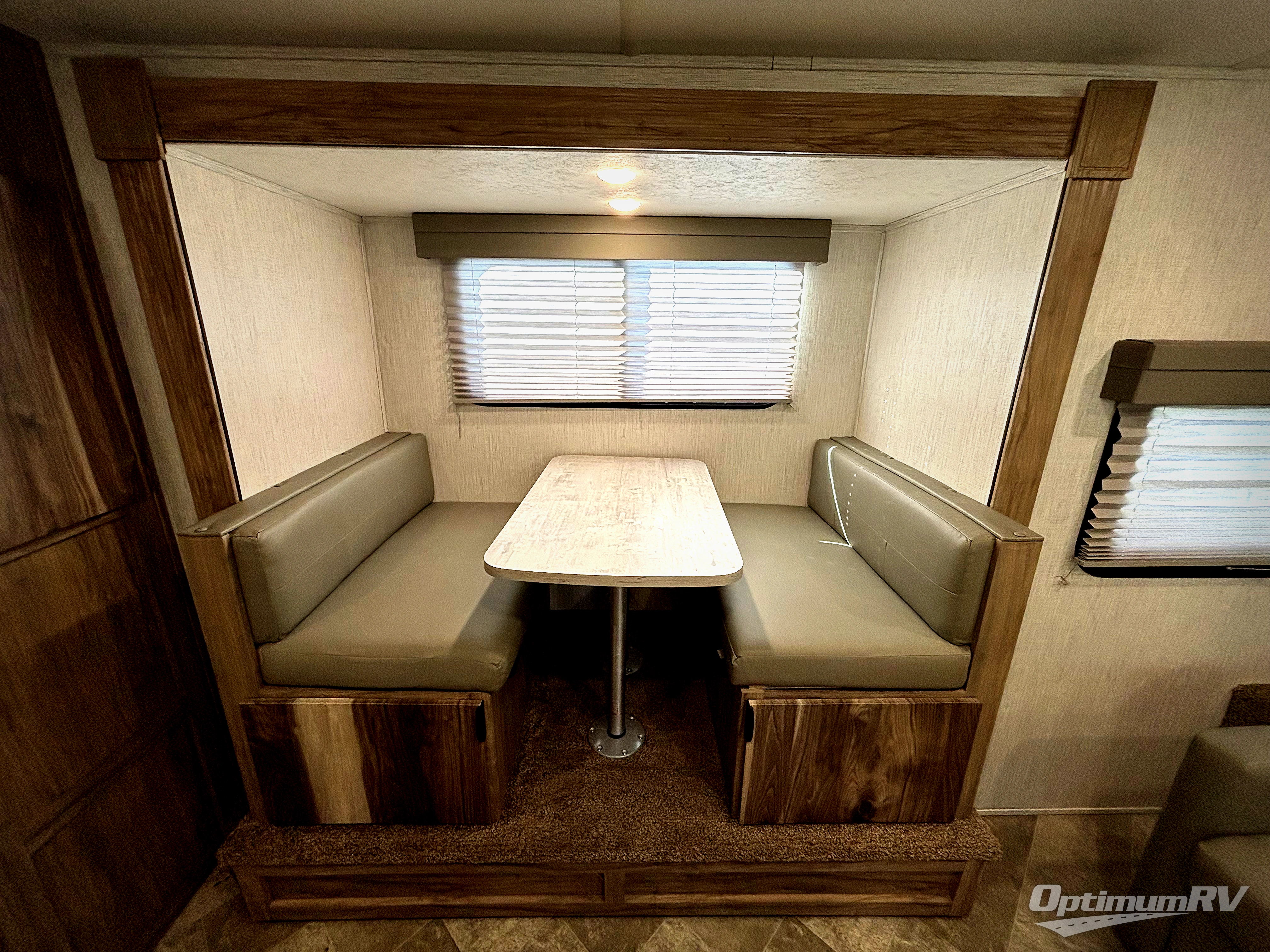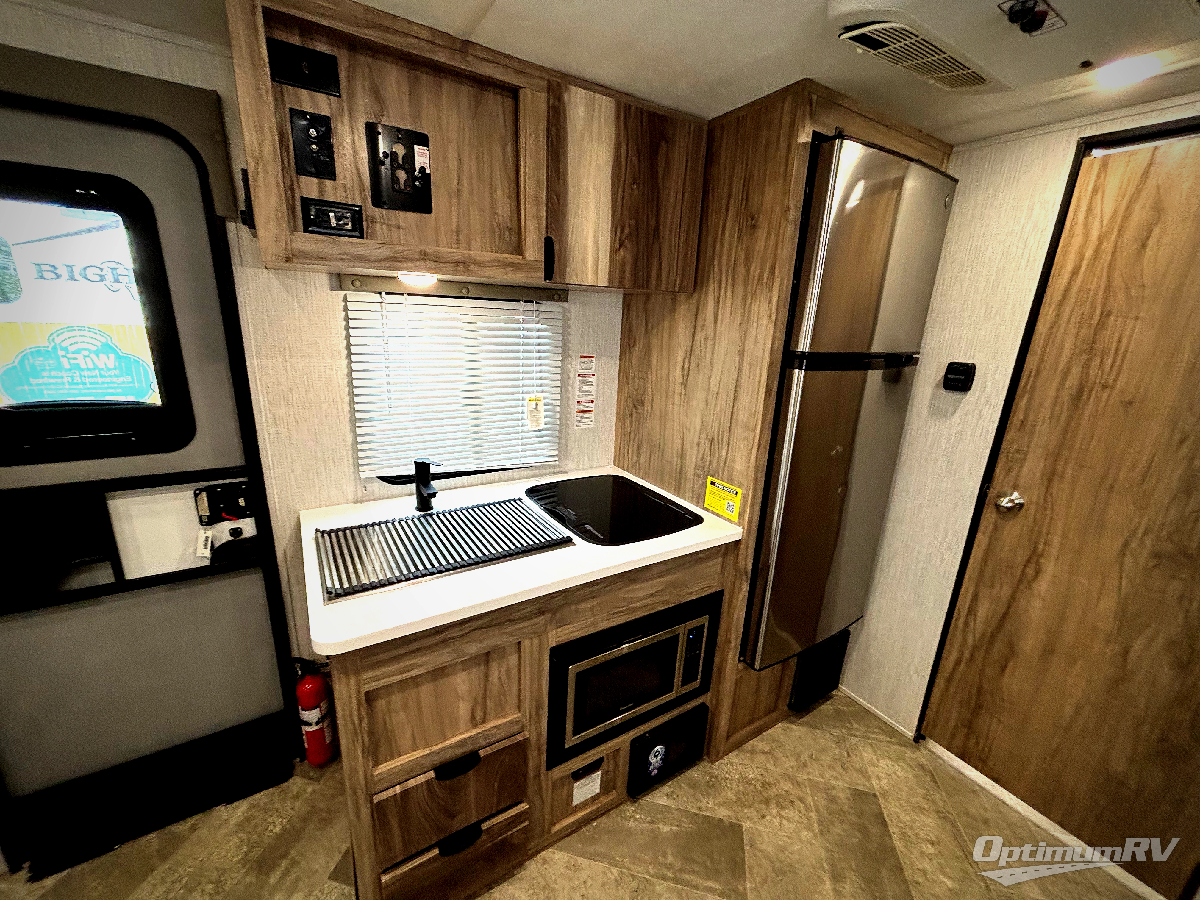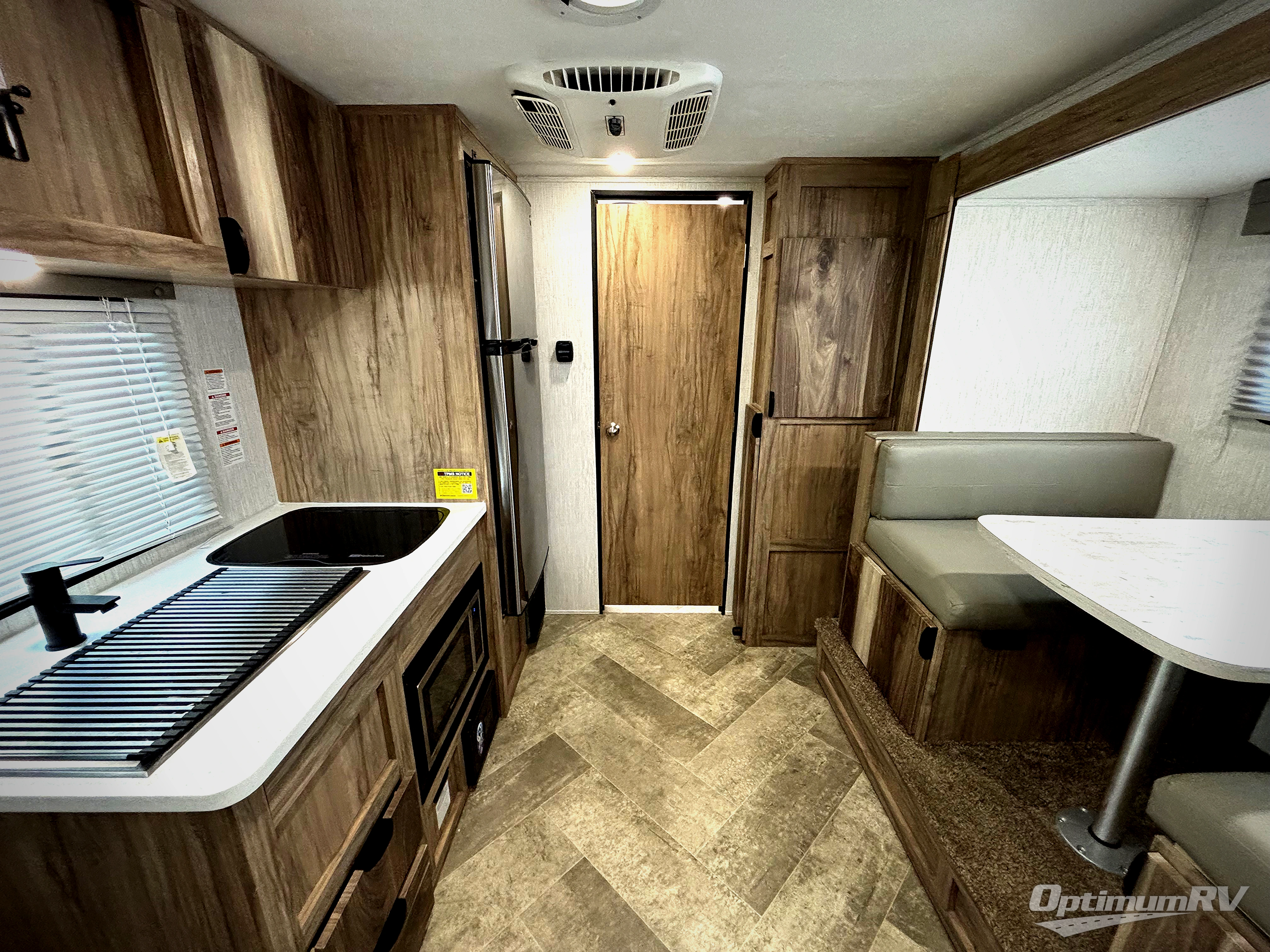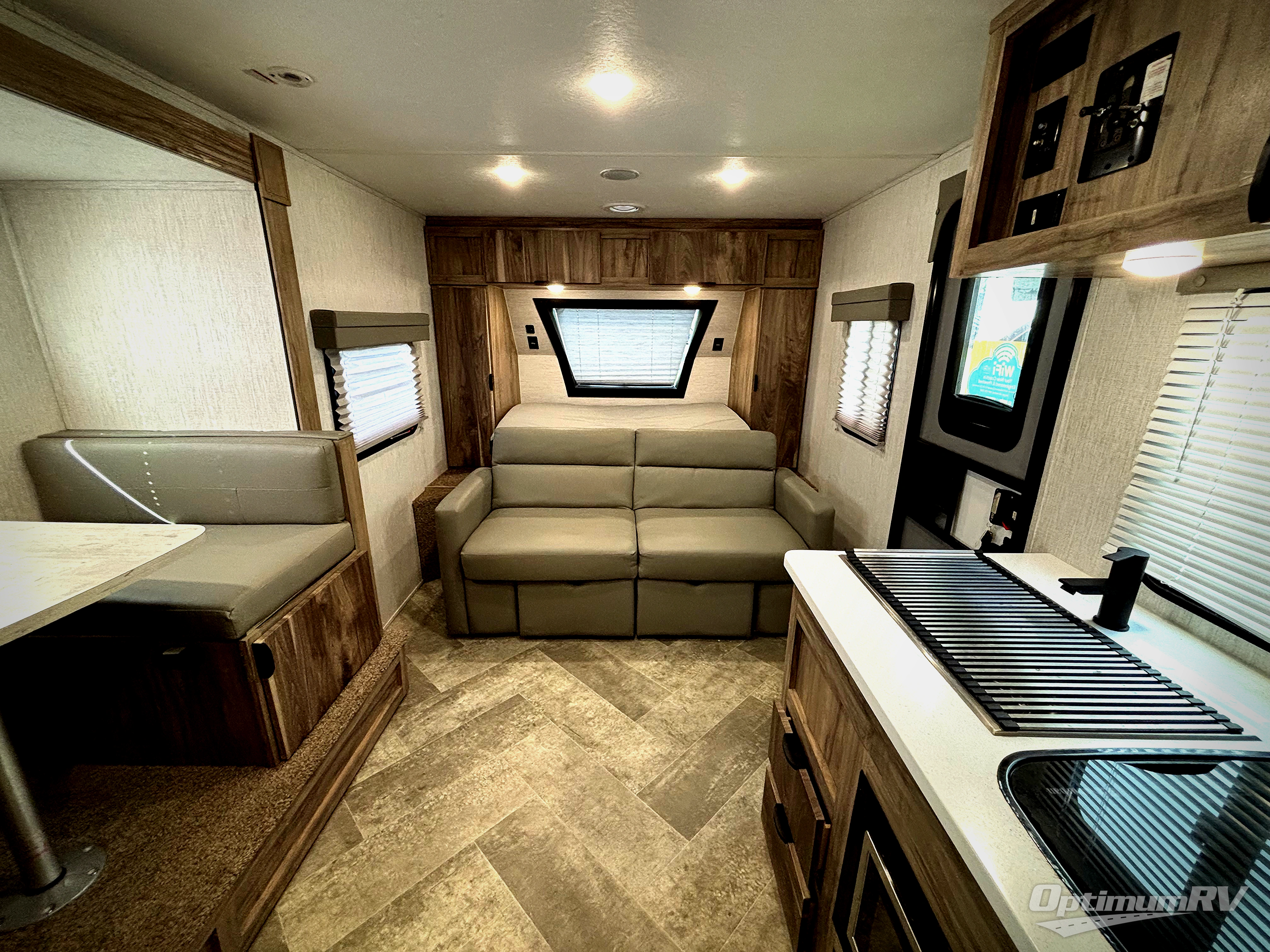 Head to your favorite spot with your favorite person in this travel trailer! The front Murphy bed offers versatility with a sofa to sit on during the day and a 60" x 80" queen bed to sleep on at night, plus there are wardrobes on either side for your clothes. Prepare your best home cooked meals with the two burner cooktop, 10 cu. ft. refrigerator, and even the microwave then enjoy them at the 38" x 70" booth dinette slide which can be transformed into an extra sleeping space. You even have an entertainment center for those days when mother nature rains on your parade. The full rear bathroom has a 32" x 32" radius shower to clean up in after a fun day at the beach and a linen closet to keep your towels close. The exterior has a 14' power awning with LED lights to highlight the good times and front outside storage to bring all of your camping necessities!