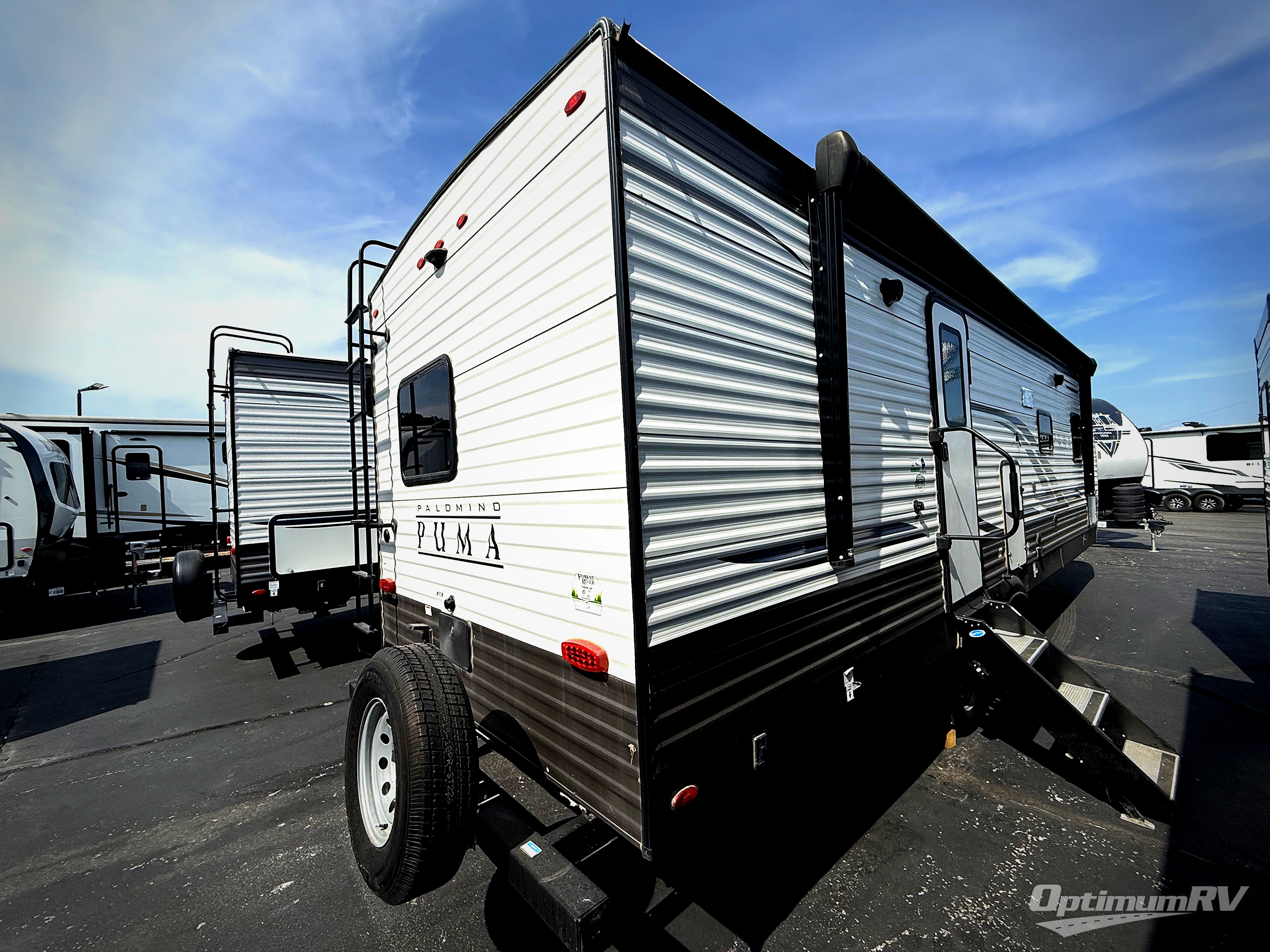 If you're looking for family-fun adventure then you need one of these Palomino Puma fifth wheels, travel trailers, or toy haulers! They are built rugged, easy to tow, and jam packed with features. The Darco wrapped underbelly will protect your units vitals through every season and the AlphaPly roofing membrane covers it. They also have super lube axles and a powder coated frame. Their luxurious interiors feature a spice rack and built-in knife rack in the kitchen, USB charging ports to keep your electronics at 100%, and high density foam mattresses for a good night's rest. The required Advantage package comes with night roller shades for privacy at night, two outside speakers to crank up the tunes while you play cornhole, and an outside shower to keep the dirt outside where it belongs, plus so much more!