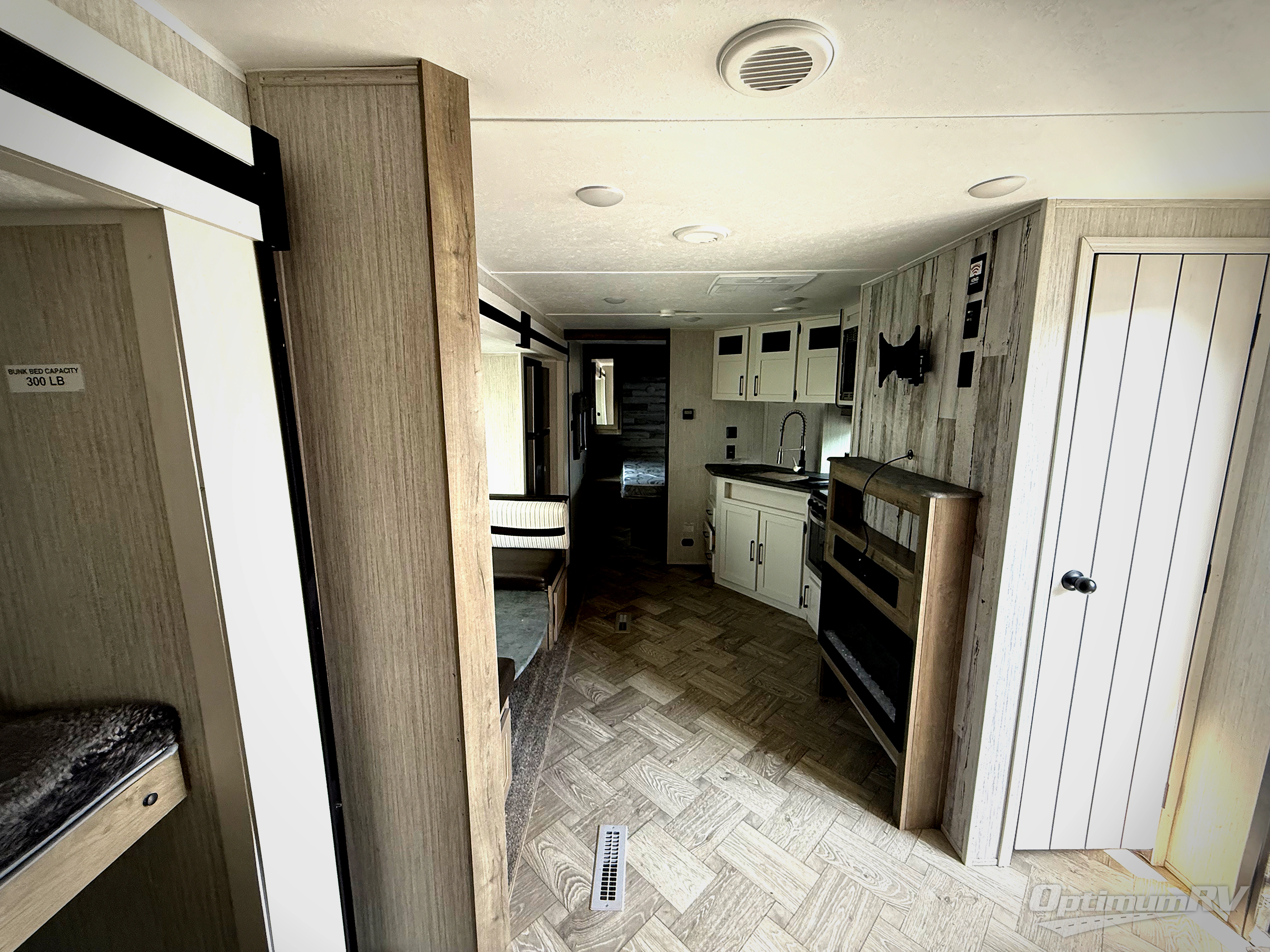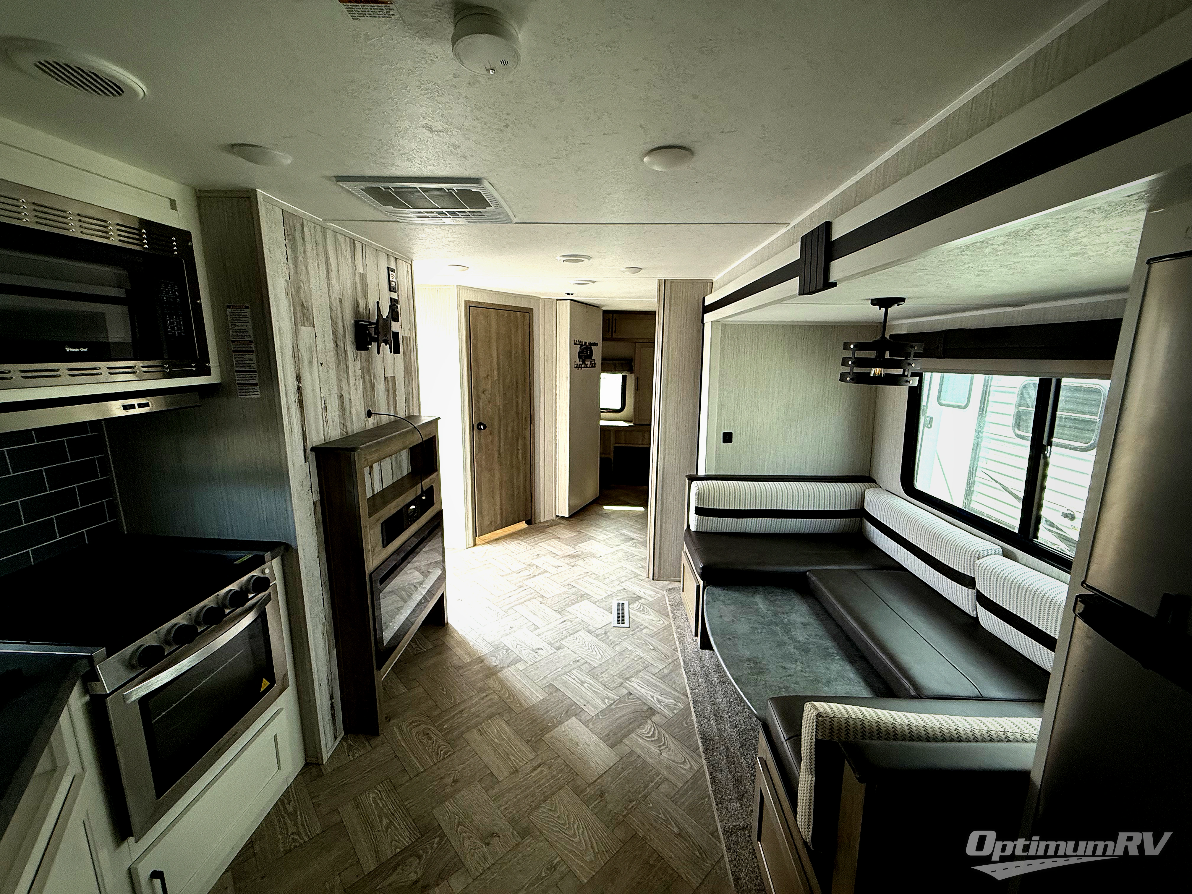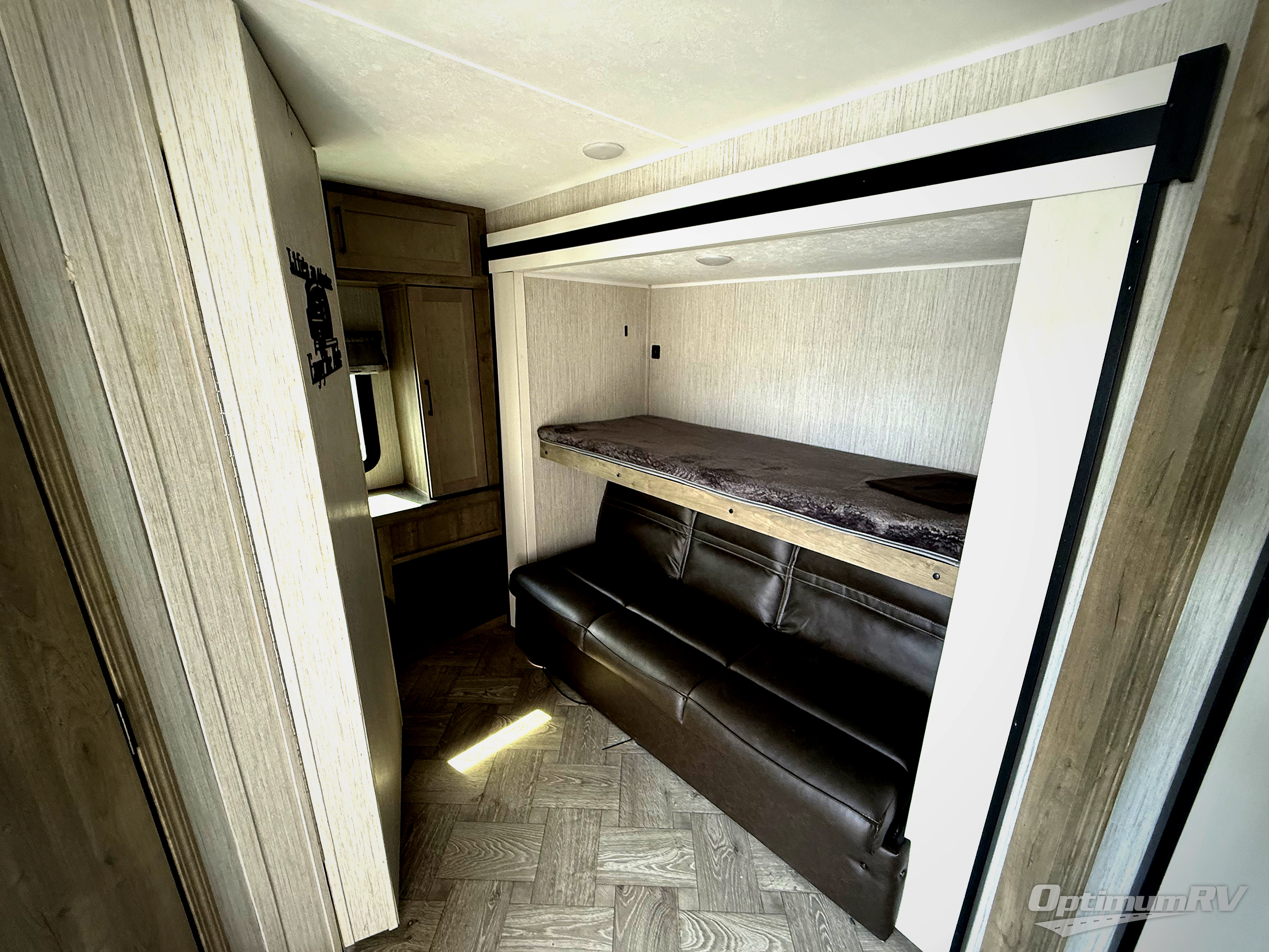With two bedrooms in this travel trailer, everyone will have their own comfortable, private place to sleep! The rear corner bedroom has a 32" x 69" bunk above a jiffy sofa slide and an entertainment center, plus it is right next to the full bathroom with a 32" x 40" shower with a seat. The front private bedroom has a queen bed with shirt closets and nightstands on either side and a closet for your storage needs. Prepare delicious home cooked meals with the three burner cooktop and the closet/pantry behind the entertainment center offers versatility. You could even transform the U-shaped dinette into an extra sleeping space when you aren't enjoying a meal or playing a game. There is also an optional exterior micro kitchen with griddle that can be added too!