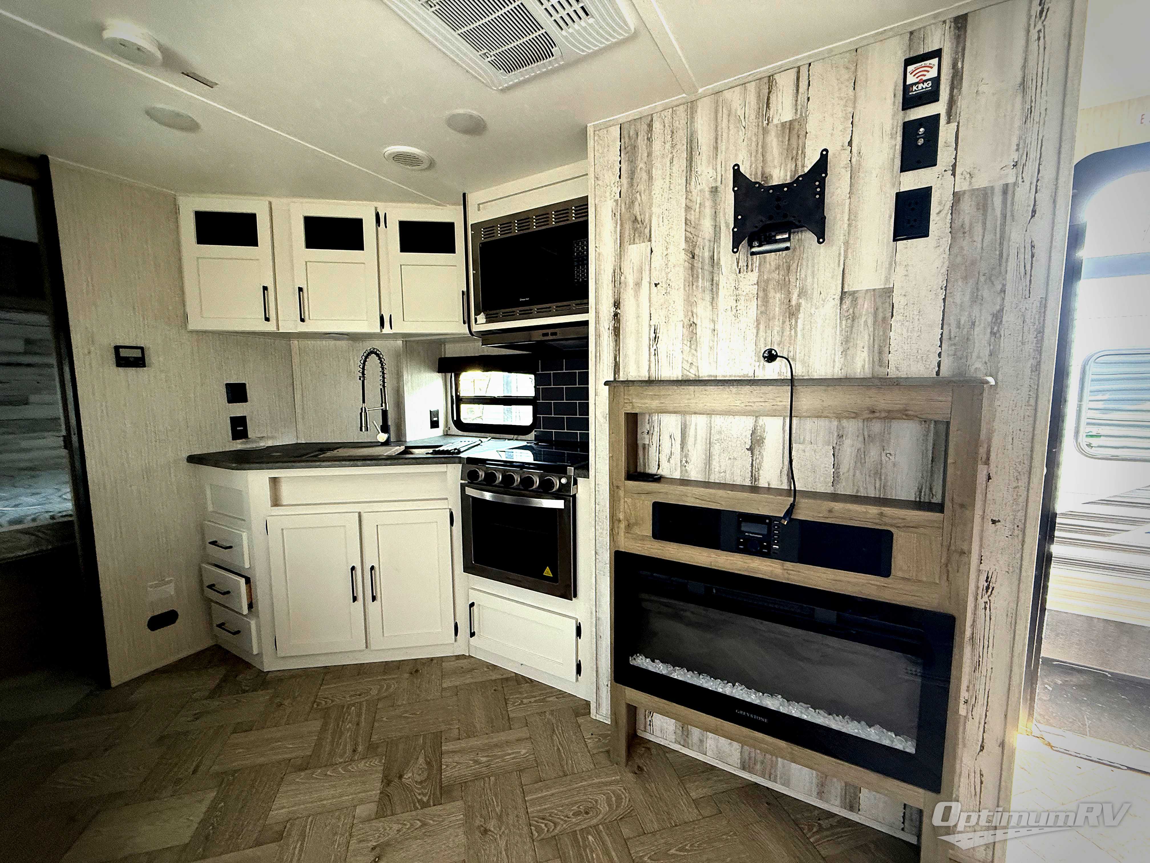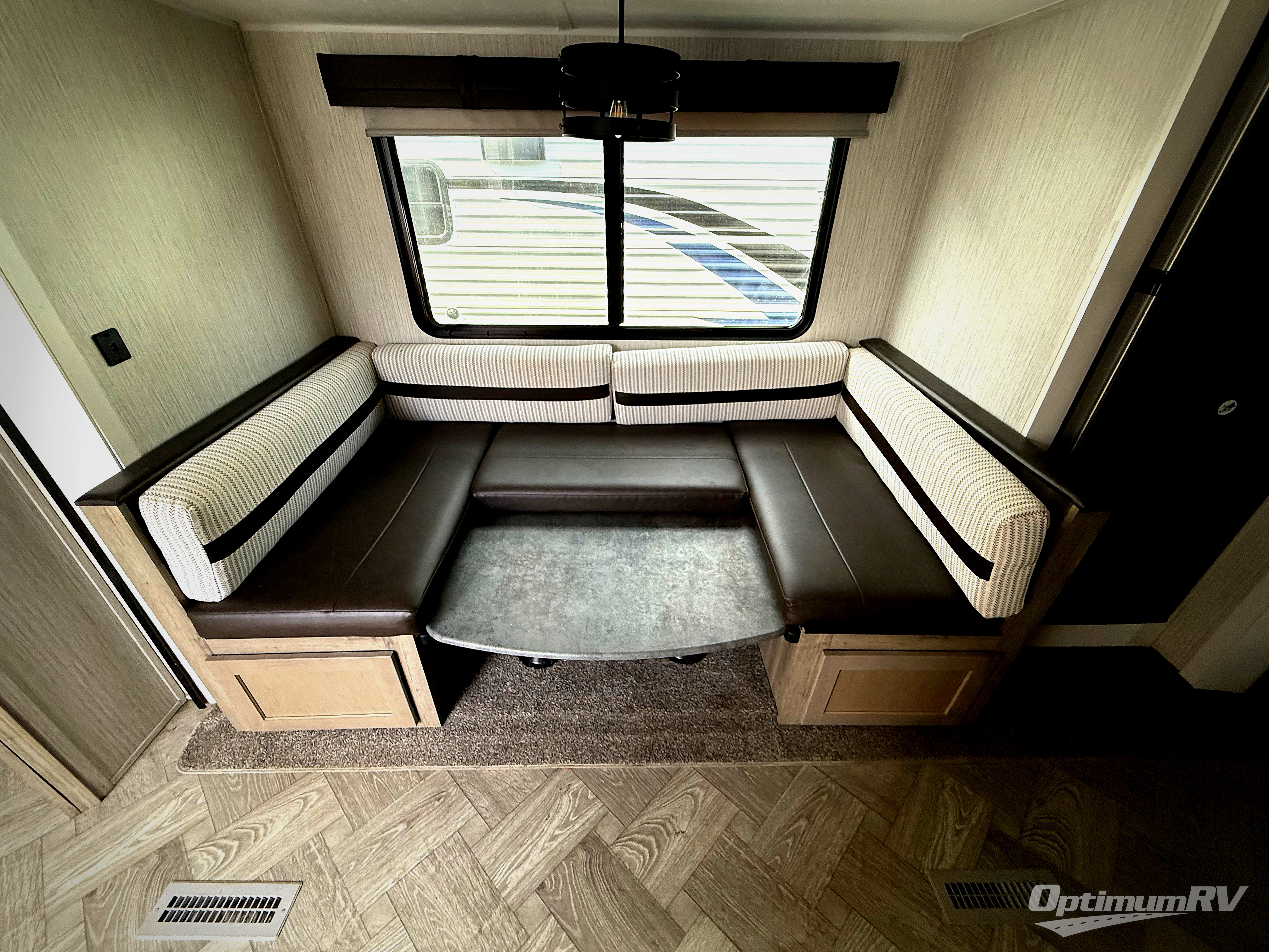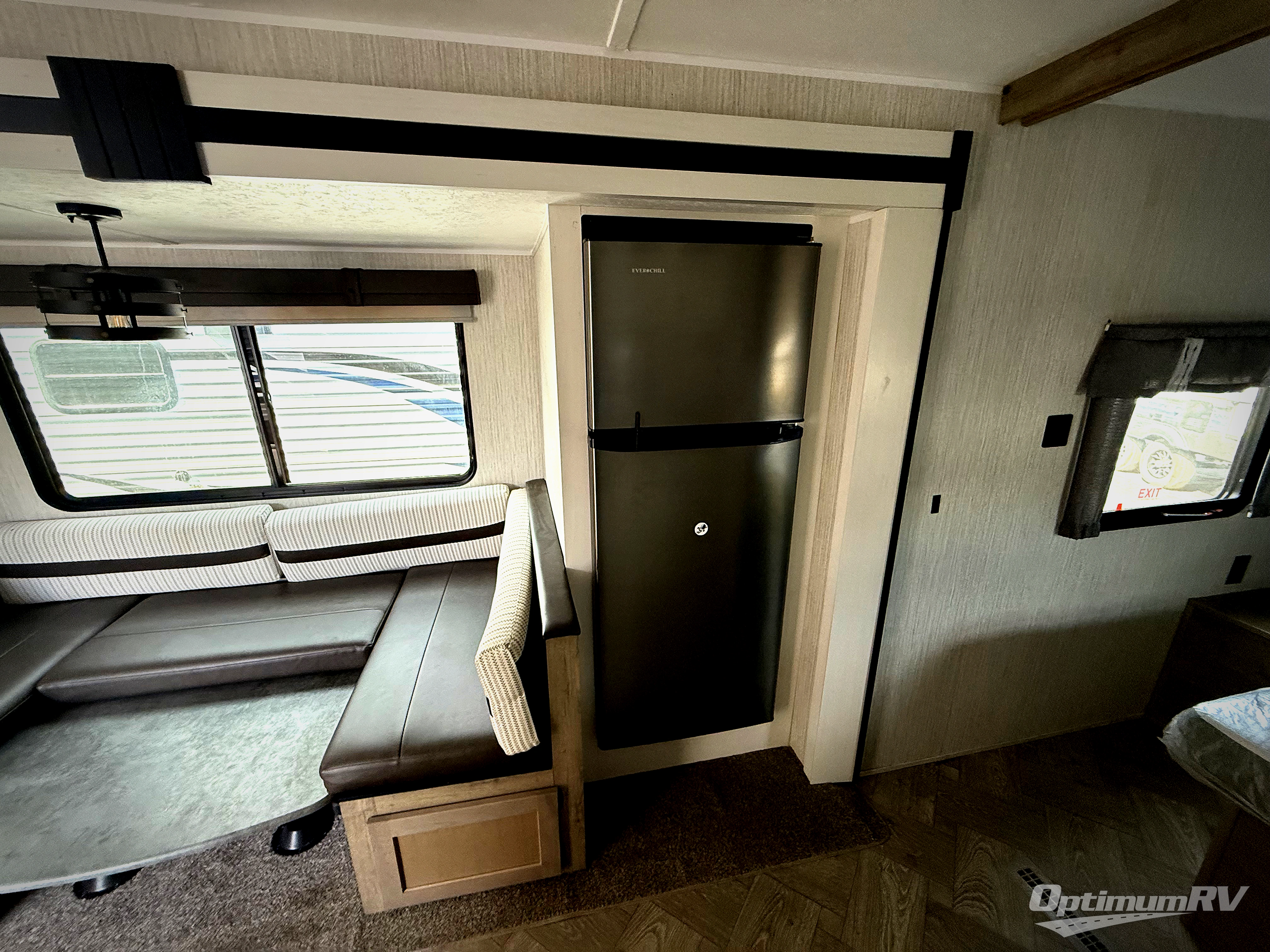 With two bedrooms in this travel trailer, everyone will have their own comfortable, private place to sleep! The rear corner bedroom has a 32" x 69" bunk above a jiffy sofa slide and an entertainment center, plus it is right next to the full bathroom with a 32" x 40" shower with a seat. The front private bedroom has a queen bed with shirt closets and nightstands on either side and a closet for your storage needs. Prepare delicious home cooked meals with the three burner cooktop and the closet/pantry behind the entertainment center offers versatility. You could even transform the U-shaped dinette into an extra sleeping space when you aren't enjoying a meal or playing a game. There is also an optional exterior micro kitchen with griddle that can be added too!