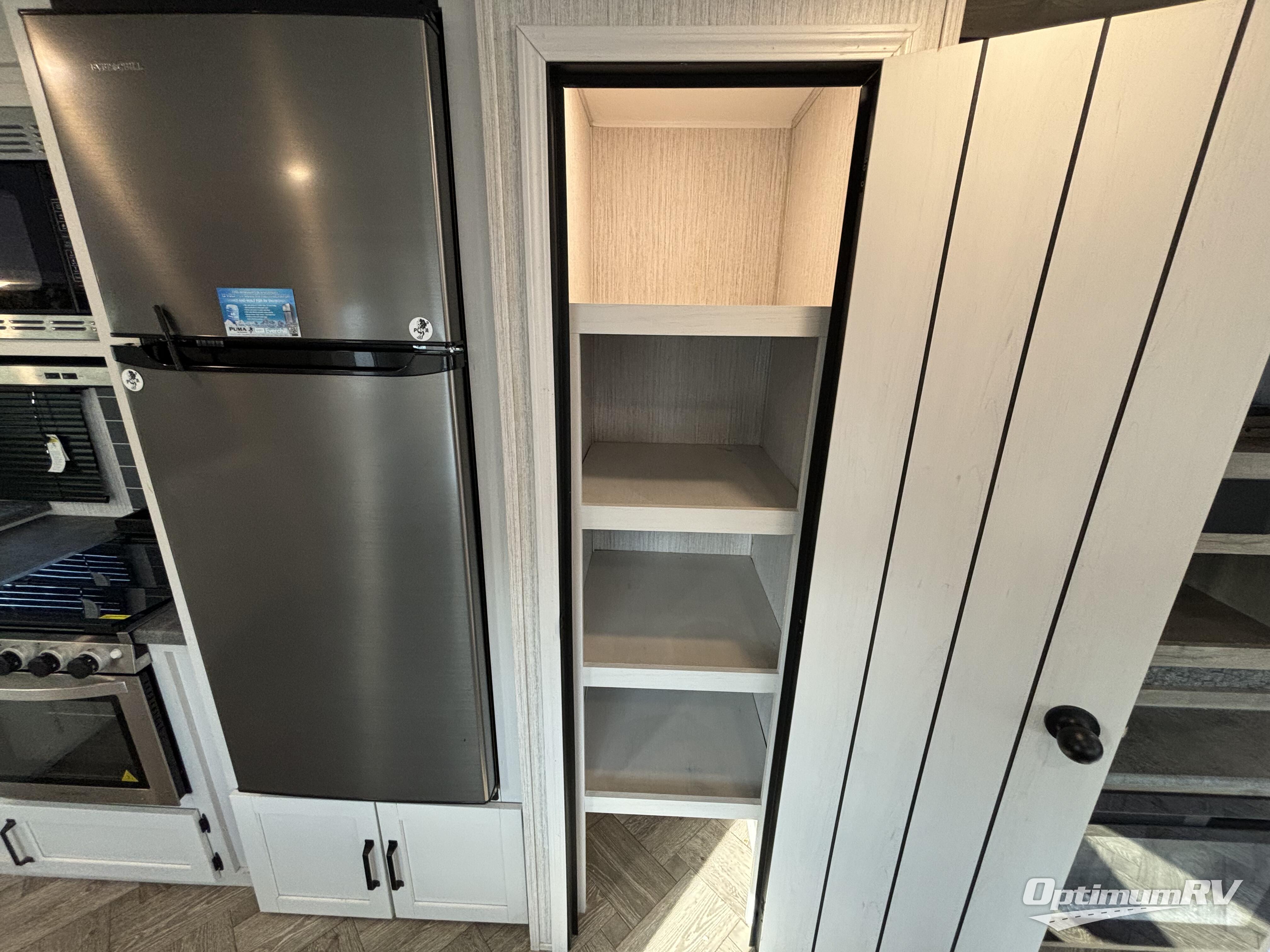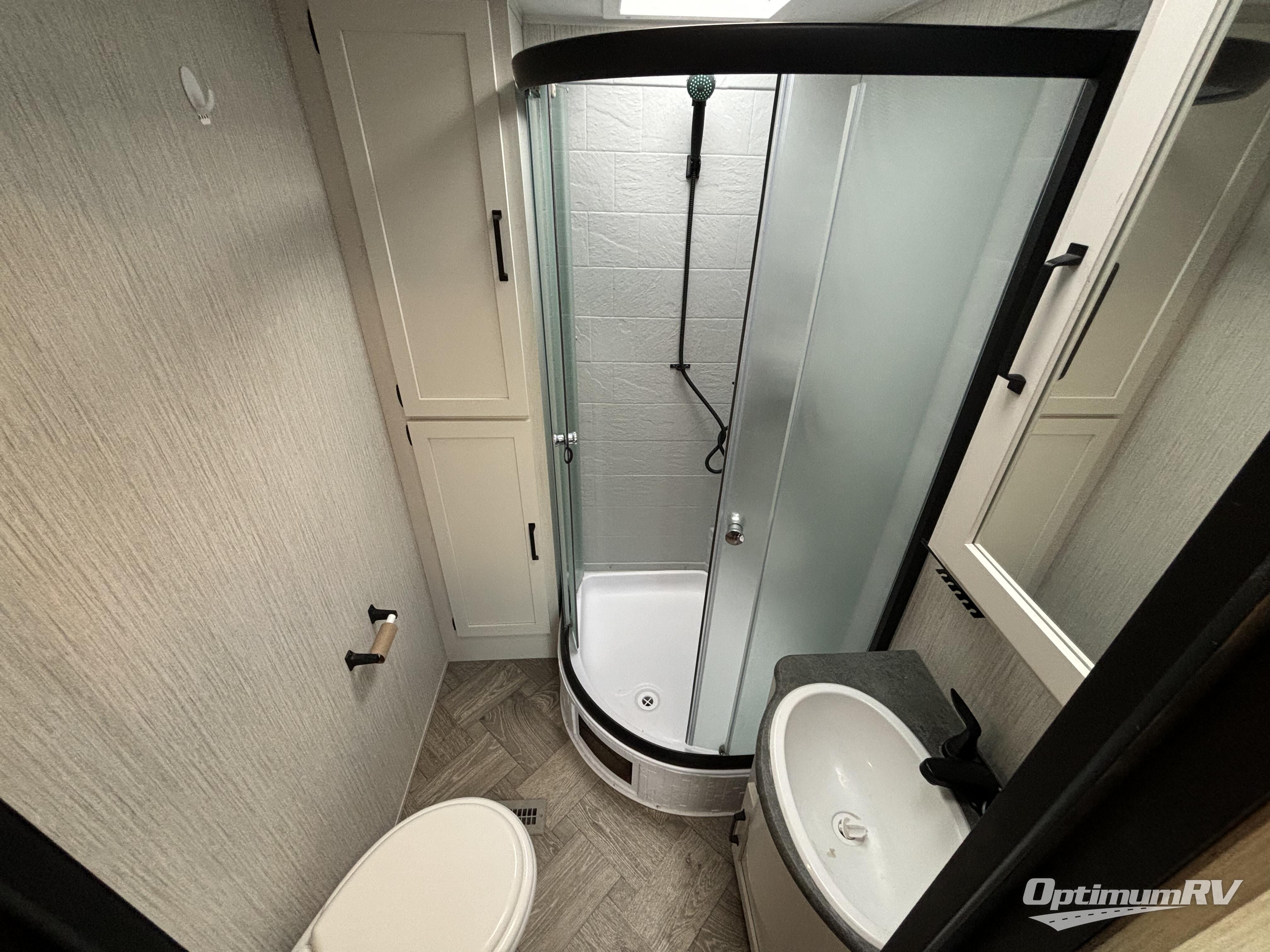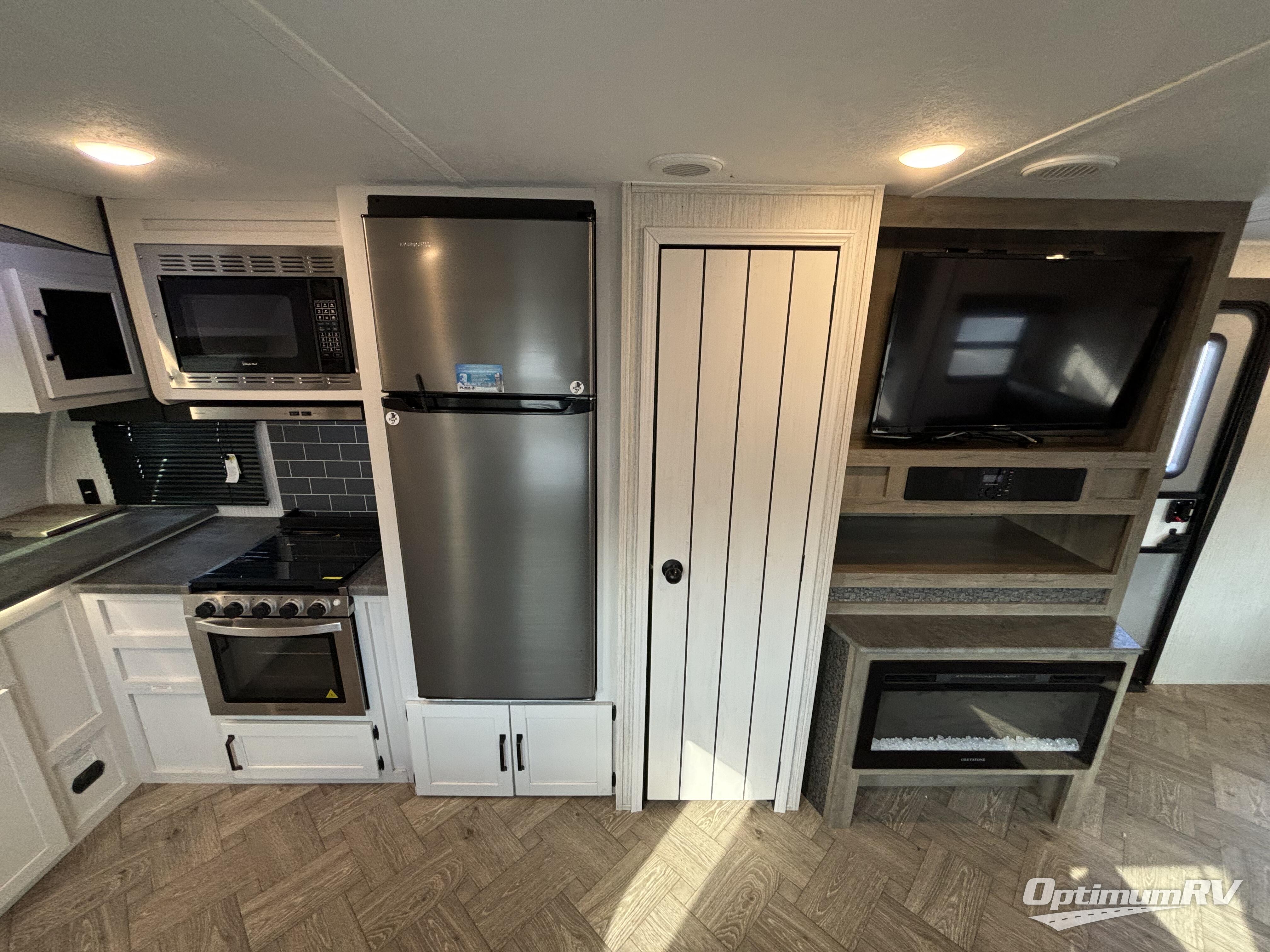 Experience a home away from home with this travel trailer! The front kitchen has everything you will need to prepare your best meals and you can enjoy them at the booth dinette. You could even add the optional exterior micro kitchen with griddle for a sunrise breakfast. The rear private bedroom has a 72" x 80" king bed slide across from a dresser, a wardrobe, and a closet next to it that is prepped to add an optional washer and dryer. Freshen up in the full bathroom with the 34" x 34" radius shower and then enjoy a cup of coffee relaxing in one of the two recliners or on the sofa!