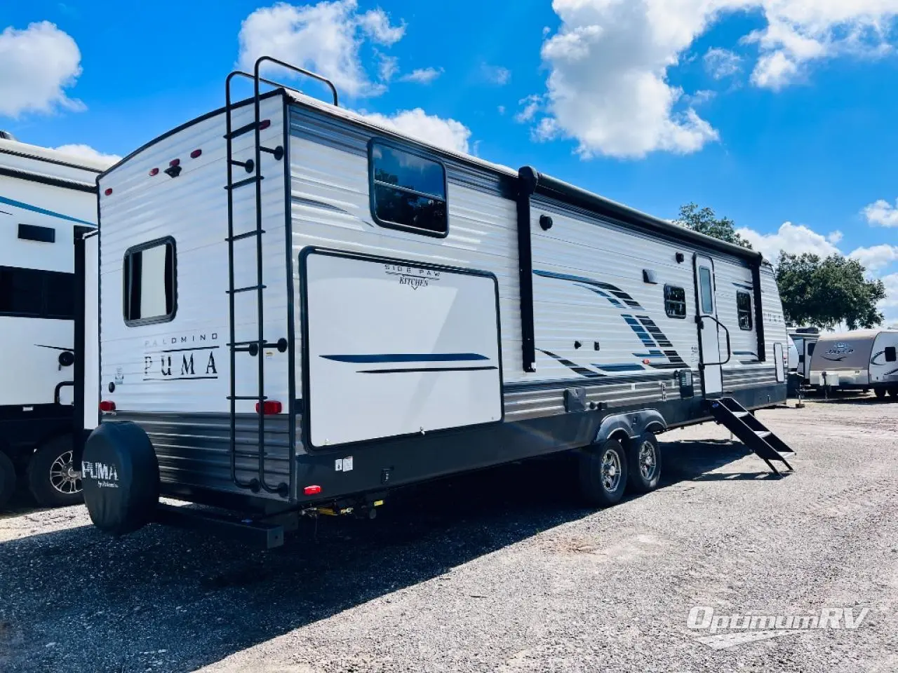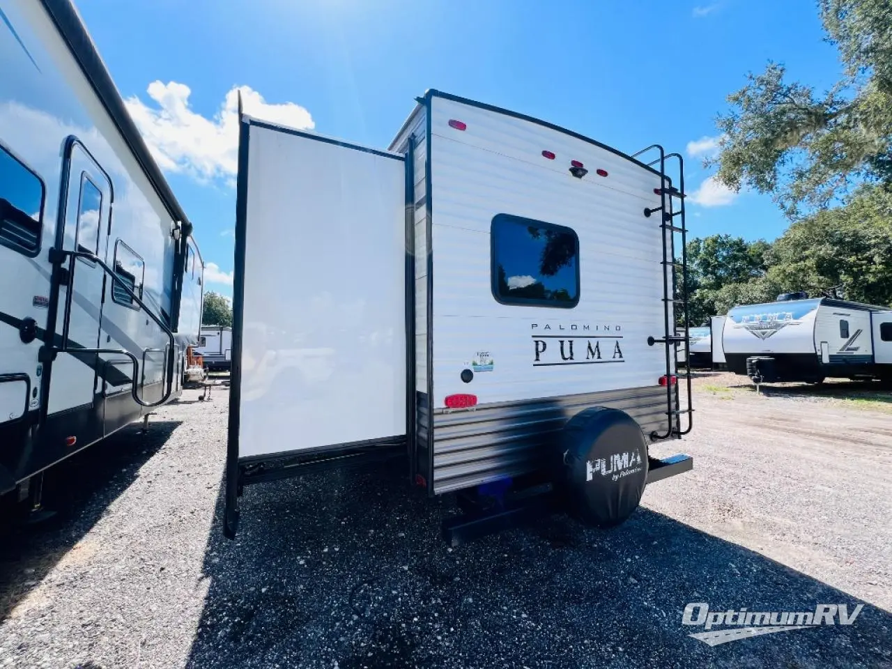 If you're looking for family-fun adventure then you need one of these Palomino Puma fifth wheels, travel trailers, or toy haulers! They are built rugged, easy to tow, and jam packed with features. The Darco wrapped underbelly will protect your units vitals through every season and the AlphaPly roofing membrane covers it. They also have super lube axles and a powder coated frame. Their luxurious interiors feature a spice rack and built-in knife rack in the kitchen, USB charging ports to keep your electronics at 100%, and high density foam mattresses for a good night's rest. The required Advantage package comes with night roller shades for privacy at night, two outside speakers to crank up the tunes while you play cornhole, and an outside shower to keep the dirt outside where it belongs, plus so much more!