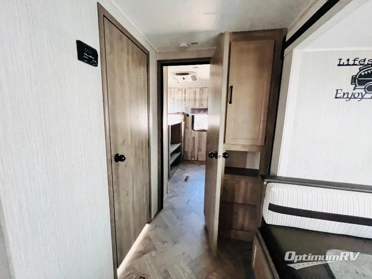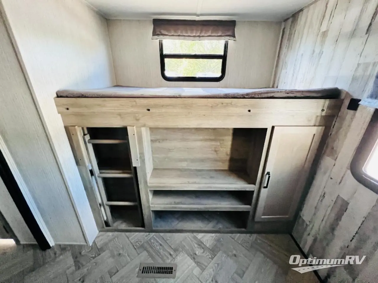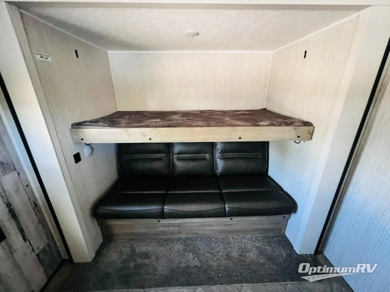 The whole family will love camping in this travel trailer! The kids will have their own privacy with the rear private bunkhouse which has a 32" x 69" bunk above a jiffy sofa slide and a 38" x 76" bunk above an entertainment center to keep them occupied on those rainy days. And you will have your own privacy with the front private bedroom that has a queen bed slide across from a dresser and a front closet with another closet next to it that is prepped to add an optional washer and dryer. Everyone can stay clean in the full bathroom with the 34" x 34" radius shower and their bellies full with a three burner cooktop. There is also an optional exterior kitchen with different layouts to choose from so you can be sure to have the one that meets your needs the best!