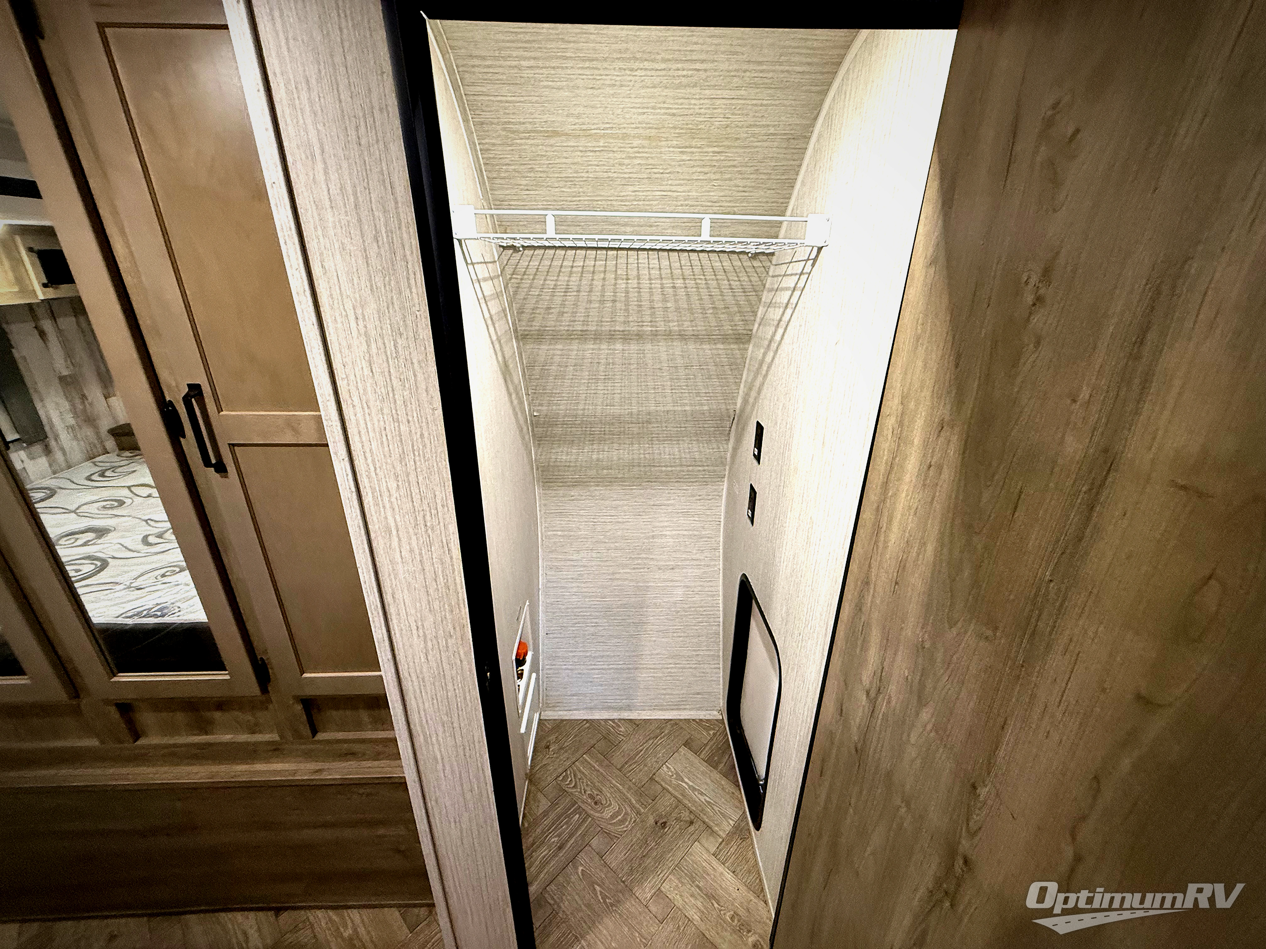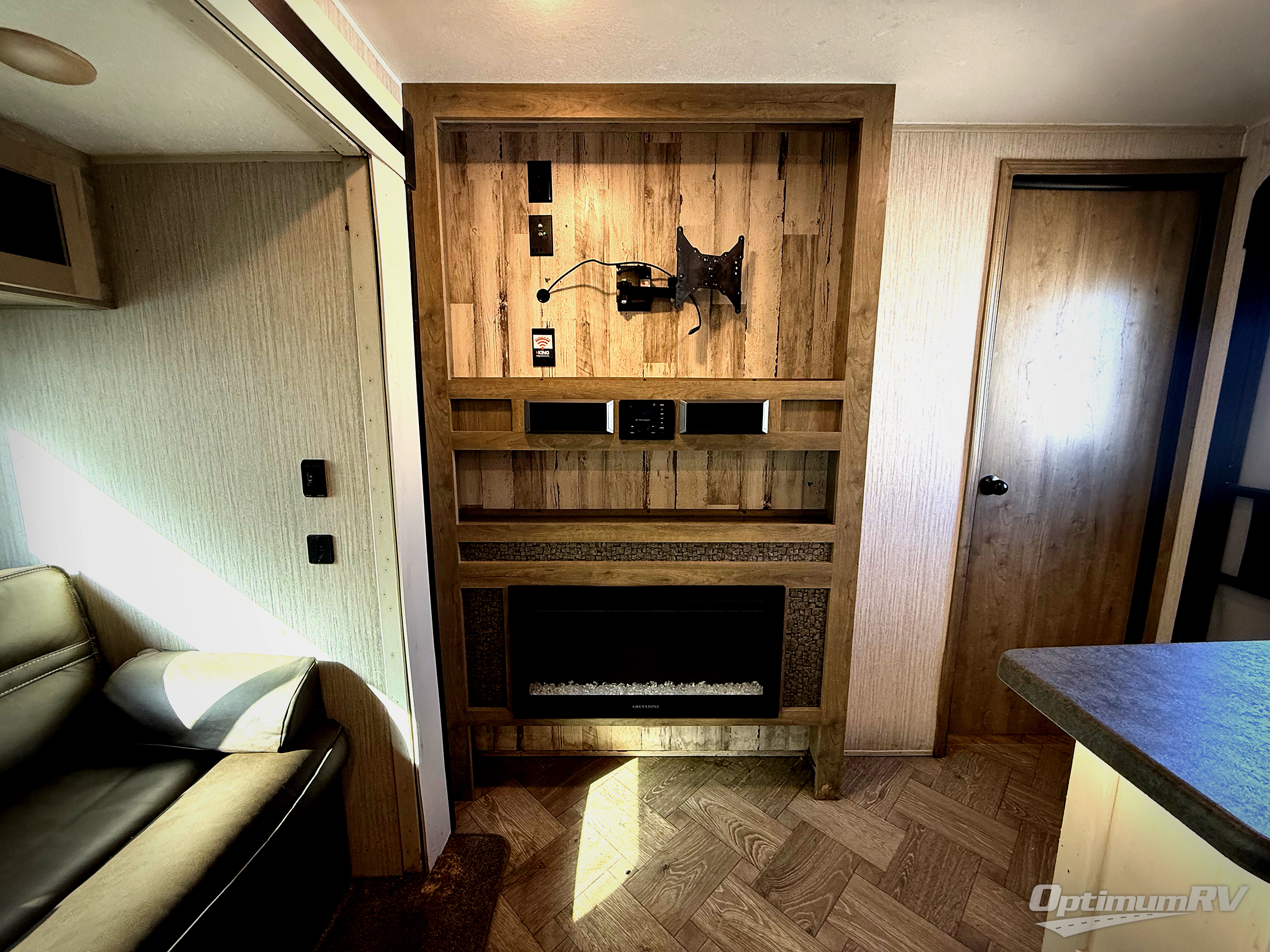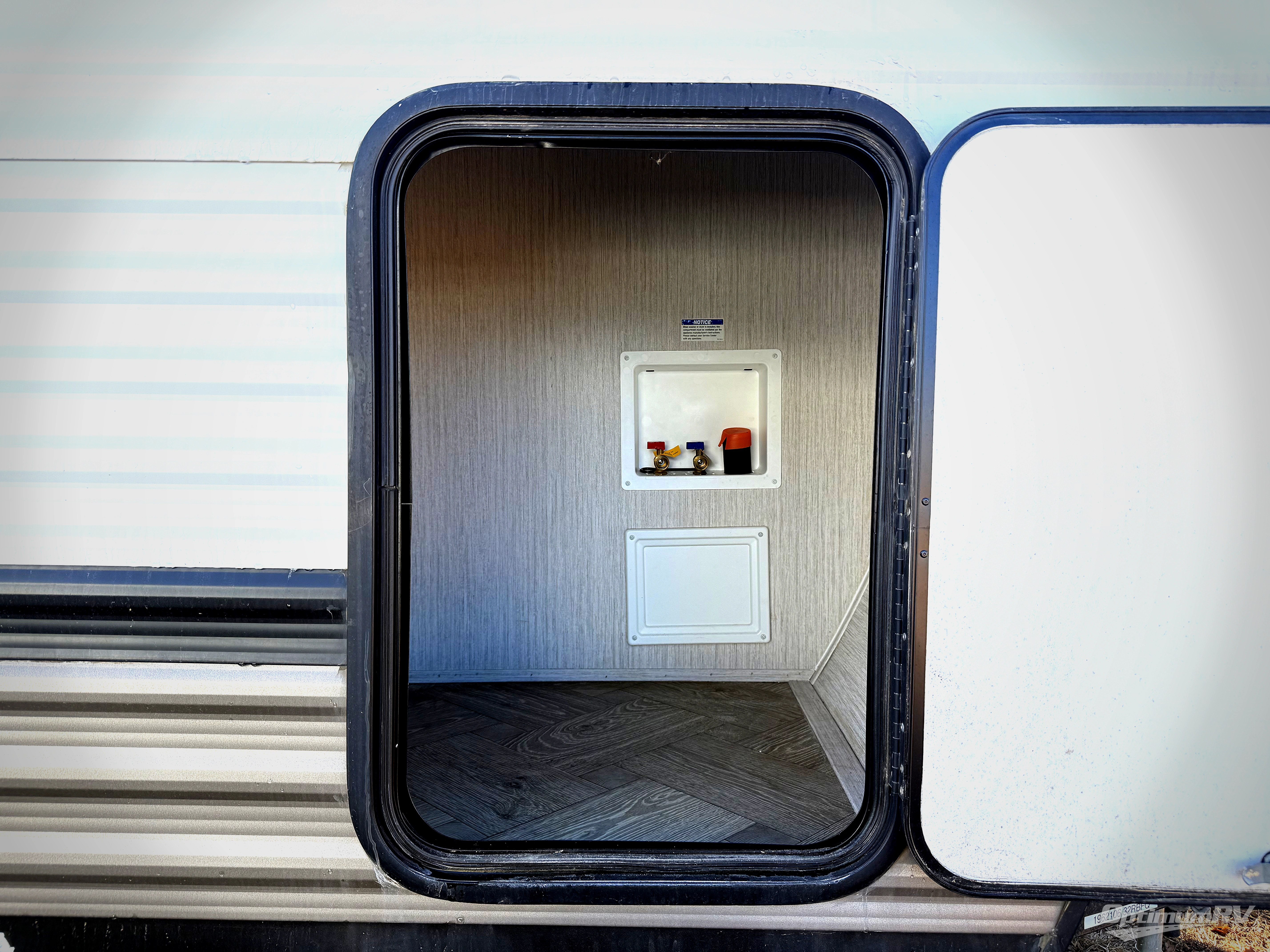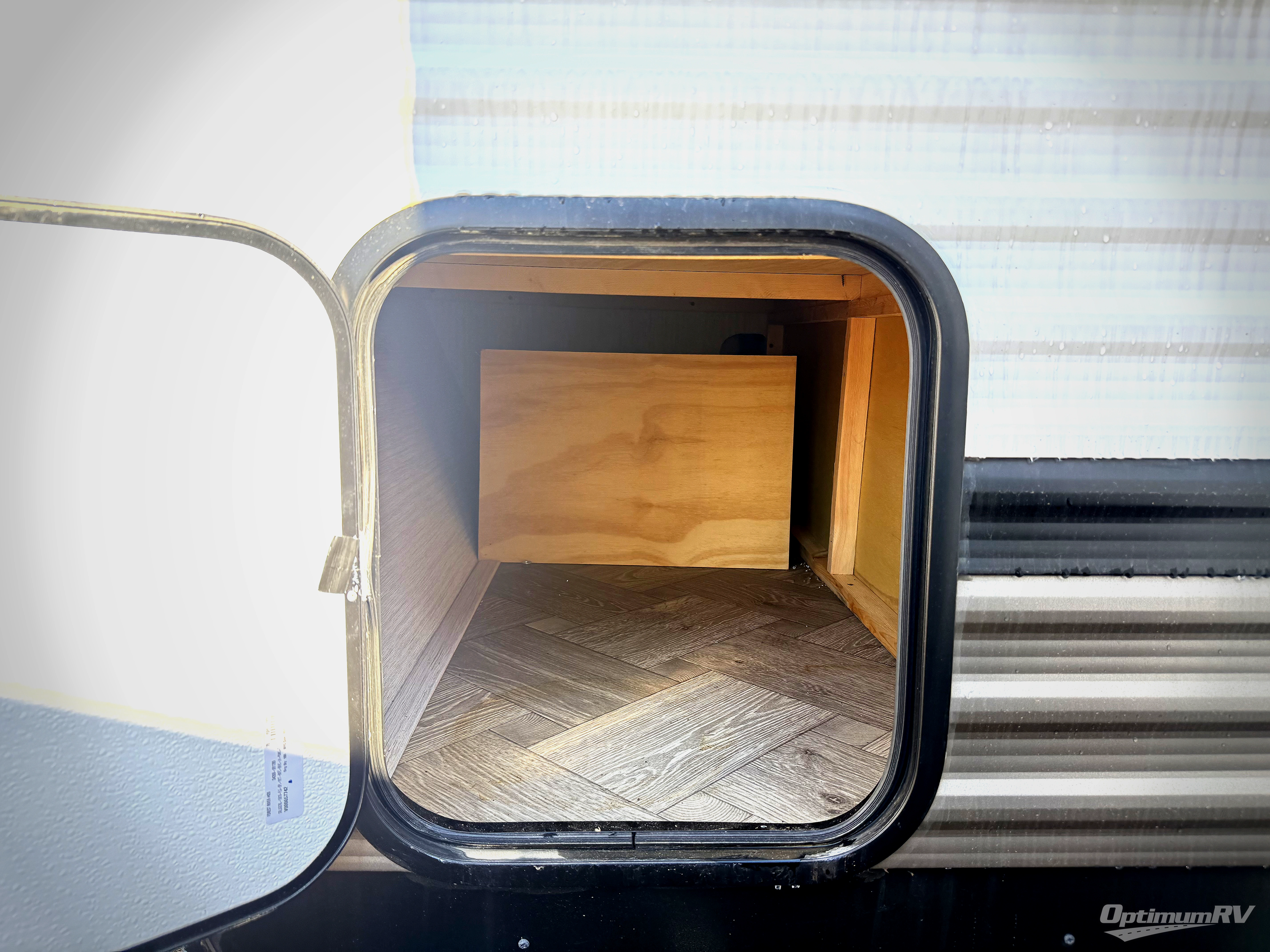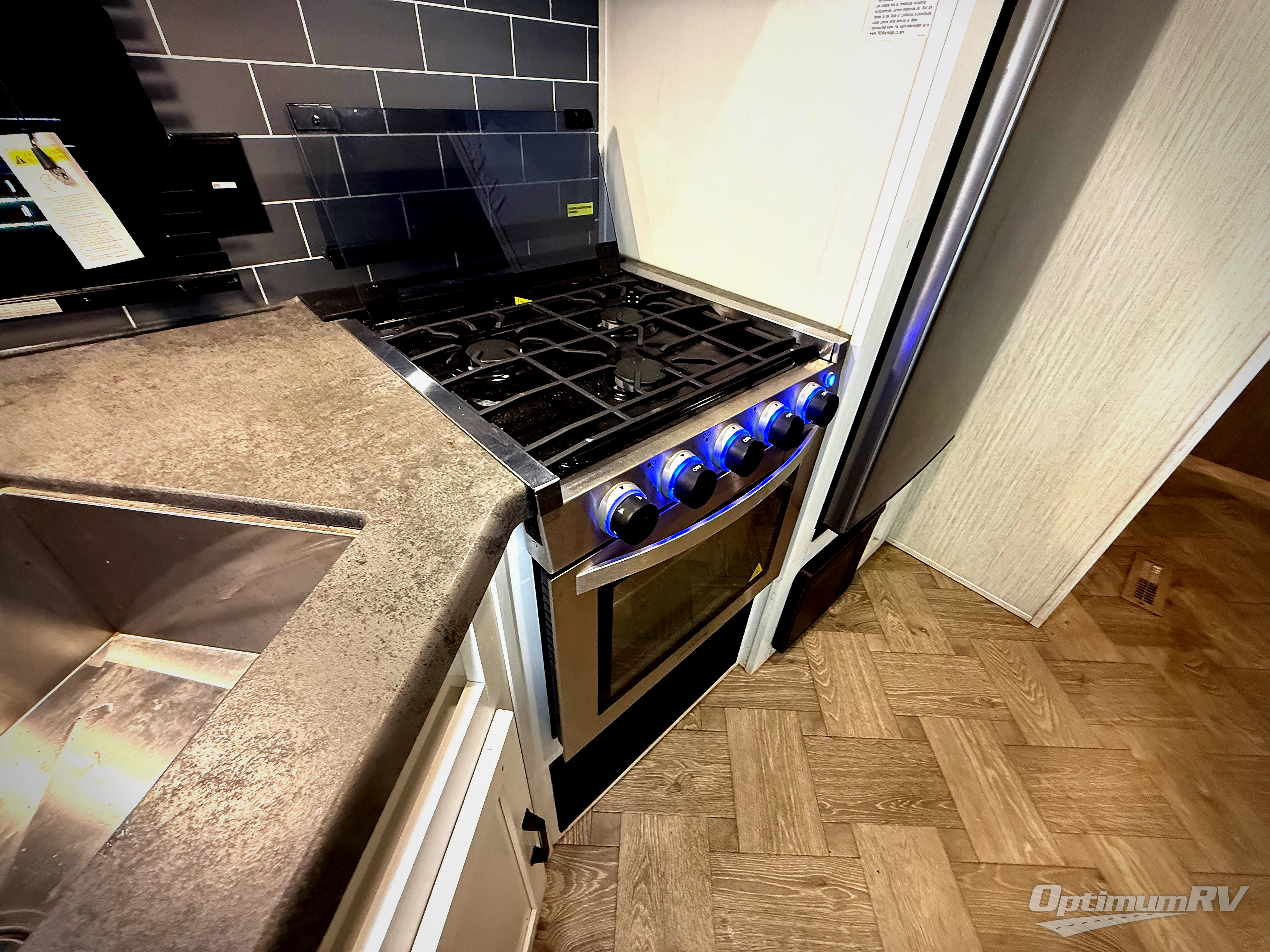The whole family will love camping in this travel trailer! The kids will have their own privacy with the rear private bunkhouse which has a 32" x 69" bunk above a jiffy sofa slide and a 38" x 76" bunk above an entertainment center to keep them occupied on those rainy days. And you will have your own privacy with the front private bedroom that has a queen bed slide across from a dresser and a front closet with another closet next to it that is prepped to add an optional washer and dryer. Everyone can stay clean in the full bathroom with the 34" x 34" radius shower and their bellies full with a three burner cooktop. There is also an optional exterior kitchen with different layouts to choose from so you can be sure to have the one that meets your needs the best!