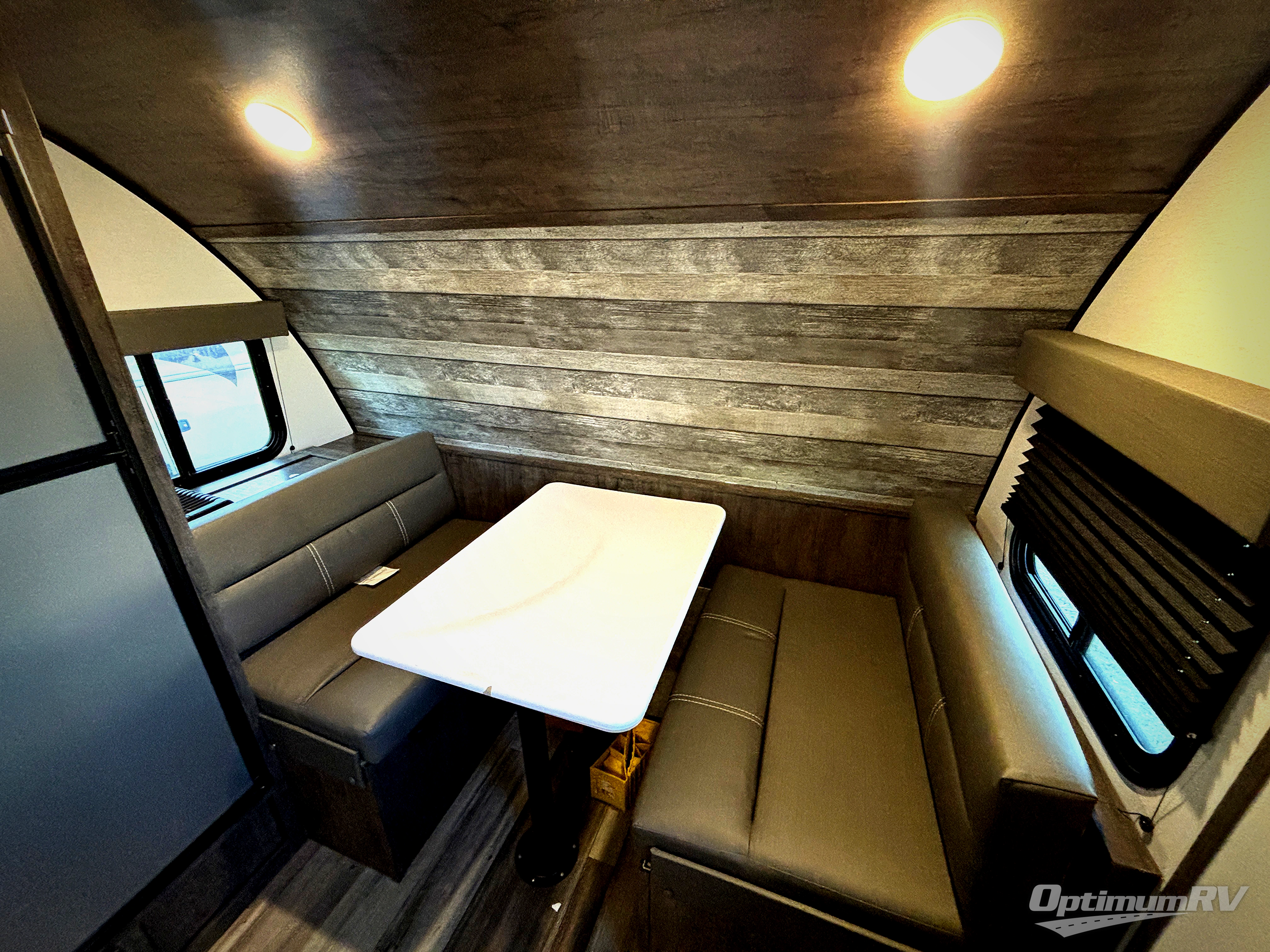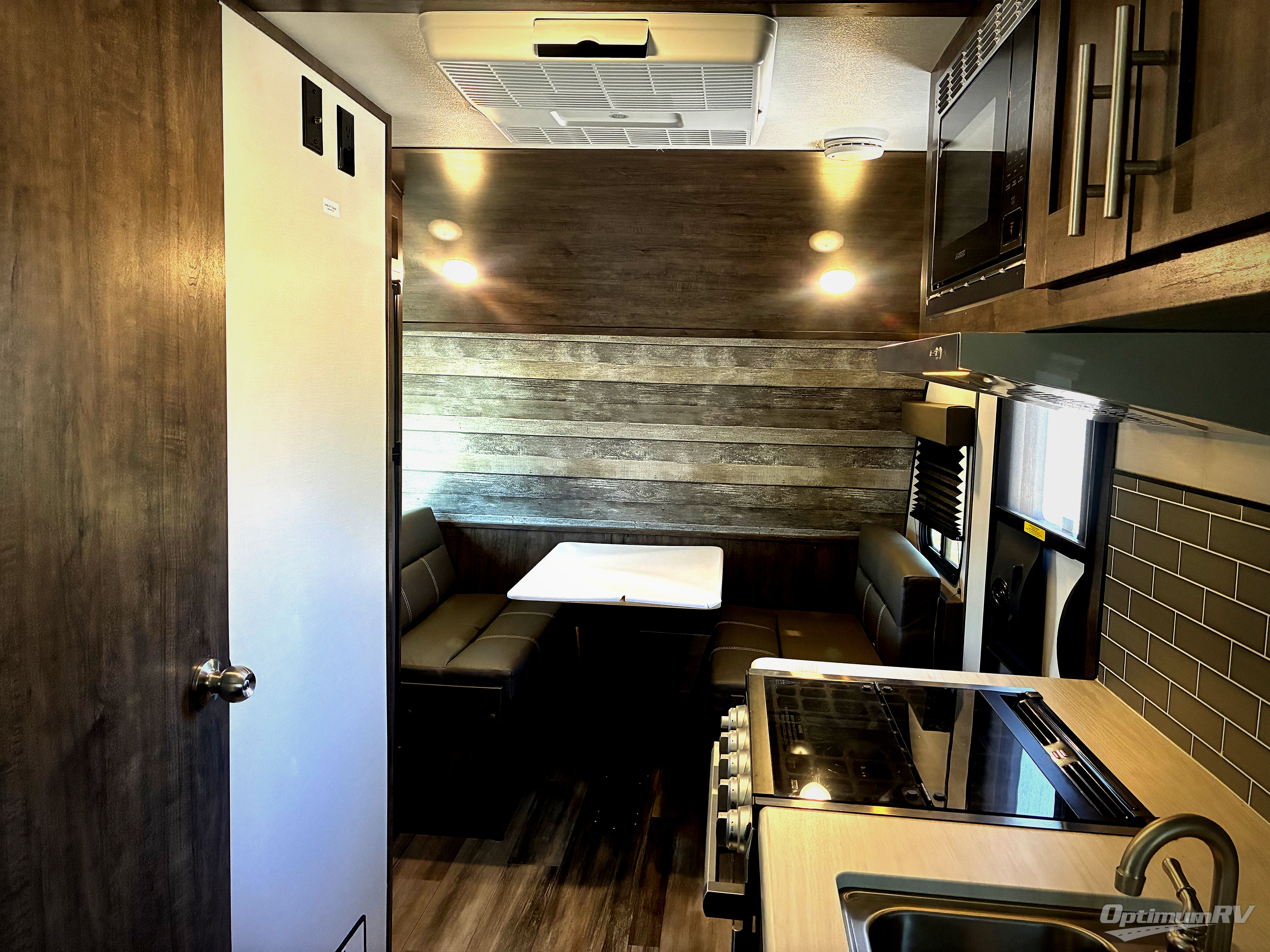 Comfort is found in this single axle travel trailer for three. You can prepare your own meals each day in the kitchen, and dine together at the booth dinette. If you'd rather have a sofa with a table, you can add that option in place of the dinette. There is a private toilet and shower for you to freshen up each day, and the rear 60" x 76" RV queen bed will make you feel right at home. No more sleeping on the floor!